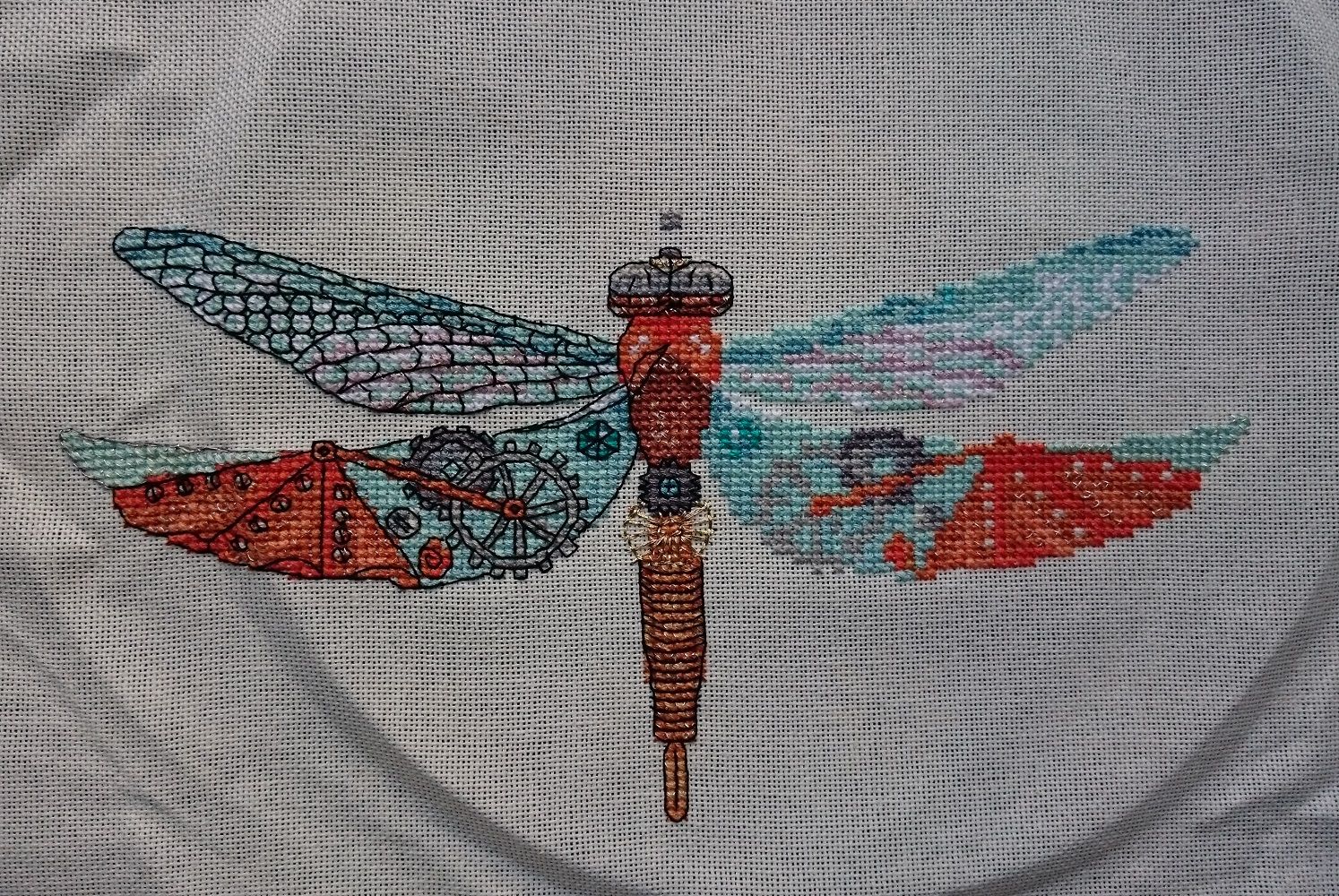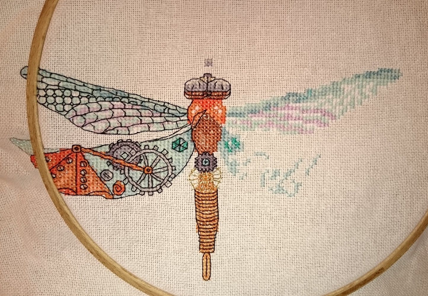 17 апреля 2017 Девочки, привет! Большое всем спасибо за комментарии, даже не ожидала, что их будет много, ибо стиль работы специфический, и не все готовы его принять. Запутаюсь в цитатах, поэтому простите, что не упоминаю вас лично, буду отвечать сплошным текстом. Сладостный мир гаечек и винтиков всегда завораживал меня, скорее всего, по причине того, что категорически не способна понять принцип их действия. Для меня, девочки-отличницы, в младших классах было страшной пыткой собирать на уроках труда конструкции из коробочки под приблизительным названием "Металлический конструктор №1" для младших классов. Помнится, в вузе могла великолепно изобразить любую деталь в любой проекции (очень меня любила преподаватель начерталки), но никогда не могла понять, для чего же эта деталь нужна. В дошкольном возрасте одной из первых любимых была яркая книжка Одоевского "Городок в табакерке". Я могла перечитывать ее бесконечно, бродить по лабиринтам сказочной табакерки, рассматривать пружинки, шестеренки и молоточки, и фантазировать о том, как я сама гуляю внутри такой необыкновенной удивительной конструкции. И вообще, любое "что-либо в разрезе" всегда привлекало пытливый взор и полет фантазии. Подобные изображения всегда звали и манили, и только недавно я узнала, что все они уже давно "систематизированы" под названием "стимпанк" (буквально пар+мусор). И несмотря на то, что первые "ласточки" такой стилизации появились еще в 19-м веке (в т.ч. в литературе), и связаны были с началом повсеместного использования паровых двигателей, но название было придумано совсем недавно, в 80-х годах прошлого века. Да и принцип несколько переосмыслился. В общем, когда на ФР в прошлом году я увидела эти дизайны, сразу поняла, что ЭТО будет моим... когда-нибудь... Любимая племянница ускорила ход событий. Сразу отвечу на вопросы - да, молодежи эти дизайны очень нравятся. Племянница увидела его у вышивающей подружки, сначала хотела попробовать сама, но не решилась (не ее это), поэтому тут с радостью "включилась" я. Дочери эти штуки тоже очень-очень нравятся. Что до того, чтобы вышить все четыре... Тут я, пожалуй, ПОКА пас. Хотя не исключаю продолжения. Теперь точно поняла, что вышивки в стиле блэкворк СОВСЕМ не моё. И если вышивать бэк "по крестикам" в этом дизайне было вполне комфортно, то рисунок нитью по чистой ткани доставил немало неприятных моментов. Эти скрупулезные подсчеты ниточек, которые практически неразличимы (слава Богу, что была Линда, а не что-то помельче), для меня оказался пыткой. Ну, пожалуй, за исключением надписи. Буковки логичны, и их я всегда люблю. По поводу исправления "странного" времени, вчера прошерстила интернет, познакомилась с замечательной, светлой художницей Таисией Ковалевой, работы которой, как выяснилось, активно перерабатывают в вышивальные схемы Панна, РТО и свободные дизайнеры. Однако моей стрекозы не нашла. Очень хотелось узнать, как она выглядит в оригинале. С часами возни было много, чуть сдвинула деления слева, слегка изменила минутную стрелку, сильно изменила часовую - она все равно довольно кривая, но я так устала с ней возиться, и уже боялась, что канва пойдет дырами, поэтому оставила как есть. Задумка была симпатичнее, но уж что вышло... Кстати, именно на часах видно, как деформирована канва. Мне уже сделали зеленую гаечку, если пролистать и посмотре