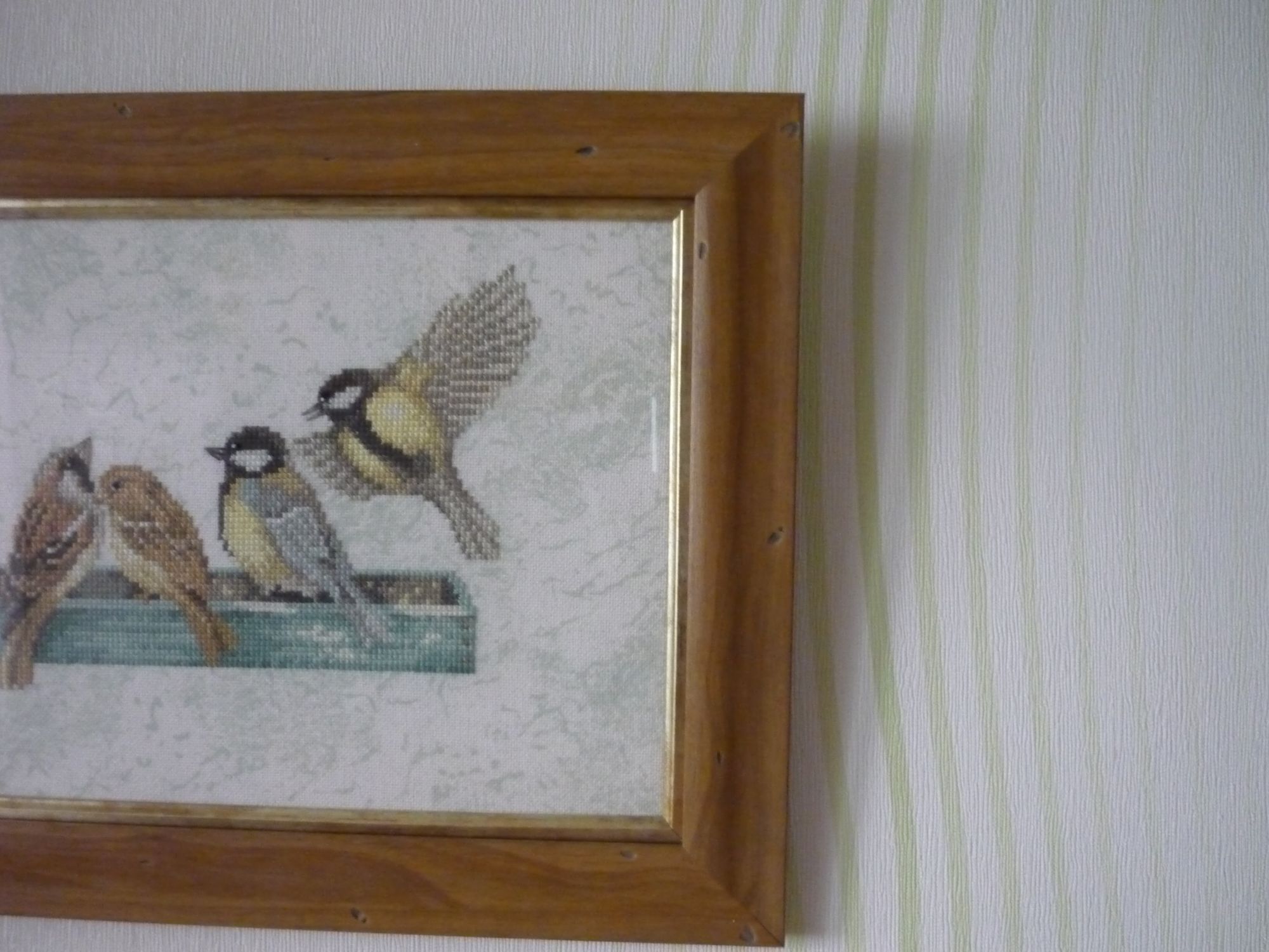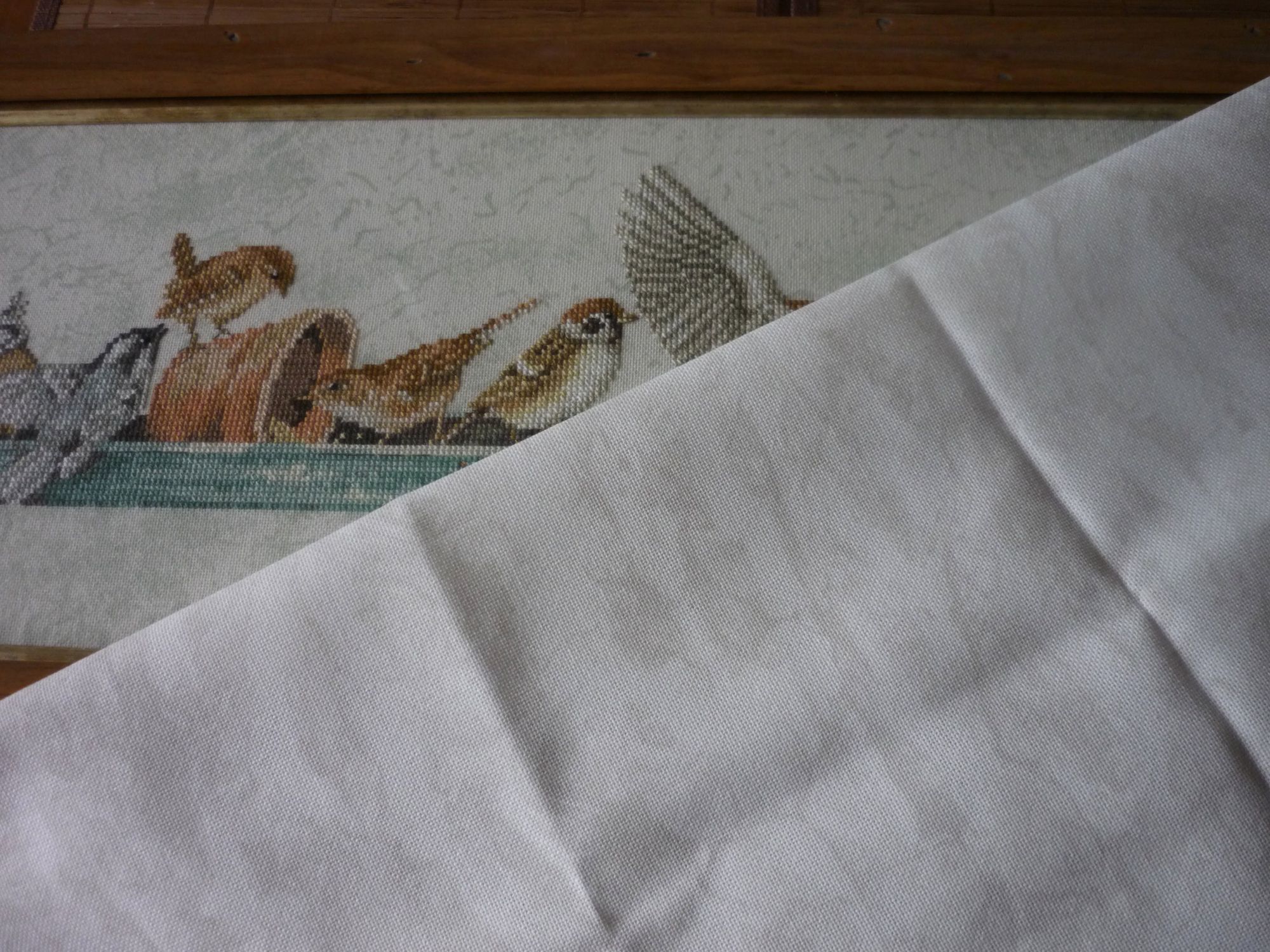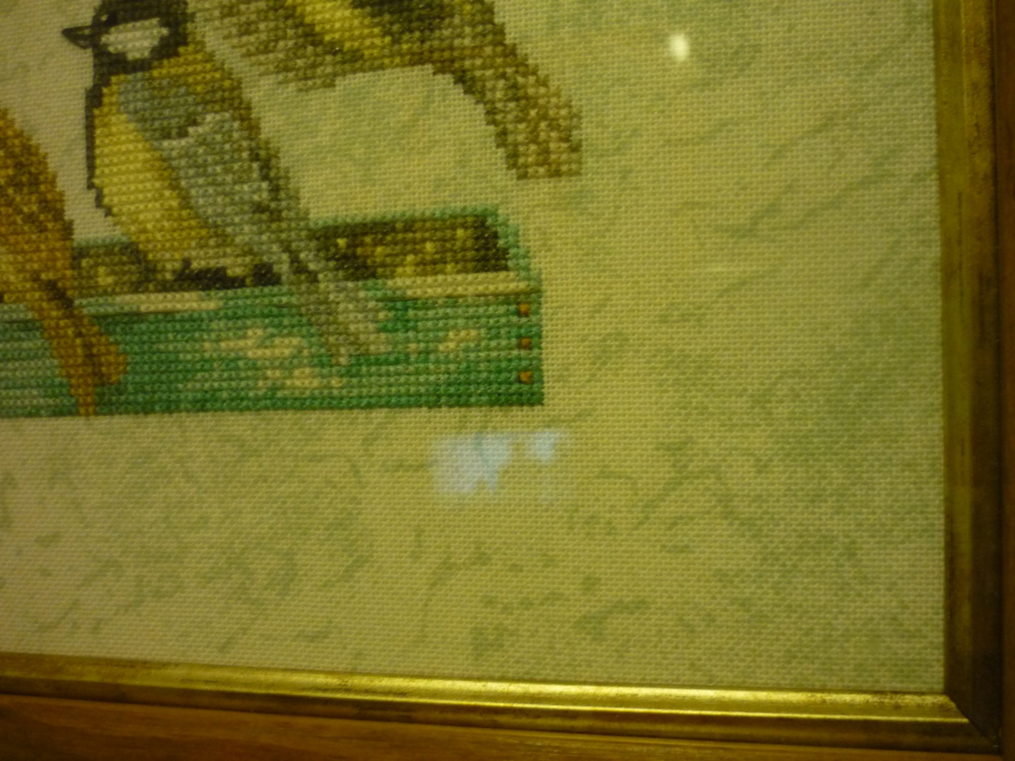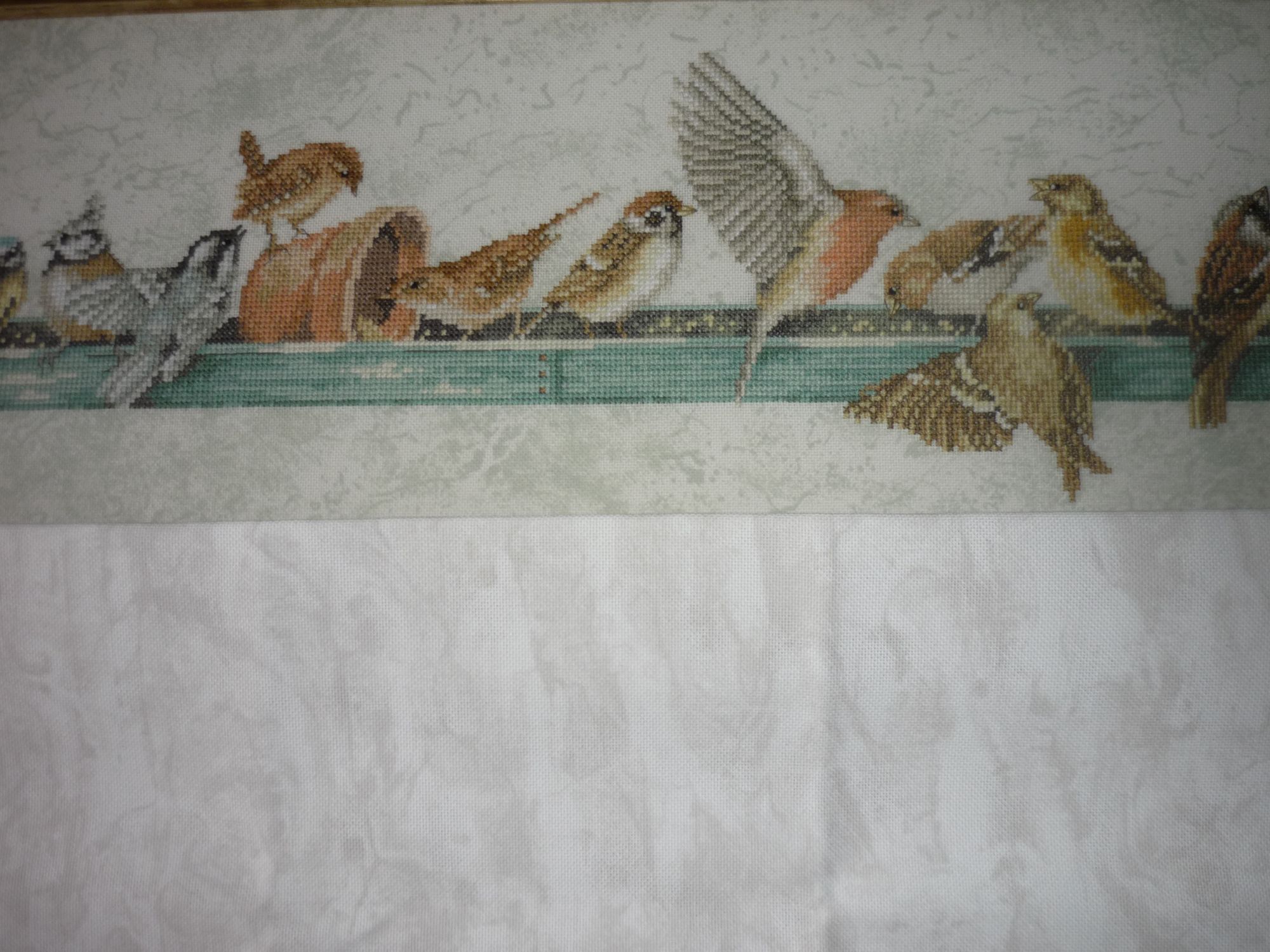 22 апреля 2017 11 час назад, olnikva сказал: Ну вот я сравнила оба цвета (так, как они сфотографированы на Стежке), и мне показалось, что 1079 наиболее предпочтителен, именно потому что не отвлекает на себя внимание. Буду тебе очень признательна за "дневные" фото. Спасибо! А вот и фотографии утром, получилось натурально... поближе и прикладывала лугану Причем,вечером цвет и тонировки, и самой кормушки уходит в легкую бирюзу, а вот утром все становится бледнее и посерее. Померяла на готовой работе, длина от самых выступающих точек вышивки (хвостик слева снизу и и крылышко справа сверху) - 66,2 см.Прошила несколько крестиков,размер совсем не пугает,нет ощущения,что расползается... а вот ещё фото вечером без вспышки Мне кажется, ,очень даже неплохо 3835\1079 подходит... чеба, makalicha1970, irisheckin и 10 других сказали спасибо Поделиться сообщением Ссылка на сообщение