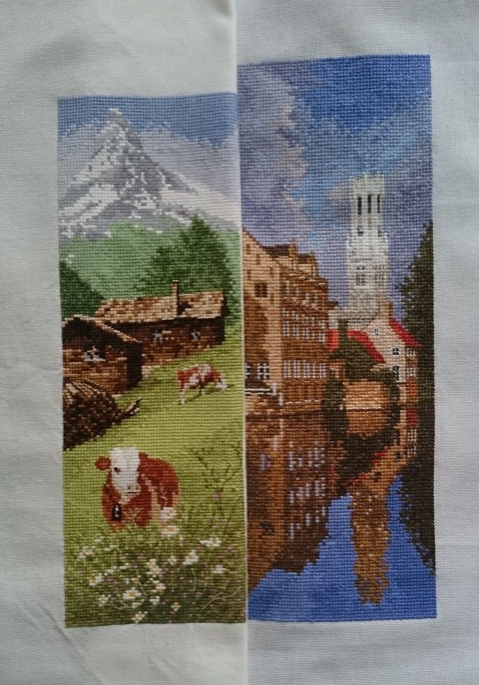 15 мая 2017 Девочки, большое спасибо всем, кто заметил мою панельку. Когда ее начинала, то не скажу, чтобы она мне ОЧЕНЬ нравилась. Просто меня привлекает сам город, да и в компании с другими она бы смотрелась неплохо. Ну и производитель сыграл свою роль. Но в жизни она гораздо красивее, чем на обложке, более тонко проработана, отражение как настоящее, да и цвета настолько чистые и жизнерадостные, что впечатление совсем иное. Хочу теперь показать вам одну метаморфозу. Обе панельки вышиты по наборам, вся комплектация - от производителя. Когда шила, то не обратила внимания, а когда сейчас складывала все "в рулончик", то выяснилось, что у панелек ткань абсолютно разная, и вот смотрите, какая штука. Справедливости ради, "корова" выстирана в стиральной машине, а Брюгге - в тазике. Но ткань, если положить рядом, зрительно видно, что различается, да и на ощупь совершенно разная. Catopuma, Каори, makalicha1970 и 17 других сказали спасибо Поделиться сообщением Ссылка на сообщение