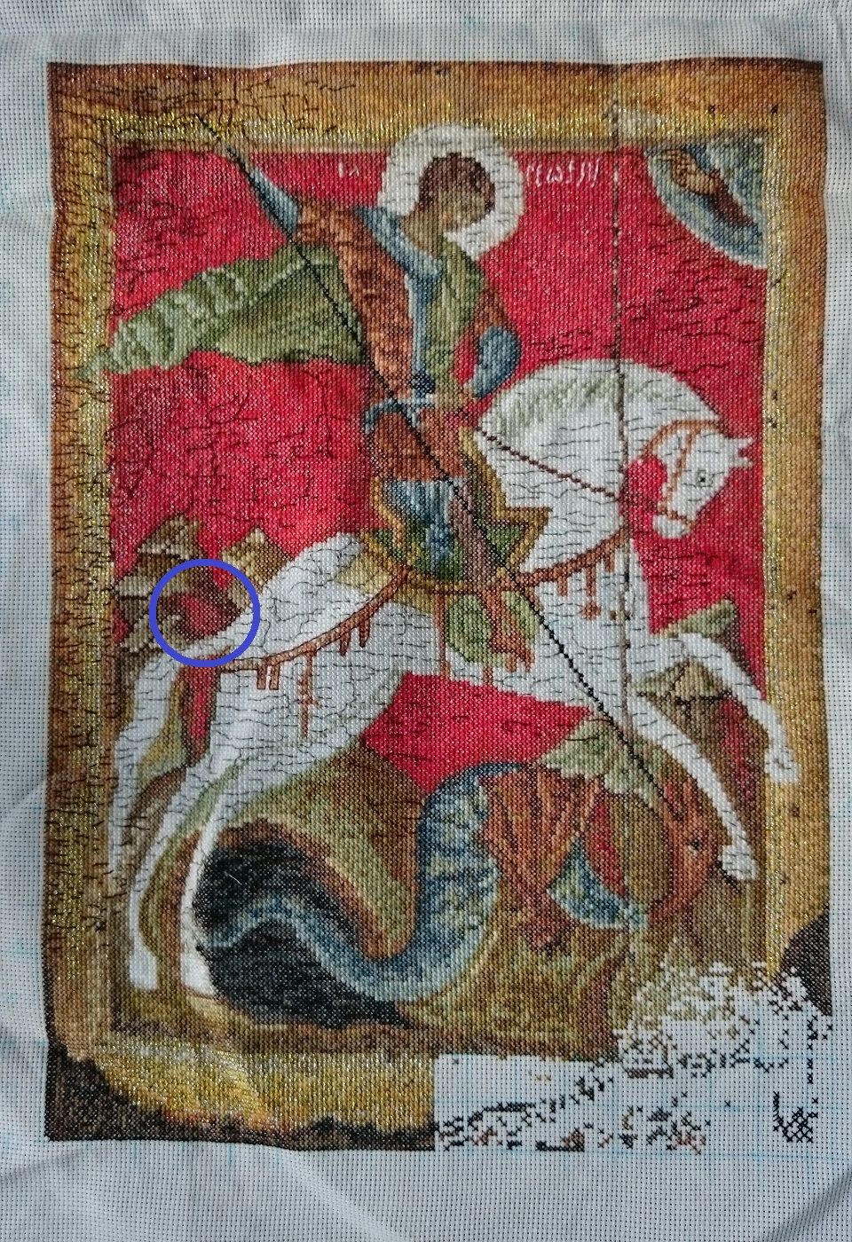 15 июня 2017 Ох, захвалили, дорогие мои! Я на энергии ваших добрых слов сегодня сделала еще очень приличный кусок, и дошила все, что шьется металликом. Распрощалась с ним с радостью. На прошлой неделе не шила почти, так что наверстываю семимильными темпами, сама себе удивляюсь. Дракона победила, осталось окончательно победить нижний правый угол. Нашла у себя приличную ошибку (из-за идиотских одинаковых значков, направленных в разные стороны), но исправлять уже не буду, просто боюсь порушить стройную систему, там настолько всё одно за другое цепляется, что придется слишком много пороть. Это фото вчерашнее, уже публиковала (здесь - не для гаечки), нужное место выделено синей окружностью. Там все должно быть коричнево-золотое, а у меня красные прожилки проглядывают. 3 часа назад, чеба сказал: У меня муж просит вышить ему Георгия, но он не крещёный и не собирается, поэтому не знаю зачем ему? Оль, а так ли уж это важно? Мне кажется, Бог в душе главнее, Раз он хочет, значит так нужно. musya, apanjul, ЛюдмилаЕр и 13 других сказали спасибо Поделиться сообщением Ссылка на сообщение