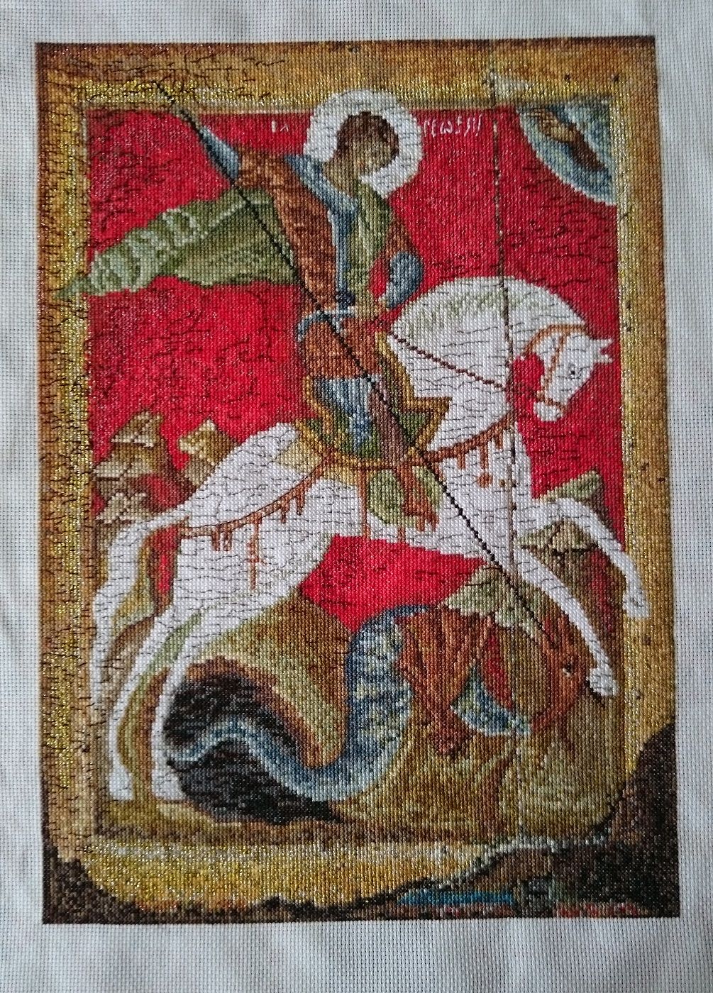 20 июня 2017 Охх... Я как-то не ожидала такого шквала апплодисментов. Обычно, в Галерее иконы (даже от Теи) не очень-то богаты комментариями. Спасибо большое, девочки: irisheckin, makalicha1970, adina, Veta, Bartok , pepita, tashu02, marvlase, Жекочка, Воздух, ЛюдмилаЕр, вишенка аллая, antipochka, IDEN, OlkaY, Гало4ка, musya, Catopuma, ОлюшКа, Прошу прощения, что не всех комментирую, просто чтобы не сильно перегружать сообщение. Но отвечаю ВСЕМ. Забыла сказать, что углы я, все-таки, зашила (кто-то, наверное, это заметил), ибо во всем должен быть порядок. 14 часа назад, irisheckin сказал: Какая значительная работа- и по размеру, и по значению... 2 часа назад, Catopuma сказал: монументальное полотнище! Девочки, а вот как раз и не монументальное. Это только кажется. На самом деле, размер иконы - чуть больше листа формата А4. Я прикладывала, там где-то по полсантиметра больше с каждой из сторон. 14 часа назад, Bartok сказал: А есть идеи на счёт оформления? Ох, Саша, по поводу оформления... Тут уже обсуждали девочки, что в данной работе важен каждый ряд. Эта "побитая временем" золотая полоса не может быть обрезана ни на сколько. Я уже подумала, а не пропустить ли рядок еще по краю какого-нибудь "нейтрального" цвета. Но отказалась от этой идеи. Оксана из Киева говорила о своей замечательной багетке, в которой оформлена ее Мадонна, и не забрано в раму ни рядочка. Моя надежда на нашу багетку в Щелково, но мастер в отпуске, так что теперь до июля. Идеи по оформлению есть, я давно представляю, как это должно быть. Только не знаю, смогут ли мне это реализовать. 13 часа назад, marvlase сказал: Ольга, разрешите мне выразить слова восхищения от просмотра завершённой работы. Я как вы понимаете бываю в этой теме и с интересом наблюдала за рождением этой иконы. Марина, спасибо! Да, я конечно же, Вас вижу. И, кстати, ответно приглашала быть гостем. 12 часа назад, ЛюдмилаЕр сказал: своими руками создавать реликвию для своей семьи, а я не сомневаюсь, что эта икона ею станет. Да похоже, что станет. Мама моя в бешеном восторге, хотя очень плохо видит, и разглядывала ее через лупу. Клятвенно заверила, что лично понесет святить, как только оформлю. Ну, а дочь с самого начала поддерживала эту работу. В общем, тут у меня полное понимание от самых близких людей. 12 часа назад, вишенка аллая сказал: Я вот сейчас когда смотрю на свои отшитые иконы и не верю, что это творение моих рук! Света, ты совершенно права. У меня такое же состояние. Смотрю и думаю, неужели смогла!??? 10 часов назад, OlkaY сказал: Хотя бы как 'великое преодоление себя' Оля, это правда. Сейчас понимаю, что берясь за эту работу не осознавала полностью, насколько она трудоемкая. Теперь, когда всё завершено, могу сказать, что для меня самым сложным были не многочисленные одиночные крестики, и не бешеное шитье металликом. А БЭК. Такого бессмысленного, хаотичного направления линий, дикого шитья "мимо крестиков" у меня не было, и, наверное, больше не будет. Хотя в результате, конечно же, всё на месте. Я сравнивала с оригиналом. Только не поняла, почему дизайнер сделала бэк только слева. В оригинальной иконе 15-го века "Чудо Георгия о змие" кракеллюры рассыпаны по всей поверхности. Старенькая же. 3 часа назад, musya сказал: И всегда с нетерпением жду твои замечательные посты. Лена, и все девочки, кто в разное время об этом писал. Я невероятно благодарна вам! Очень рада, что пишу не напрасно. Если это кому-то еще нужно, то здорово! Очень и очен