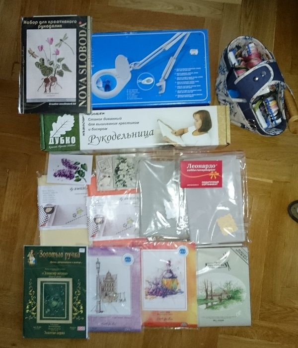 4 июля 2017 Я упала с самоката, тормозила головой... Поэтому, да еще и из-за дождя, сегодня опаздала на встречу... Теперь сижу дома с новыми подарками, и думаю, что хороша ложка и к обеду, и к ужину, и просто так. Прошло уже 10 дней, а у меня всё праздник. Спасибо всем, кто заметил мой новый процесс. Он продвигается медленнее, чем я думала. Если б шила на пяльцах, то было бы быстрее. К станку никак не приноровлюсь, но думаю, что все впереди. Диван придется покинуть, он не способен ни к раздвижению, ни к расширению. Перемещаюсь на другой плацдарм, уже и лампу для него сегодня купила. В 03.07.2017 at 12:21, svenlanos сказал: У меня кресло-кровать из Икеи без подлокотников довольно широкое,на нем идеально станок встает. Свет, а можешь дать ссылочку на кресло? Я как раз в ИКЕю на днях собиралась. В свое время там все кресла просмотрела, но "своего" так и не нашла. В 03.07.2017 at 11:23, makalicha1970 сказал: А в Жанлине схема была такая же, или с другими значками, ты помнишь? Ник, в Жанлине схема была, я бы сказала, средненькая. Не самая ужасная, но и не идеальная. "Жирность" значков была одинаковая, поэтому читалось тяжелее. В 03.07.2017 at 11:31, apanjul сказал: А как же лодки от Пермин? Юль, ничто не забыто. Маленький процесс и большой процесс. Два моих новых процесса. Ну, и наконец, пора хвастаться подарками на день рождения. Сразу скажу СПАСИБО большое всем девочкам, кто так неожиданно меня одарил! Я очень-очень растрогана этим! Вот они все вместе. Было и сладкое. Это был самый первый сюрприз, и зная, что до общей фотосессии "вкусненькое" не доживет, я его сфотографировала заранее. Вот они, мои заграничные конфетки-шоколадки. Это Оксана (pepita) прислала по секрету из Киева такой подарок. А заодно и равномерочку, яркую, как я давно уже хотела. Оксана об этом не знала, но угадала. Как угадала и то, что я очень люблю черный шоколад и конфеты "Осенний вальс", на которые очень похожи конфеты "Киев вечерний". Они были съедены (правильнее сказать - сожраны) мной и дочерью в первые же сутки. Но подарки форумчан на этом не закончились. Получила я и коллективный подарок от Леночки-Светочки-Наташечки (Lenara-Veta-Наталья2013) в виде двух очень желанных наборов РТО (выпуска которых я давно ждала), сертификата в Леонардо (он уже использован для ниток на новый проект) и известной многим знаменитой Леночкиной корзиночки. Да, это я ее счастливый обладатель. Новенькую корзинку Лена демонстрировала в своей теме, а я вам покажу, как она замечательно у меня наполнилась. В нее влезает целых два органайзера Пако, и очень много мелочевки по кармашкам. Уже вовсю пользуюсь! Но и это еще не все. Вы, наверное, помните, что мою "конфетку" с ранункулюсами выиграла Лариса-Disco. Когда мы с ней созванивались, чтобы передать сюрприз, Лариса сказала, что у нее тоже для меня есть подарок. И вот сегодня я стала еще и счастливым обладателем зеленого флакона от ЗР! С Ларисой мы познакомились только сегодня, я позорно и очень сильно опоздала и, к сожалению, у нас даже не было времени поговорить. Однако чуть-чуть пообщавшись с Ларисой мне теперь особенно интересно увидеть ее работы. Подозреваю, что там есть на что посмотреть! Лариса, пора выходить из тени! Ну, про станок и лампу-лупу я уже говорила. Два набора (Нова Слобода и Heritage) и два куска равномерки я себе купила сама на подаренные деньги. Хочу показать, в каком виде я получила станок. На фото он завернут в розовую бумажку, а к