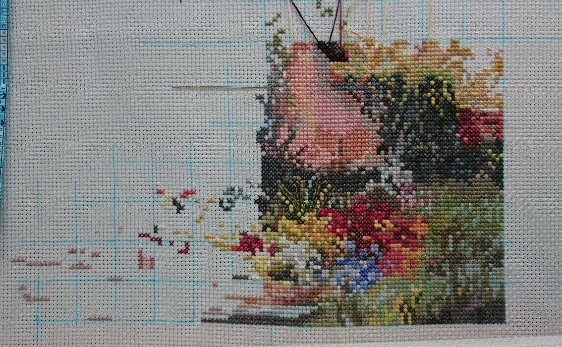 18 июля 2017 17 часов назад, olnikva сказал: Единственная мысль, как ты это делаешь - это пара микроскопических стежков типа "вперед иголка" на чистом (еще не зашитом) куске канвы. Я так изредка делаю, но тоже визуально "красоту" портит. Или как-то по другому? Наверное, так. Вот как выглядит, и тут мулине не в 2 нитки, а больше, 4 или 5, не помню. Красоту, как по мне, не портит. Маленькие точки вокруг вообще на красоту процесса не влияют. А в дальнейшем эта точечка закрывается крестиком, вообще ничего не видно. Sky026, Veta, olnikva и 6 других сказали спасибо Поделиться сообщением Ссылка на сообщение