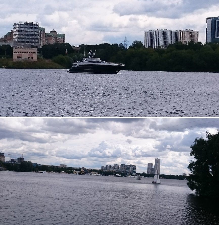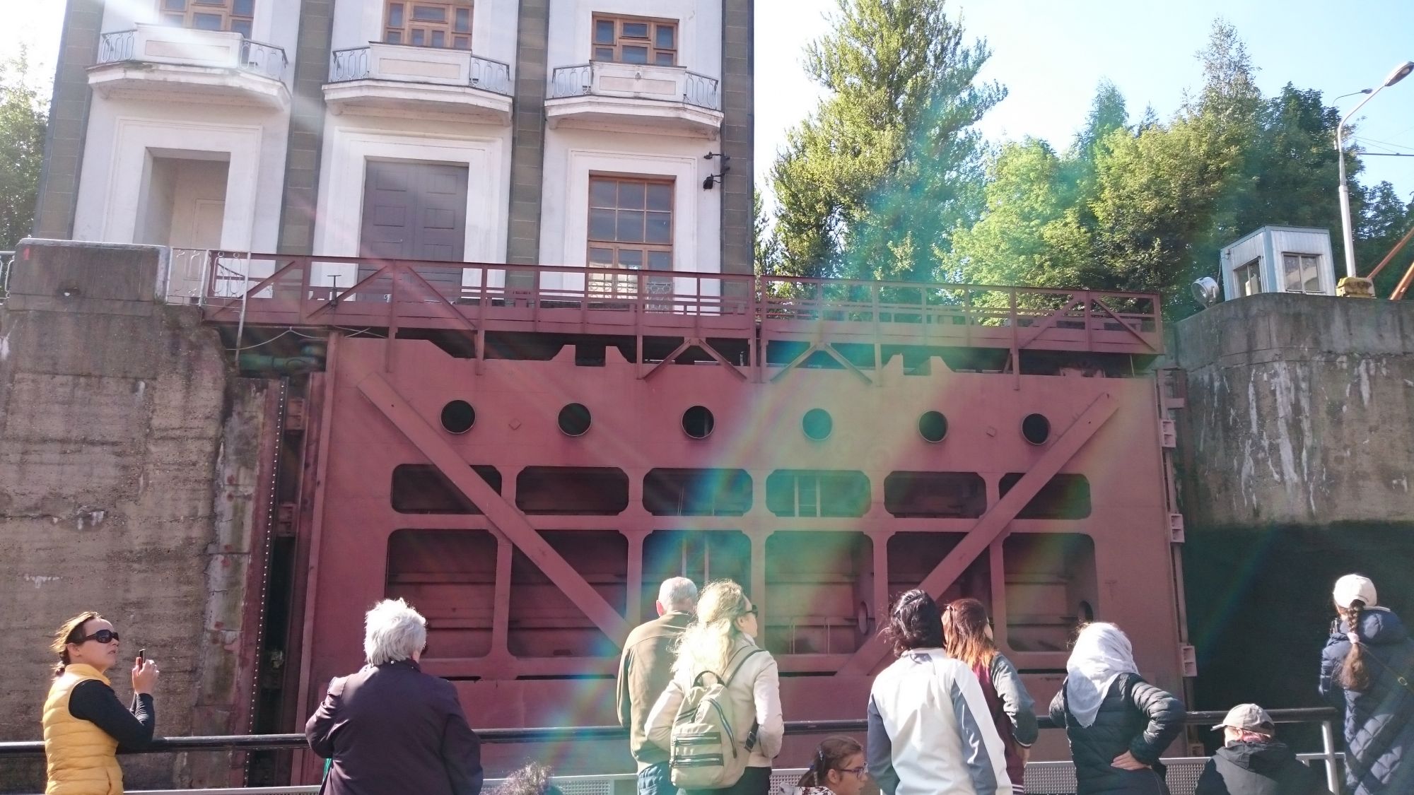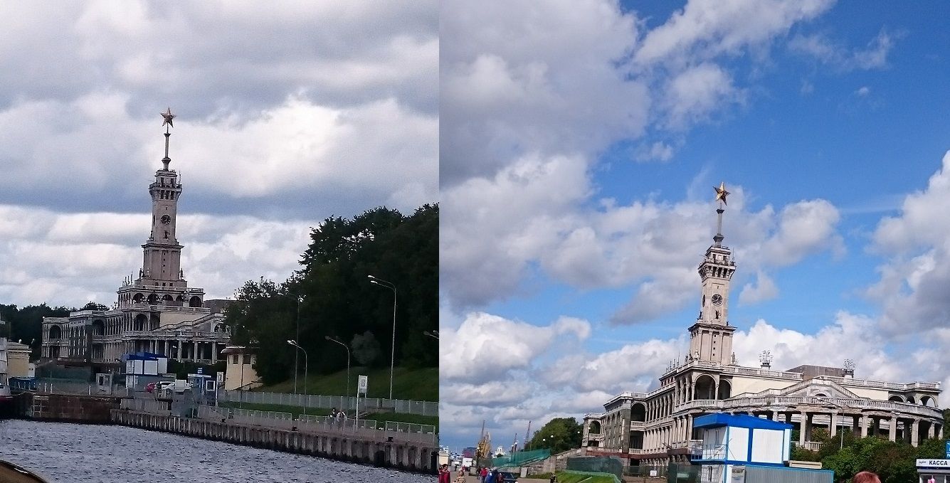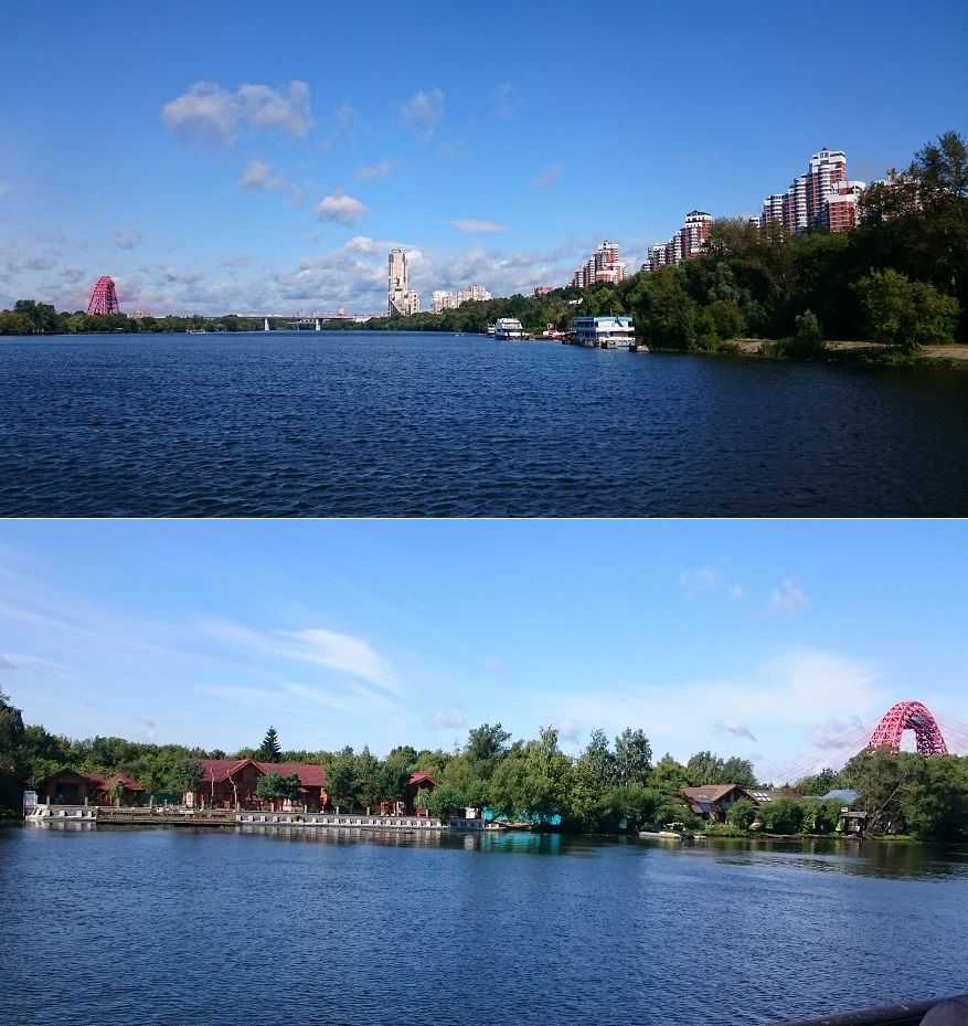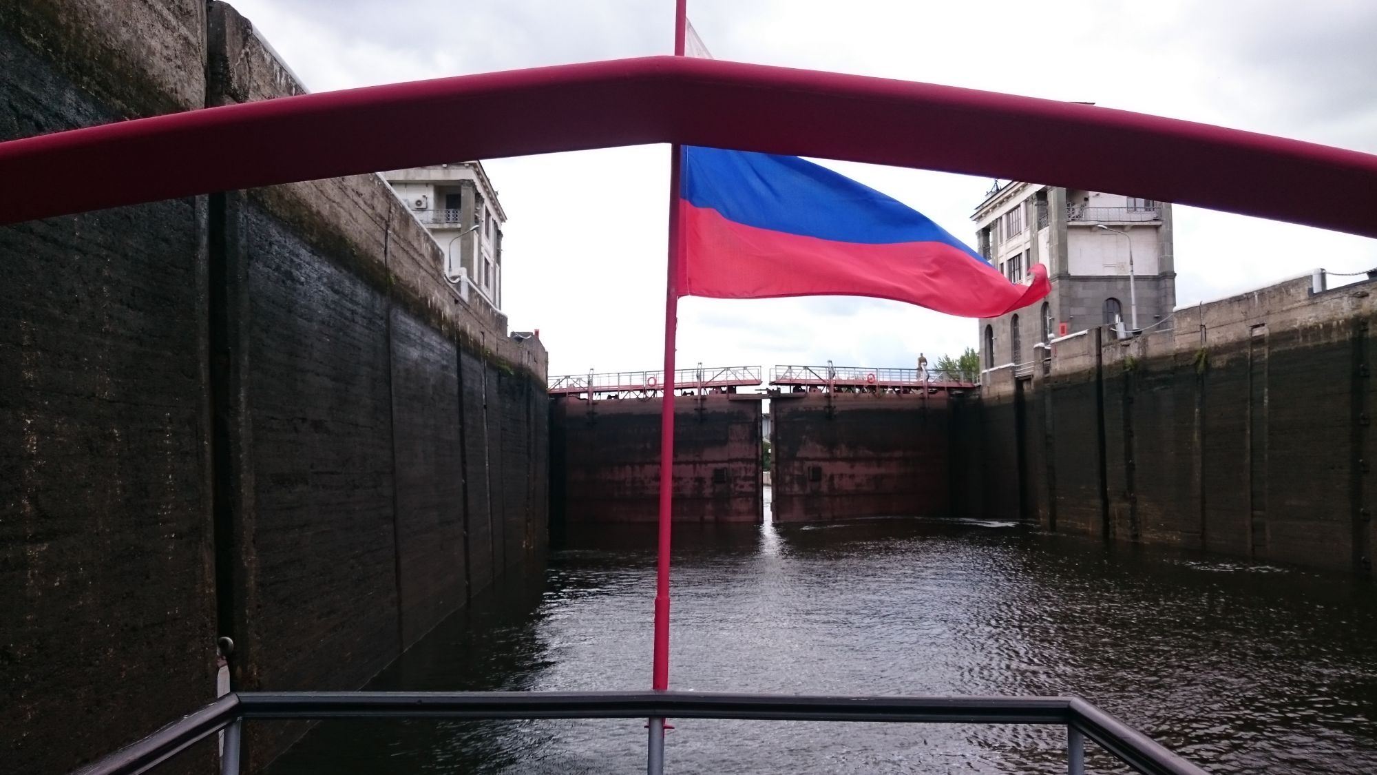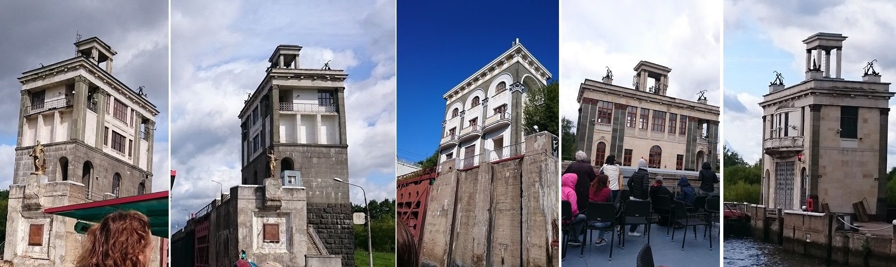 28 августа 2017 Всем привет! Хочу поделиться впечатлениями, а, возможно, кому-то помогу со свежими идеями. Если у вас уже есть подобный опыт, то читать, наверное, будет не очень интересно. Я, скорее, хотела бы "заразить" тех, кто такого еще не видел. А я – видела… Мне было неполных три года, и плыли мы на круизном лайнере по каналу имени Москвы. Мама взяла меня с собой во взрослую компанию, о чем, наверное, в пути сто раз пожалела. Ибо мой непреодолимый ужас и истерику при виде шлюзов помню до сих пор. Эта картинка всю жизнь стоит у меня перед глазами, и является первым детским воспоминанием. Причем воспоминанием ужасным. С тех пор прошла жизнь, и как-то вдруг мне стукнуло, что шлюзов я, наверное, больше не боюсь, а в сознательном возрасте их так и не увидела. Ну, а далее, сбор «команды» и в путь. Экскурсия "Московская шлюзованная система" длится 4 часа, бывает не так часто и только по хорошей погоде. Это путешествие на прогулочном катере по Московским шлюзам (Канал имени Москвы, шлюзы № 9, 8, 7). Идея возникла не вчера, но мы как-то долго раскачивались, потом начались дожди… Поэтому с нетерпением ждали, что же будет в ближайшее воскресенье. Утром проснувшись в 6 утра и увидев в окне солнышко, вопрос решился сам, и наша поездка состоялась. Маршрут таков: отправление от причала Международного выставочного центра – прибытие в Северный речной порт (Речной вокзал). Для справки: Канал имени Москвы построен в 1937 году, руками, есс-но, заключенных. Все постройки имеют уникальную архитектуру в стиле, называемом «Сталинский ампир». Как сказал гид, если хотите бежать из столицы, но для вас перекрыты все пути выхода из города (автодороги, ж/д, авиа), то не надейтесь уйти водным путем: вас не пропустят шлюзы. Москва-река в черте города заканчивается шлюзами как на севере, так и на юге. Первое сооружение, которое встретило нас после отправления – старая водонапорная башня. Сразу после нее показался вход в девятый шлюз. Вот мы вошли в него через открытые массивные красные ворота. Следом за нами следовал другой катер. Перед шлюзованием оба судна очень крепко привязали правым боком к специальным сооружениям, почти впритык к стене. Затем ворота постепенно закрылись, и шлюз начал наполняться водой. Обратите внимание на первой фотографии, стена снизу совершенно черная, эта чернота постепенно скрывается под водой. Вот весь процесс… Мы выплываем в довольно широкую по московским меркам акваторию Крылатского. И видим сооружение старой гидростанции, справа по борту новые микрорайоны, слева – скандально известный поселок речник, и странно-космический Живописный мост. Всего мы шлюзовались пять раз. Я покажу только самые интересные моменты. Вот восьмой шлюз: Очень высокий двойной подъем. Шлюз с сюрпризом. Очень интересно наблюдать, как эти огромные ворота уходят под воду. Тут наглядно видно, насколько высоко поднимается вода. Снято с одной точки. И вот, когда цепочка верхнего ограждения оказалась на уровне глаз, мы увидели «сюрприз», а именно, Волоколамский проспект, уходящий как бы «под воду». Т.е. канал проложен сверху, НАД проезжей частью. Это схематично седьмой шлюз. Он интересен тем, что над красными воротами, как только они достаточно опустились, мы увидели мостик для того, чтобы персонал шлюза мог переходить на другую сторону. А еще сверху над шлюзом есть большой пешеходный мо
