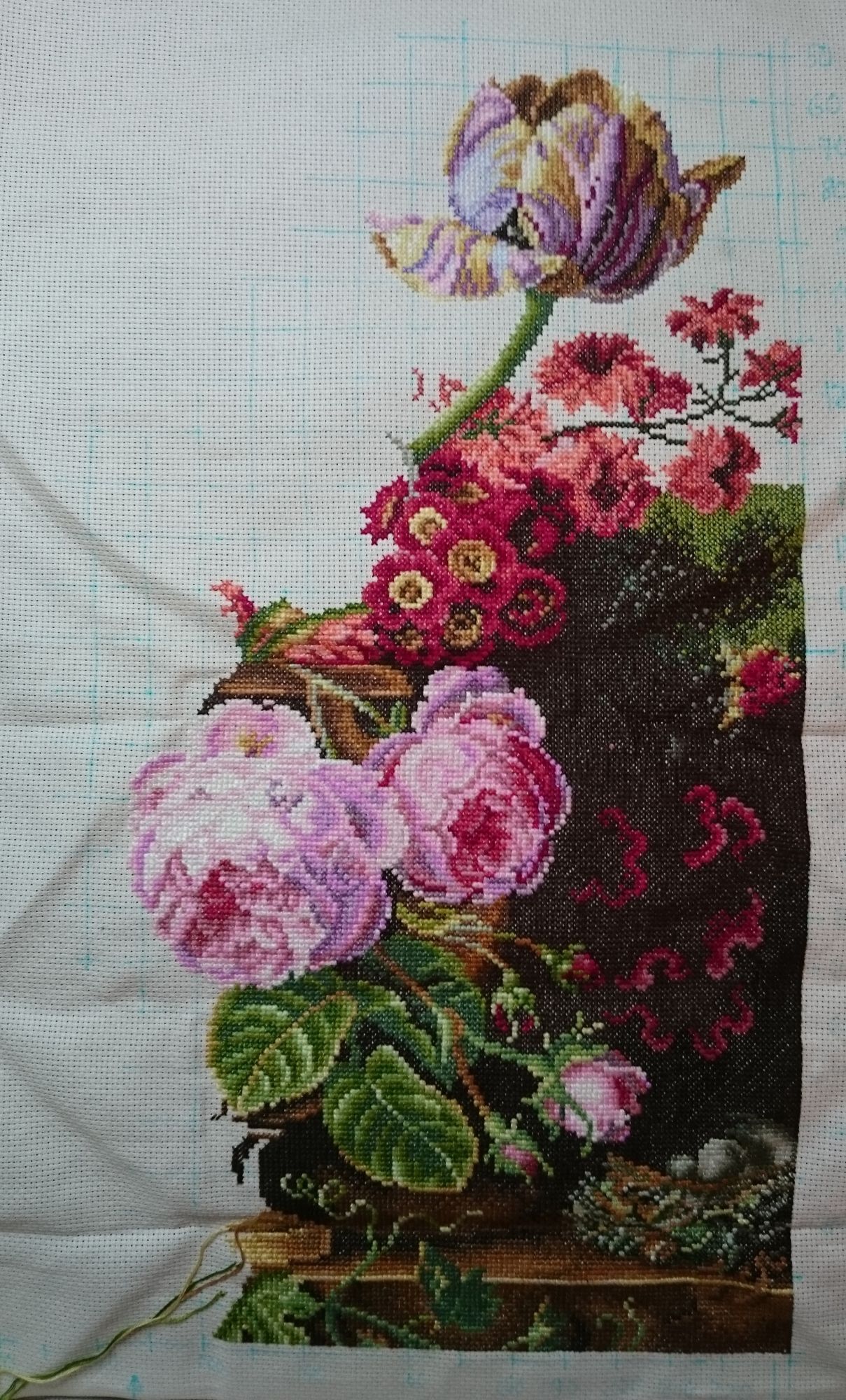 9 октября 2018 .... Продолжаю неспешно отчитываться. За истекший месяц мой букет не сильно-то и вырос. Но зато появился верхний угол, чему я очень рада. Вышиваю цветок, название которого забыла. Не могу найти, где именно мне говорили его название. Так что пока это цветок без названия, и вышиваться будет он еще долго. Было (не в гаечку): Стало (для гаечки): И по традиции, сравнение: Редко показываю свою зверушку, но сегодня она очень удачно "встала в круг". Ксен40, antipochka, PrimaN и 29 других сказали спасибо Поделиться сообщением Ссылка на сообщение