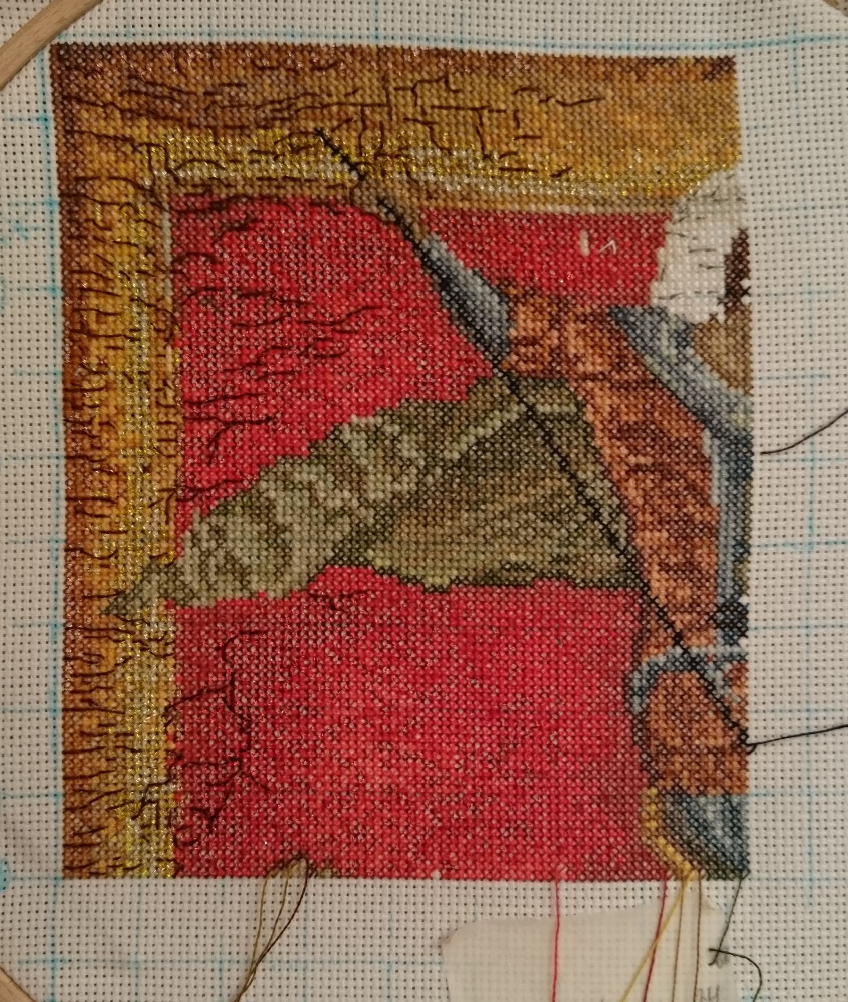 1 мая 2016 Всех православных поздравляю с праздником! Тут сделала себе подарок самым неожиданным образом, в том месте в котором меньше всего ожидала. Пошли вчера святить куличи в наш местный храм. А рядом с церковью - православная ярмарка, ну и в том числе всякие народные промыслы от мёда и варенья до корзинок и занавесок. И прикупила я там себе шикарный кусок серого льна 28 каунта размером 140*120 см, и общей (!!!) стоимостью 250 рублей. Когда озвучили цену, вот даже не знаю, как описать мои чувства... Как раз недавно созрела мысль вышить новогодние и пасхальные салфетки. Будет чем развлечься помимо картин в ближайший год. Сегодня уже месяц, как шью Св.Георгия. Неожиданно много было вышито за месяц, почти 1/4 работы. Приятно. nogres, ОльгаВл, ЛюдмилаЕр и 15 других сказали спасибо Поделиться сообщением Ссылка на сообщение