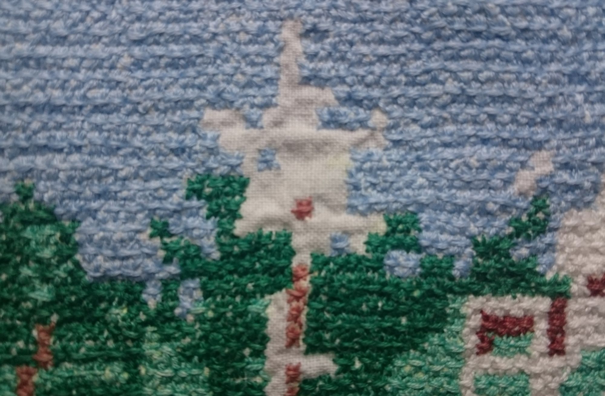21 мая 2016 Всем привет! И спасибо за комментарии! Погода дождливая, «необходимое» сделала, а больше ничего делать не хочется, даже Георгия шить лень; программа PM, присланная Юлей (apanjul) не открывается, остается позволить себе удовольствие посидеть в интернете (на неделе получается только мелкими перебежками). И вот еще одна семейная история, которую я почти не знаю, но очень хочется завершить. Жива у моей дочери прабабушка. Ей исполнился 101 год, и она еще относительно в здравом уме. В прошлом году, на 100-летие, даже получила какой-то подарок от правительства Москвы. Она – мама моей свекрови. Но живет бабушка с другими своими детьми, с которыми мы почти не общаемся, поэтому прабабушку моя дочь последний раз видела будучи младшей школьницей. Так вот, тогда прабабушка подарила ей незаконченную вышивку. Вот эту. Дочь использовала ее как покрывало для куклы, ну и вообще, «играла» с ней. Я тогда вкалывала на работе как проклятая и мало замечала, что творится дома. А когда хватилась, вышивка пропала (я уже думала, что ненароком выкинули ее вместе с игрушками). Много лет мечтала найти эту картинку и дошить. И вот, недавно пропажа нашлась. На ткани сохранилась надпись: МОСГОРШВЕЙПРОМ ФАБРИКА № 27, СОРТ 1, ЦЕНА 9 РУБЛЕЙ. Могу только предполагать, как это было вначале. Ткань – обычная сатиновая «простыня» с нанесенным принтом, который то ли выцвел от времени, то ли был многократно выстиран. Картина отшита БОЛГАРСКИМ КРЕСТОМ!!! Ее возраст - как минимум, до 1961 года (судя по цене), а как максимум – 30-40-е годы прошлого века (моя свекровь, родившаяся в 40-е, не помнит свою маму за вышиванием). Я склоняюсь к более «старому» возрасту, т.к. уж больно стерт принт, и очень выцвели нитки. Но нитки хорошие (не обычные катушечные), остался довольно длинный розовый хвостик на изнанке – это явное мулине. Судя по всему, вышивалась по накладной канве. По современным меркам приблизительно 14 каунт. Болгарский крест для меня – полная загадка. И кто теперь уже вспомнит, что там должно было быть на невышитых местах, и какого все это было цвета. Остатки принта - равномерно рыжие, без проблесков других оттенков. А прабабушка слишком стара, и слишком плохо видит. Даже если попытаться с ней связаться, вряд ли она вспомнит об этой вышивке. Несмотря на примитивный рисунок и полное отсутствие хоть какой-то красоты доделать работу очень хочется. Все ж таки семейная реликвия. Решила начать с того, что напишу этот текст. Может быть, придут какие-то мысли, или кто-нибудь подскажет что-то дельное. Ну и напоследок прабабушкина изнанка. По-моему, что-то из разряда невыполнимого, если учесть, что это загадочный болгарский крест и обычная тряпочка-«неравномерка». OlkaY, aleksaA, чеба и 23 других сказали спасибо Поделиться сообщением Ссылка на сообщение