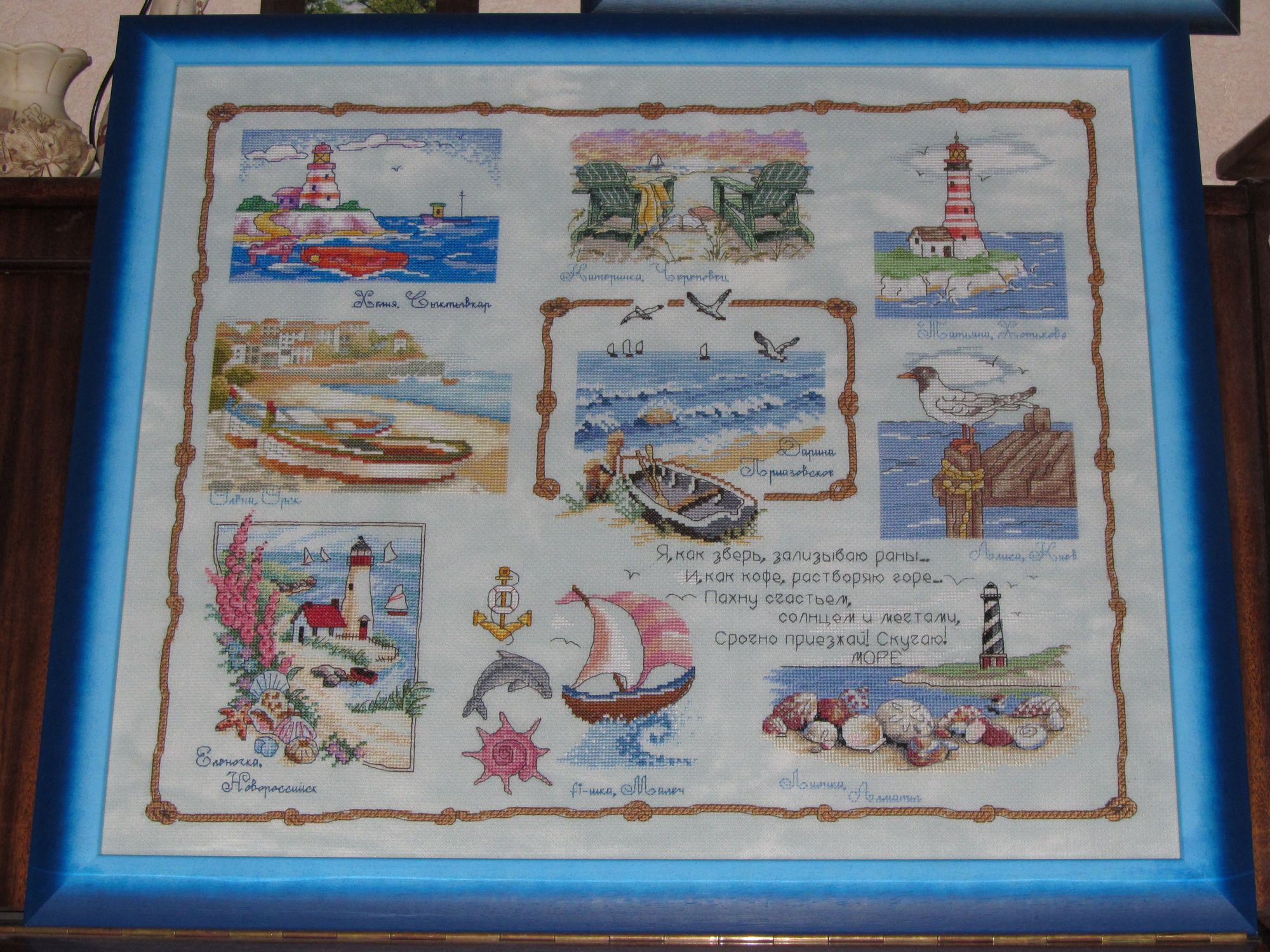 22 мая 2016 Gala83, makalicha1970, apanjul, чеба, pepita, musya, IDEN, дорогие мои, всем спасибо за комментарии! Они несколько обескуражили, т.к. предполагала получить мнения и советы, КАК БЫ ЭТО ДОВЕСТИ ДО УМА. А получила совет - Оля, не трожь святое, пусть будет сохранено как есть! И ваши слова заставили задуматься, правильно ли я поступаю. Всегда приятно слышать, когда в семьях бережно хранится память о старшем поколении. И рада за девочек, у кого тоже остались в доме такие раритеты, даже если и в единичном экземпляре. В общем, вышивка-то принадлежит ДРУГОЙ семье, семье моего мужа. Для дочки это память, так что буду сохранять для нее. Для меня это важно, т.к. к сожалению, моя бабушка рукоделием не увлекалась, и ничего такого не осталось в память о ней. В общем, большое спасибо вам, девочки, что не оставили без внимания мой вопрос. Мне ОЧЕНЬ важно все, что вы высказали. Удивительно вот что. Я МНОГО ЛЕТ (!!!) мечтала именно ДОШИТЬ эту работу. А теперь задумалась. Еще один вопрос - а что с ней делать потом. Лена-musya внесла интересное предложение про альбом, но вышивка довольно большая для альбома, и из нее получилась бы вполне полноценная подушка. Однако как подушку - жаль использовать, т.к. в моем доме все "прикладные" вещи носят именно прикладной характер (ну не люблю я дома-музеи), и "для красоты" на диване и в креслах ничего не лежит - все мои вышитые подушки используются "на все сто". В течение недели почти не шила. Вчера немного "помучила" Георгия. И вот результат - появился "указующий перст" - крохотный, но потратила на него часа четыре, наверное. А еще наконец-то определилась с картинкой для робина, на который очень небыстро находятся единомышленники, но я еще надеюсь. Давала себе слово, что до сентября не буду тратиться на свое увлечение, но не утерпела, заказала вот это замечательное произведение француженки Isabelle Vautier. Картинка замечательно делится на 8 почти равных частей размером приблизительно 40*60 и 50*50 крестиков. Бэка почти нет, цветов немного. Кое-кто, в общем, уже и подумывает присоединиться. Я не тороплюсь. Ау! Взываю к вам, единомышленники-земляки и жители всех регионов Земли!!! Смотрю на нее давно, всегда казалось, что там не Франция, а Англия. И вот вдруг прочла, что действительно Исабель создает свои морские вышивки по картинам французской художницы, живущей на побережье Англии. И как всегда, в нашем домашнем архиве путешествий нашлись аналоги. Жаль, что не подписывала фото, кажется это города Портсмут, Брайтон и Солсбери - Англия, южное побережье. pepita, makalicha1970, sunny981 и 14 других сказали спасибо Поделиться сообщением Ссылка на сообщение