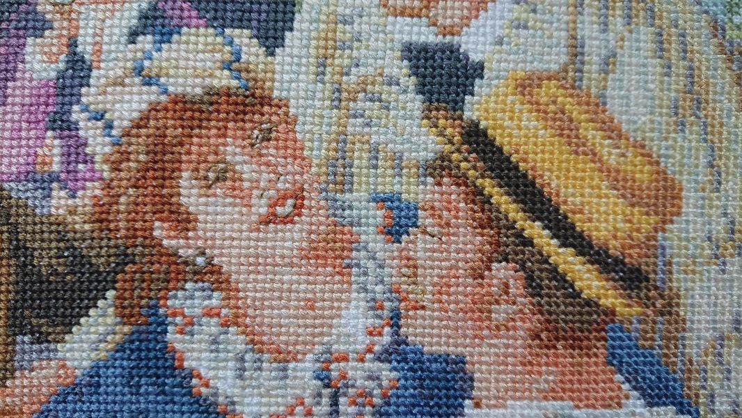 15 апреля 2020 Оля, поздравляю с завершением замечательной работы! Когда смотришь на отдельные фрагменты вышивки, то внимание акцентируется на крестиках, а лица кажутся какими-то не очень понятными пятнами, а когда открываешь фото всей работы целиком, то картина оживает. Прямо происходит какое -то чудо) Люди вдруг становятся живыми и хАрактерными, даже дуновение ветра ощущаю. Несколько раз просмотрела все фотографии, чтобы убедиться, что меня мои ощущения не обманывают. А в даме с собачкой углядела себя. Вот частенько в такой позе меня можно застать с моей Мусечкой. Тем более сейчас, когда я постоянно дома. olnikva, Lenara, makalicha1970 и 2 других сказали спасибо Поделиться сообщением Ссылка на сообщение