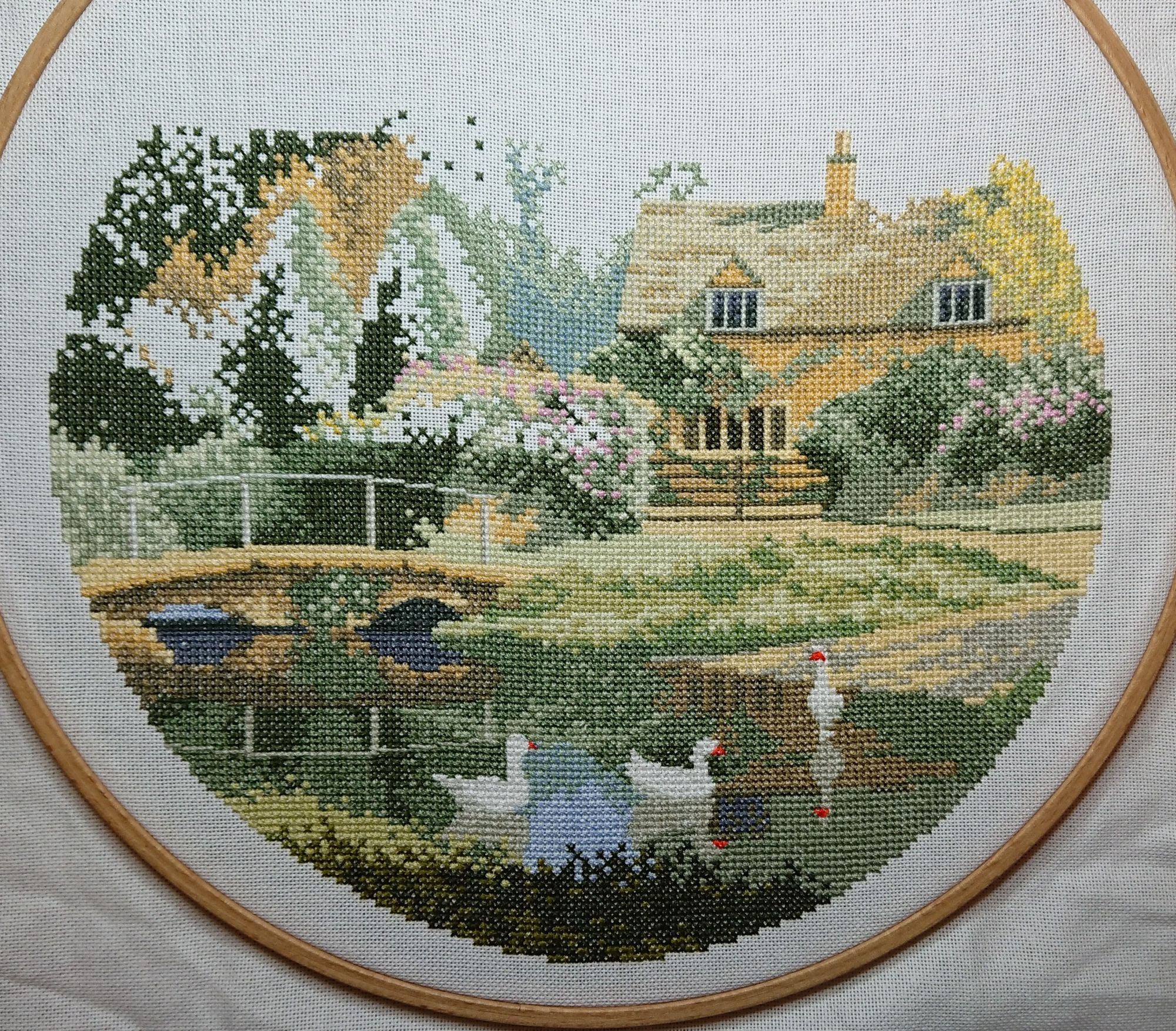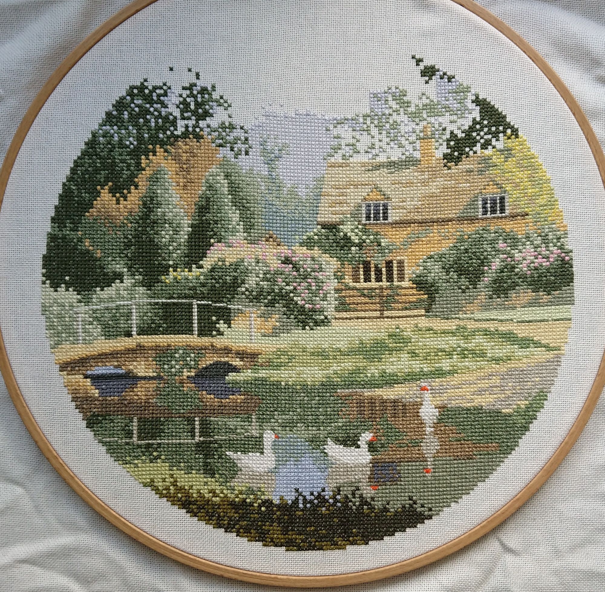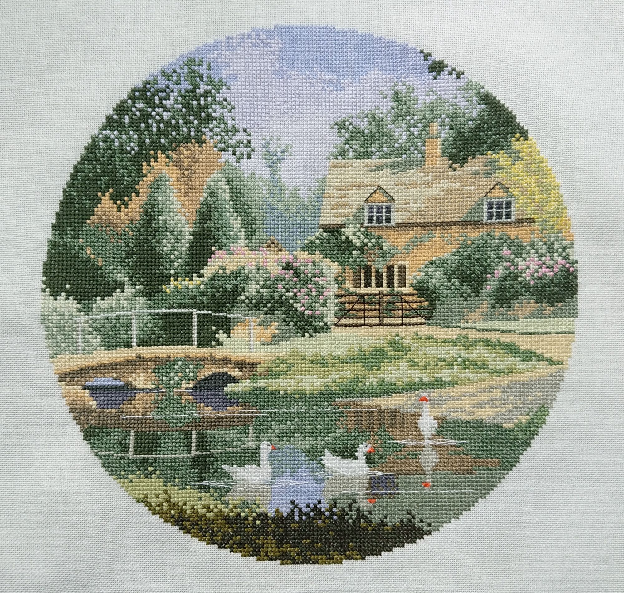 2 мая 2020 18 минут назад, lenning сказал(а): Очень красиво, Оль! И очень спокойно как-то от этого пейзажа, впрочем, от всех кругов Клейтона такое впечатление. Какая судьба у этой работы? Оформлять будешь? Спасибо, Лен! Жаль, не хотят эти гуси фотографироваться. На фото получается очень плоско, а в жизни он более объемный, более яркий. Я уже и под солнечным освещением из разных окон, и под лампой дневного света... по всякому. Но никак не получается. Самый приличный и похожий на правду - третий с конца снимок. 18 минут назад, lenning сказал(а): Какая судьба у этой работы? Оформлять будешь? Буду оформлять. Но не сейчас. Не очень люблю делиться планами, ибо часто они у меня меняются. Но сейчас, пожалуй, скажу, что задумала (может, это не даст мне передумать?). Кругов у меня вышито шесть, но два были подарены. А четыре оставшихся висят в спальне в виде такой вот экспозиции. Показывала уже когда-то, но покажу еще раз, ибо за те 5 лет, что они тут висят, они мне совсем не надоели. А в большой комнате у меня стена прямо просится под "экспозицию". Сейчас на ней висит одна, часто сменяемая работа, потому что ни одна из тех, что я вышила, мне не нравится, и не нравится в том числе на этой стене. Лучше всего там в новогодние праздники висит новогодняя картинка, но она, к сожалению, сезонная. И вот пришло мне в голову сделать эту стенку "Стеной Херитажа", но не такой как в спальне, а чуть более крупномасштабной. При том, что я не очень люблю "музейные стены" с большим кол-вом работ, но тут у меня в голове складывается весьма гармоничная на мой взгляд картина, как можно разместить достаточно вышивок, и при этом не потерять цельность массива. Подумаю еще над этим. Кругов и пейзажей от Клейтона у меня в закромах достаточно. Не уверена еще в том, что это здорово. Пока на стадии "больших раздумий". OlkaY, lenning, apanjul и 8 других сказали спасибо Поделиться сообщением Ссылка на сообщение