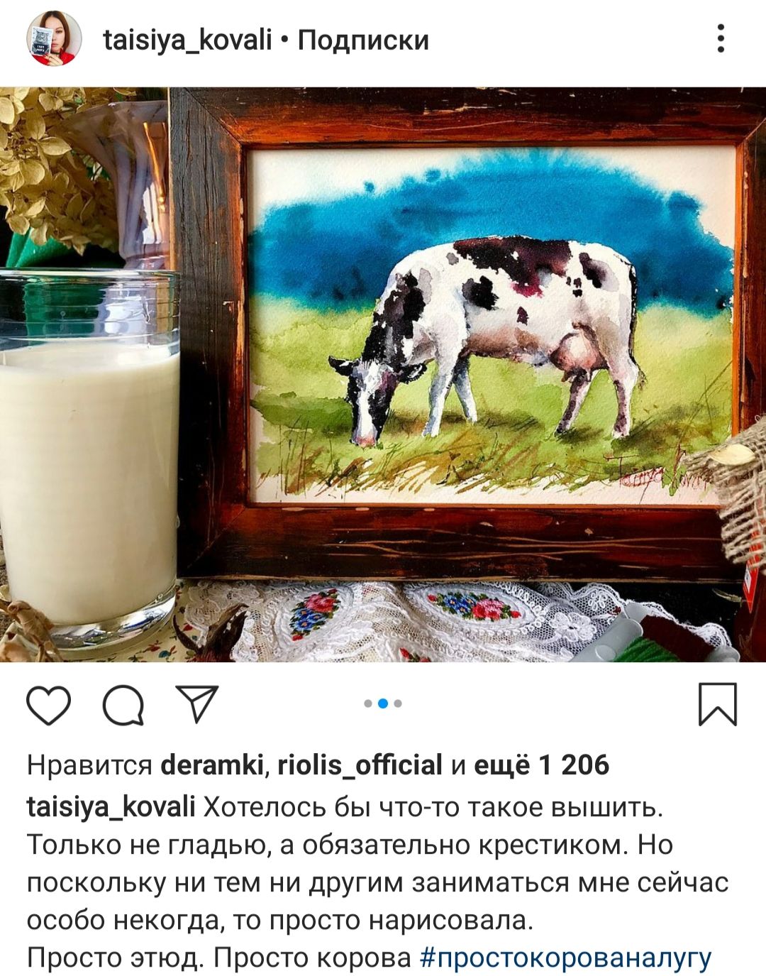 1 мая 2020 Оля, разговоры в твоей теме заставляют замечать то, что без этого пропустил бы))) Сегодня в ленте попался исходник коровы из твоей подборки. Таисия Ковалева, акварельный этюд. Но найденная тобой фотография явно послужила референсом для этюда. Тем более что обычно так и бывает, если прижало что-то нарисовать, а не знаешь как: базовый вопрос к поисковику и фотография в первой десятке irinka-mandarinka, olnikva и tashu02 сказали спасибо Поделиться сообщением Ссылка на сообщение