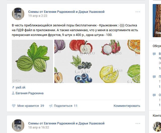 10 июля 2016 5 часов назад, disko сказал: Оль, это как у Жванецкого - про раков по 3 и 5. Заплатила бы 900 рублей, получила бы каждую схему на отдельном листе. Но ты решила взять одной схемой и в итоге получила "разблюдовку" в той нарезке, которая соответствует делению по листам, учитывая расстояние между фрагментами. Зато за 400 Лариса, привет! Рада тебя видеть. Да, это было моей первой мыслью после того, как получила данный "салатик". Однако, вернулась на страничку ВКонтакте, и еще раз посмотрела на текст "предложения". Вот такой. Так что тут речь исключительно о недобросовестности продавца. Должна признаться, что еще позавчера задала данный вопрос Евгении. Вчера, уже после того, как я написала первый пост здесь, она ответила, что фрукты продаются ТОЛЬКО в виде семплера (забыв, что продаются отдельно, "но по 100") . Однако, как видно на фото, в публичной оферте такой информации нет. 1 час назад, Гало4ка сказал: я так понимаю-отшива не будет? глянула по ссылке - очень интересные фрукты. Оля, да, фрукты замечательные. Заметила их на просторах инета еще до их появления в нашей базе на сайте. Долго "зрела"... А потом получилось так, что захотела купить один дизайн Анны Петуновой, а Анна, к сожалению, отказала мне, т.к. по условиям договора потеряла право на его продажу. Он теперь продается только в составе малоинтересного буклета Кателя Дизайнеров. Я подумала, что с фруктами может случиться то же самое, и срочно их приобрела. Отшив будет обязательно (я в конце концов большая девочка, умею соединять соединяемое), но не сейчас. Здесь на сайте фрукты отшиваются в 18-м робине, так что при желании можно найти. musya, apanjul, Океан и 4 других сказали спасибо Поделиться сообщением Ссылка на сообщение