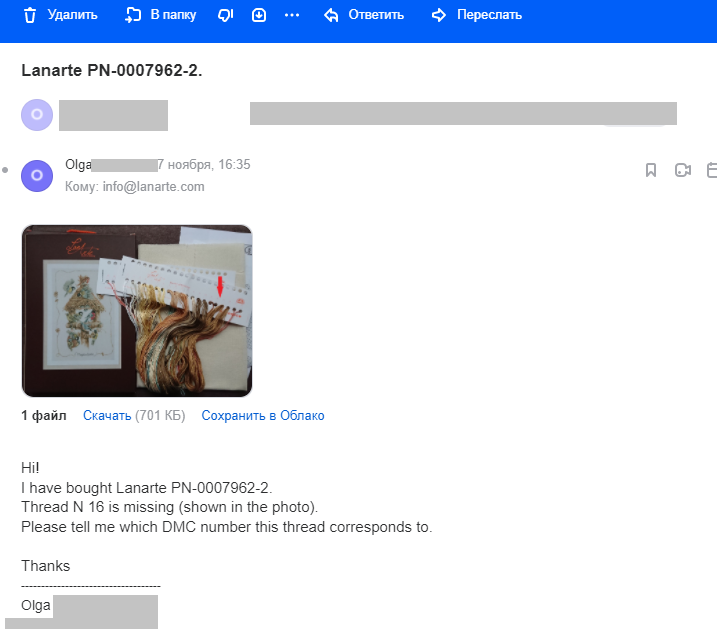 2 декабря 2021 43 минуты назад, irina4221 сказал(а): А если серьезно, то так и подмывает их спросить, а они хотя бы какие-нибудь 15-ти минутные курсы по работе с клиентами проходили? 11 часов назад, pepita сказал(а): Зашибись ( пардон за мой французский) . Понятно, что слать нитки через всю Европу такая себе затея, но хоть бы извинились, что ниток недовложили. 8 часов назад, Iharu сказал(а): Хочется "зашибиться" вместе с Оксаной 1 час назад, makalicha1970 сказал(а): Пф! Хоть бы слово "простите" написали! Согласна с девочками, так себе выглядит... Девочки, я вот подумала. А может, меня неверно поняли? Мне кажется, что я очень точно написала, что в наборе ОТСУТСТВУЮТ нитки такого номера. Но, быть может, это было понято так, что мне ниток НЕ ХВАТИЛО? Текст составляла сама, сверившись с "автопереводом", и сделав некоторые корректировки. Также отправила фотографию комплектации и стрелочкой показала пустую ячейку на органайзере. Понимаю, что не до конца грамотно, но, как мне казалось, суть можно было понять. Ира, @irina4221, ты у нас эксперт в области английского! Мой "английский" планомерно забывается. Глянь, а? makalicha1970, musya, irina4221 и 1 другой сказали спасибо Поделиться сообщением Ссылка на сообщение