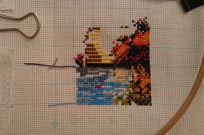 11 сентября 2016 Всем привет! Решила я сделать небольшой недельный отчётец. Видно, какая-то тяжелая выдалась неделя, нет привычного оживления в наших рядах. Кажется, осень наступила по всем фронтам. Борьба с урожаем достигла и меня, ленивую. Неделя ушла на обработку и "пристраивание" дачных слив и яблок. На большее меня не хватило (спасибо хоть, что грибы мои дорогие родственники обработали без меня). В промежутках между "банками" успела вышить свой кусочек робина с японской матрешкой (теперь буду ждать внуков, примета такая). Ну, и начала вторую картинку от Алисы Окнеса "Лодочка". Впечатления пока "никакие". Просто шью, и жду, что же в результате получится. Цветовая гамма в графическом изображении не очень совпадает с реальными цветами. Для меня было большим удивлением, когда подобралась очень яркая и жизнерадостная палитра. Намного ярче, чем ожидалось. Вышит нижний правый угол. Всего 45 цветов ДМС + 4 бленда. Итого, 49 оттенков. Общую оценку всего дам по завершении работы, а пока вот показываю непонятные "детективные" кусочки. IDEN, оленек, BlueeYeS и 28 других сказали спасибо Поделиться сообщением Ссылка на сообщение