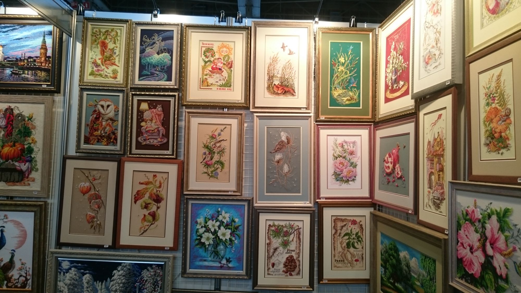 30 сентября 2016 Мой отчет будет позитивным, никакой критики. Походом своим довольна пожалуй больше, чем ожидала. Меня постигло только одно (но огромное) разочарование, о нем чуть ниже. К сожалению, как выяснилось, увидела я не всё. Многие фотки, оставленные форумчанками на форуме, оказались для меня загадкой, а также я, оказывается, не увидела стенд Золотого Руна. Несколько организационных моментов. 1. Я прилично сэкономила, распечатав 20% купон РТО (наборы и маркеры). Кто не знает, на сайте Геллы можно еще распечатать купон Марьи Искусницы (10%). 2. Народищу сегодня было не протолкнуться. Я впервые была в пятницу. Даже не представляю, что же будет завтра. 3. Не забудьте про второй вход (со стороны НЕвышивального павильона). Там людей нет вообще. 4. Электронная регистрация дает возможность обойти очередь. Правда я вчера как-то "криво" покупала на сайте билет, очень много бесполезной информации. Раньше было проще. О разочарованиях Это ЧАШКИ от РТО. Я ими бредила последние полгода, после того, как увидела фотографии с выставки в Кёльне. Главным образом из-за них мечтала посетить стенд РТО, чтобы увидеть их живьем. Увидела. И больше не хочу. Потому что вышиваются там ТОЛЬКО ЧАШКИ. Весь фон - это дизайнерская канва. Разочаровал также вот этот городской пейзаж, который тоже был мною ранее замечен, и был возможным "претендентом" на покупку. Вблизи он оказался не таким нежным и не таким романтичным. К тому же "островки" незашитой канвы (в небе) показались мне неоправданными. Хотела также увидеть отшивы городских миниатюр и серию фонарей из каталога. Этих не было ни в отшивах, ни в продаже. О покупках Приобретения мои оказались неожиданными (про котейку уже говорила), но я довольна. Из ожидаемого - только маркеры и такса от Рукодельных забав (спасибо Леночке - lenara) за наводку и за отшив!. В общем, вот общая картина вышивального и НЕвышивального: Ну, и Нюша сразу "обновила" все покупки, так что отшивы будут удачными. Давно хотела приобрести еще один "сезонный" новогодний набор. И РТО мне помогло в этом. Тоже вчера не собиралась, но сегодня увидела живьем, и поняла: ВОТ ОНИ!!! Из двух наборов серии выбрала этот: (прошу прощения, оказывается, не сфотографировала другой набор, но это сделало много других людей в соотв.теме): О приобретенном петухе скажу отдельно. На этом вышивальные покупки закончились. О петухах. Мне очень нравилась эта серия. Вся полностью. И думала я об акварельном петухе, который такой весь... особенный. То ли петух, то ли просто брызги. Очень хорош. Это независимо от грядущего года петуха. Уже несколько лет мечтаю об этой птице. Не знаю, почему. Но пока не собиралась покупать. Однако разочарование с чашками и пейзажами заставило меня задуматься о другой покупке. Сестра напомнила, что у нашей тетушки вновь грядет день рождения, и я уже который год дарю ей вышитую картины к ее огромной радости. Во-вторых, мы вспомнили, что по гороскопу тетушка - петух. Так что вопрос с тематикой был решен. Но что делать? Петухов нам РТО выпустило немерено. Вот они: Но наш "Консилиум на троих" в качестве покупки рассматривал только трёх. Вот этих: Назовем их для удобства Петух №1, №2, №3. Что мы имели. 1. Моя сестра Таня, человек реалистичный, не признающий условности - считала, что брать надо петуха №1. 2. Лена- aleksaA (кто не знает, ранее мы с Леночкой 5 лет проработали бок о бок в одной конторе) 