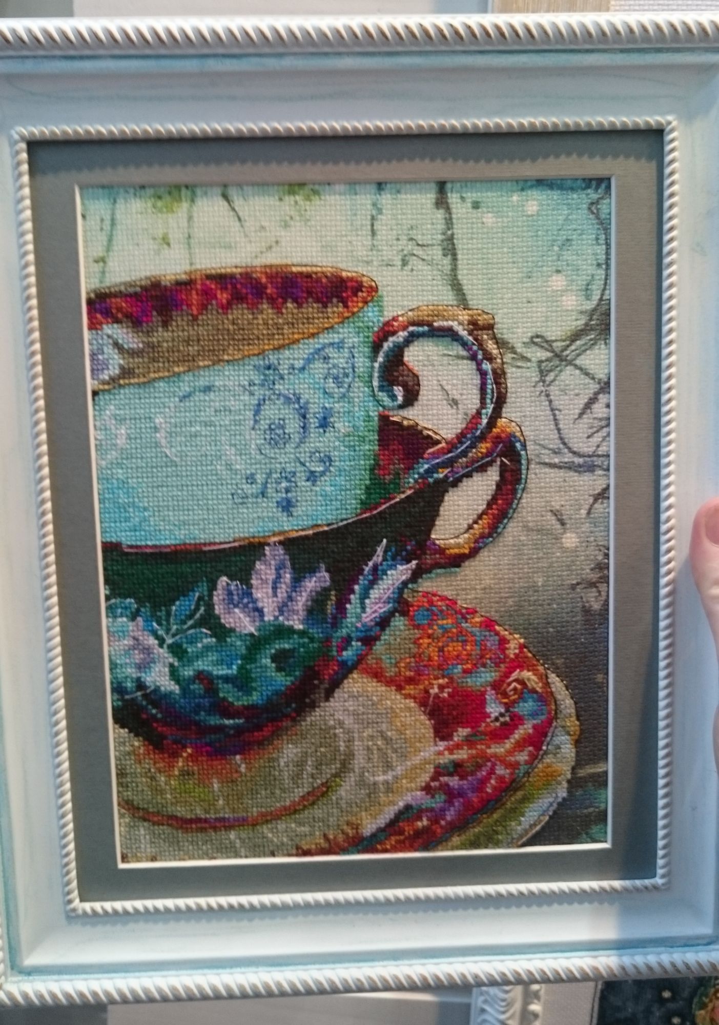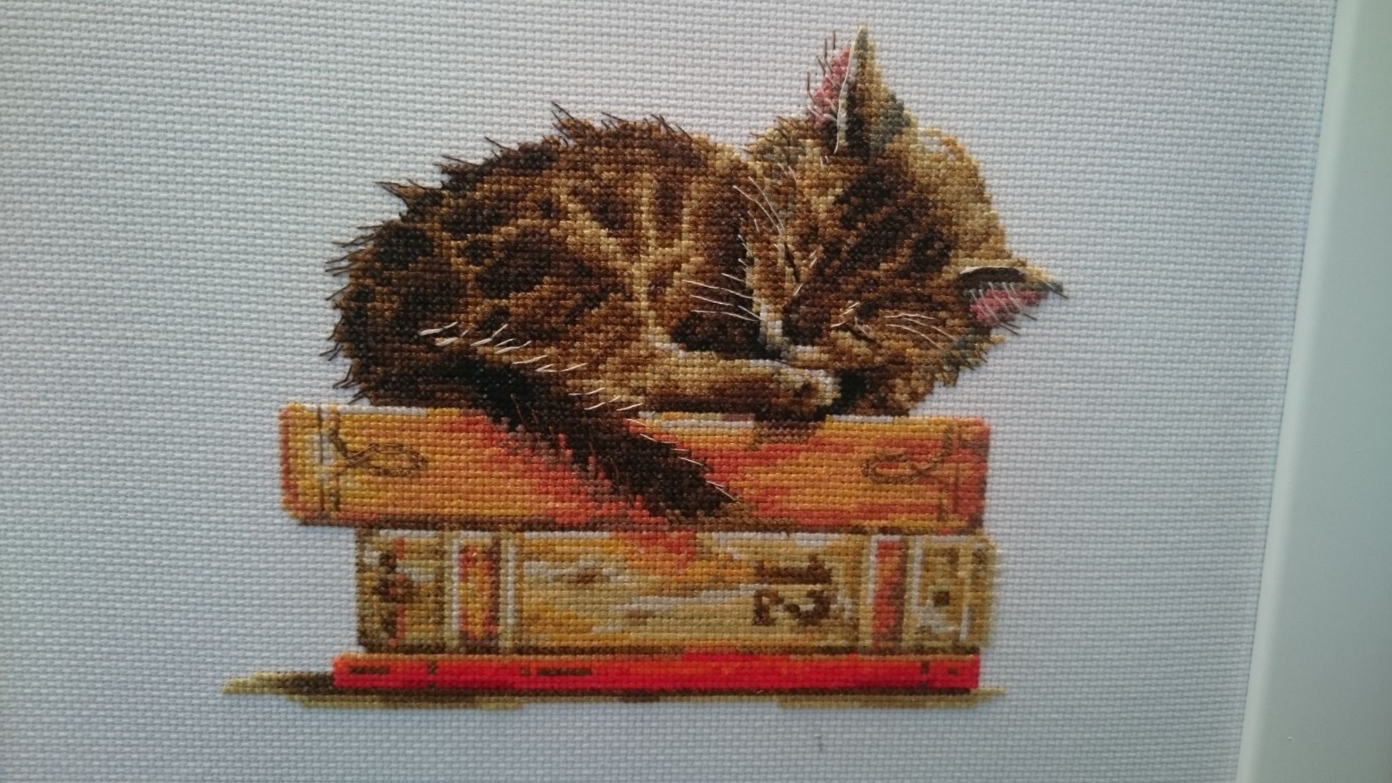 30 сентября 2016 15 минут назад, olnikva сказал: Общий наш вердикт такой. Все четыре работы очень хороши, и очень красиво смотрятся вместе. НО. Они довольно крупные, требуют много места на стене. С учетом того, что три из них имеют явно "сезонный" характер, надо это учитывать. К примеру, неожиданно приобретенный мной котейка на книжках имеет размер 19,5*16,5см. Плюс поля, плюс рама, плюс еще три картины. Получается довольно масштабно. Что касается КАЖДОЙ из работ. Понравилось всё. Стильно, элегантно, ничего лишнего. Смотрятся нарядно, глаз радуют. Детали я тебе сфотографировала. Аида-14. В принципе, неплохо, но понятно, что на равномерке будет лучше. Оля, очень неожиданно и приятно было тебя встретить и не менее интереснее обсудить вышивки "вживьем" с таким знатоком, как ты olnikva сказал(а) спасибо Поделиться сообщением Ссылка на сообщение