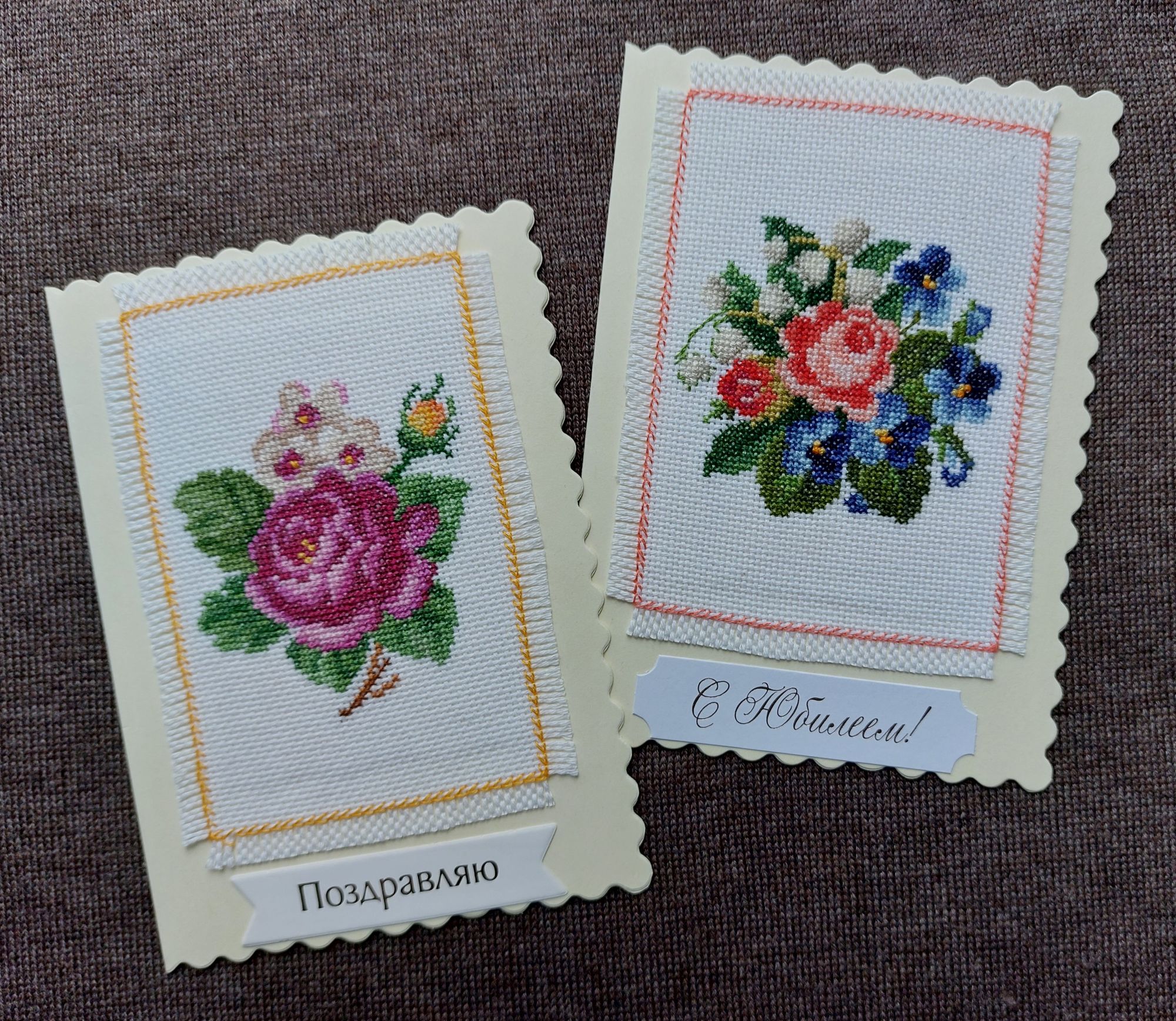 7 ноября Всем доброго дня! В наш отчетный "пятый" день не получилось отчитаться. Но сегодня тоже неплохой день. Во-первых, семерка счастливое число, а, во-вторых, "день седьмое ноября - красный день календаря..." неплохой повод для отчета. У меня опять по мелочи. Новогодний процесс к показу решила опять отложить на будущее. Будет одна "гаечка" на всё. Открываем и зеленим; Два букета по схемам Жанны Стрибук: ДМС, Беллана через 1 нить основы. Открыла нового для себя дизайнера, очень понравились ее разработки и отличная проработка. В схеме только крестики, никаких четвертинок, блендов и бэка. В ландышах я, все-таки, позволила себе заменить крестики на бэк, т.к шила через одну нить основы, и крестики в виде стебельков на ландышах выглядели уж слишком грубо. В открытке с одной розой и тремя белыми цветами добавила дополнительный бутон, чтобы число цветов было нечетным. Одна открытка будет подарена через месяц. Из-за нее и взялась за процесс. Вторая пока вакантна, ее сделала "до кучи", т.к. люблю хоть маленькие, но серии. На этом сегодня всё. Всем хорошего дня! Путешественница, Bayuliya, irina4221 и 7 других сказали спасибо Поделиться сообщением Ссылка на сообщение