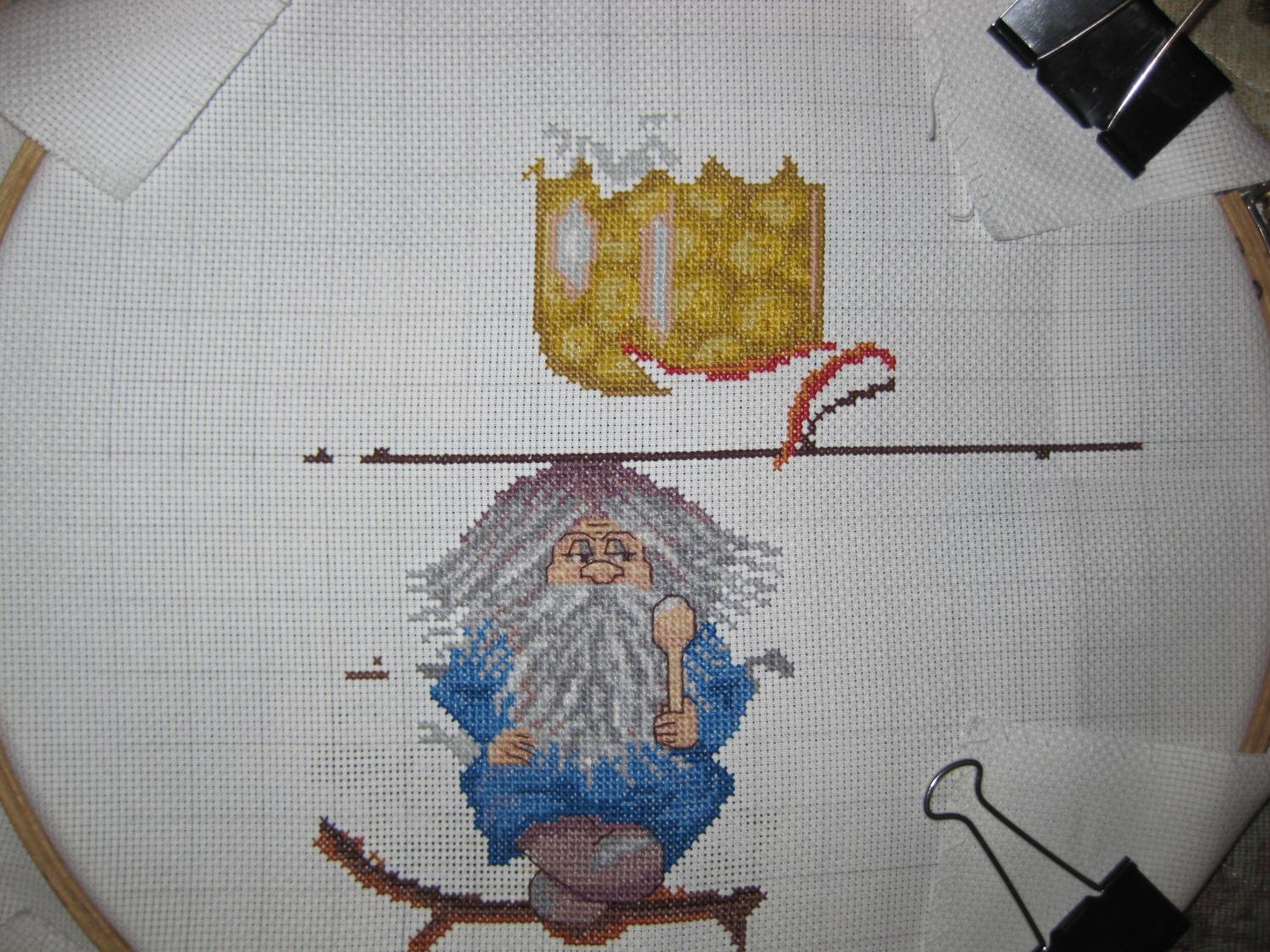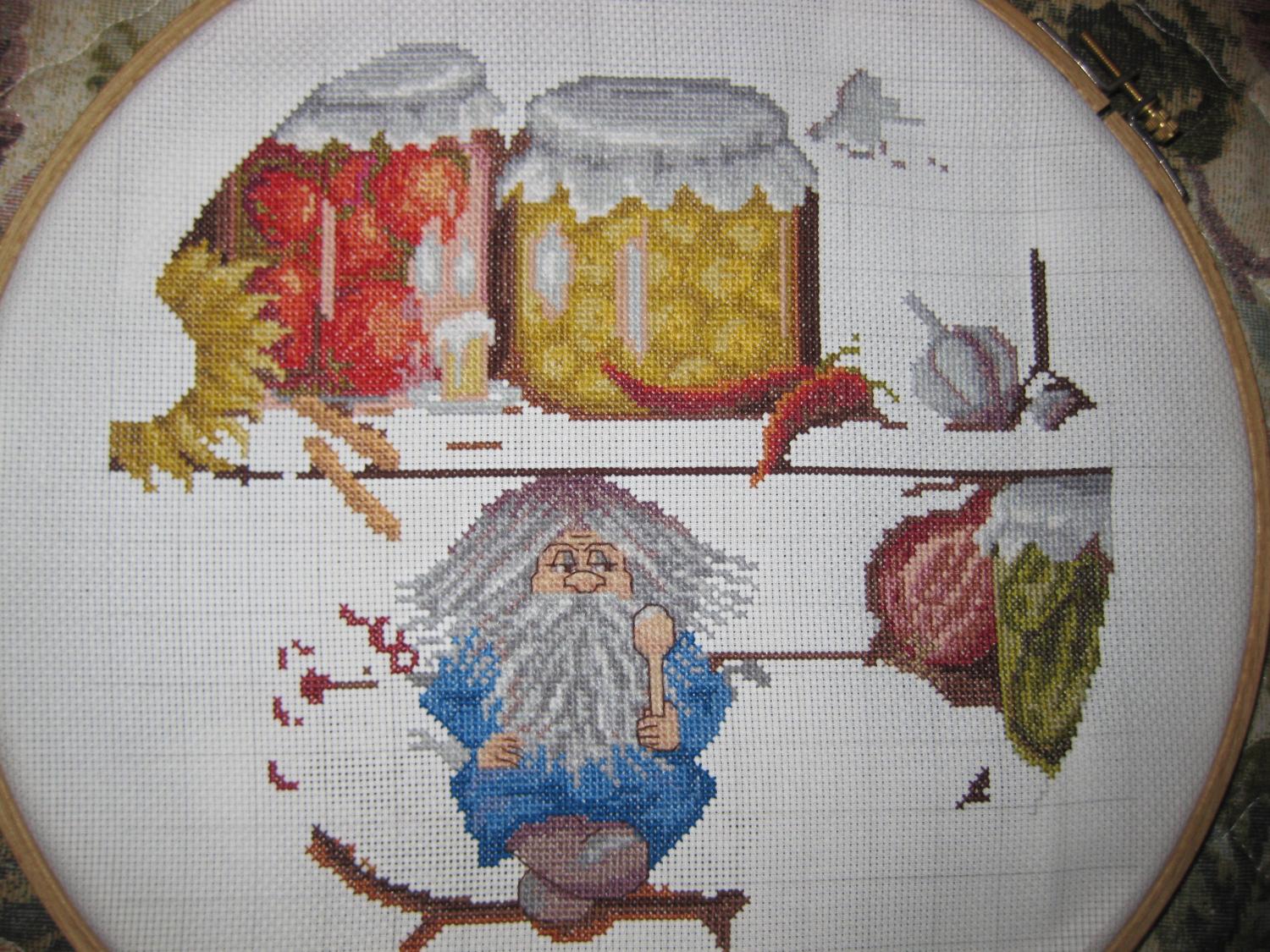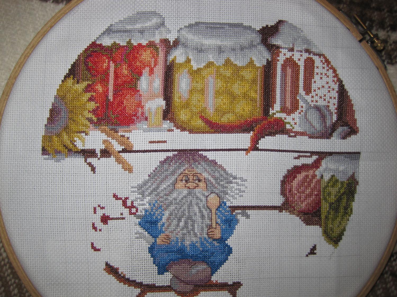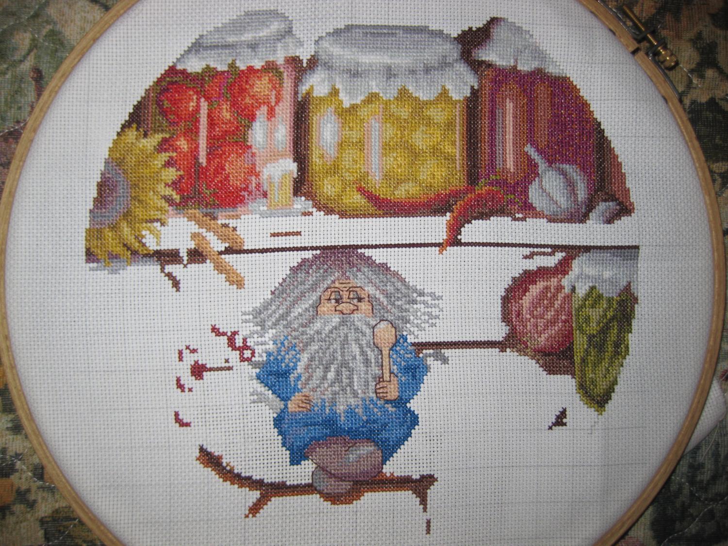 11 марта 2012 Продолжаю свою печальную повесть про Домового. Моя работа заключается в том, что я вышиваю, затем порю то, что уже вышила, и подбираю собственные цвета. Так получилось с лицом (об этом уже писала), а теперь - с лаптем. Темно-рыжый лапоток мне не приглянулся. Ну совсем уж отвратиетльно смотрелся. Распорола, попробовала подобрать свои нитки, тоже вышло плохо. На время оставила, пусть "вылежится". А пока вышила баночку с желтыми ягодками. Я думаю, что это черешня, дочь предполагает, что крыжовник, наша бабушка считает это желтыми помидорками. А что на самом деле... Хотя... здесь буду справедлива. Получились аппетитно, а главное - именно теми нитками, которые положил производитель. Распоротый лапоть покажу отдельным сообщением. Поделиться сообщением Ссылка на сообщение