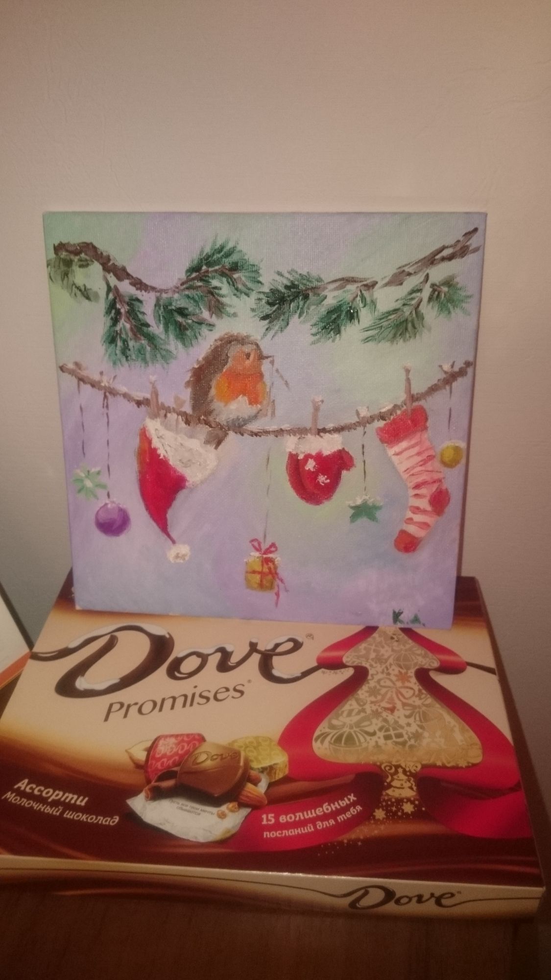 30 января 2017 Привет всем моим дорогим, кто еще не отписался от меня-зануды! Хотела дать своей темке хоть небольшой передых, но нет, не могу, совесть не позволяет мне замолчать о маленьком, но очень приятном событии. Дело в том, что в начале этого года я выиграла свою первую в жизни "конфетку" - замечательную картину маслом, которую нарисовала Анечка, дочь Наташи (Наталья2013). Аня пишет профессионально - картина самая что ни на есть настоящая! И сегодня, наконец-то, я ее смогла получить. В принципе, я не сторонник демонстрировать "личные" посылки, но поскольку Наташа сама анонсировала конфетку в своей теме, то грех не похвастаться здесь. Вот он, мой замечательный приз! Теперь моя новогодняя коллекция настенных украшений стала больше и наряднее. PrimaN, Antarktida, yuss и 20 других сказали спасибо Поделиться сообщением Ссылка на сообщение