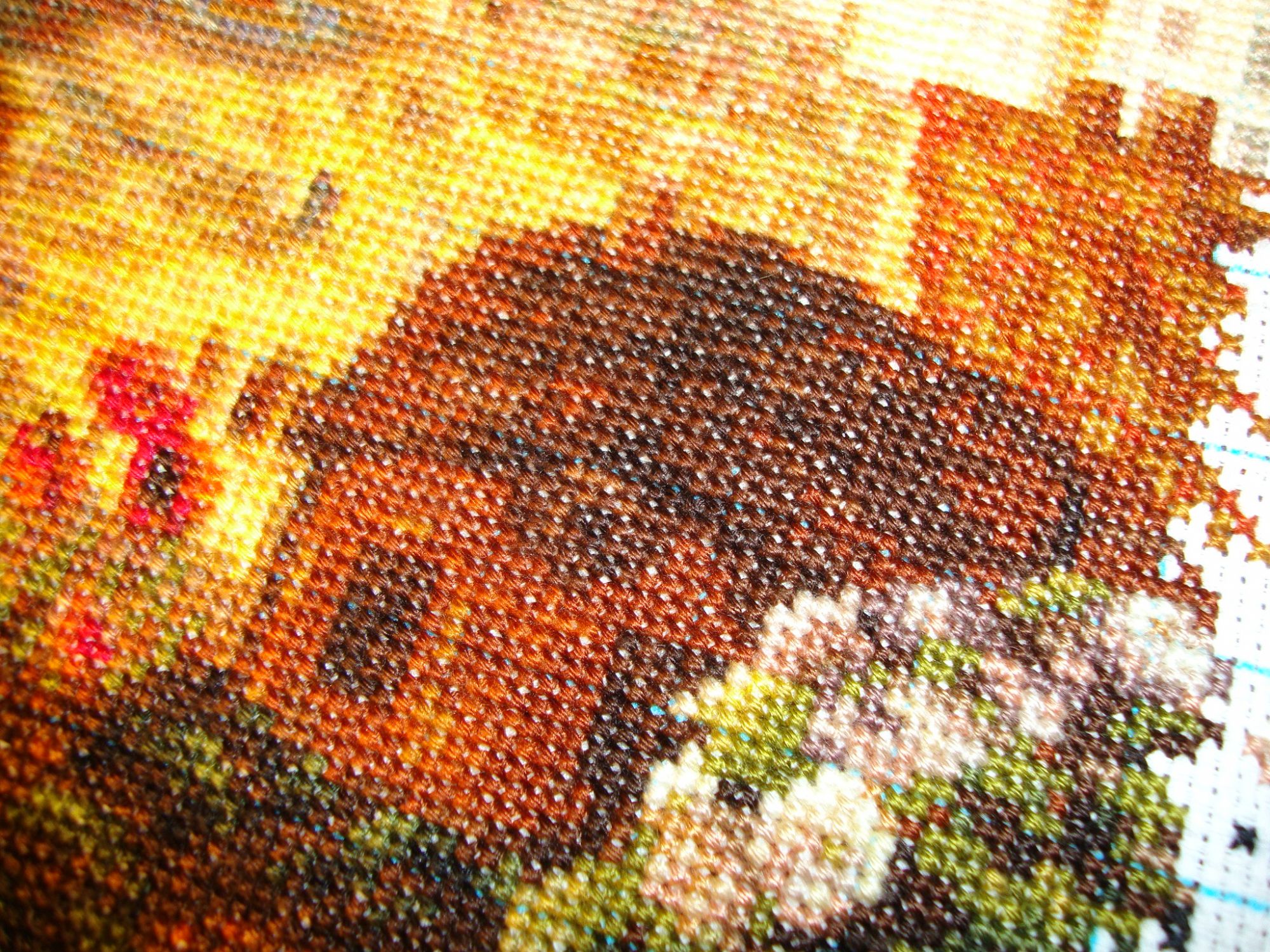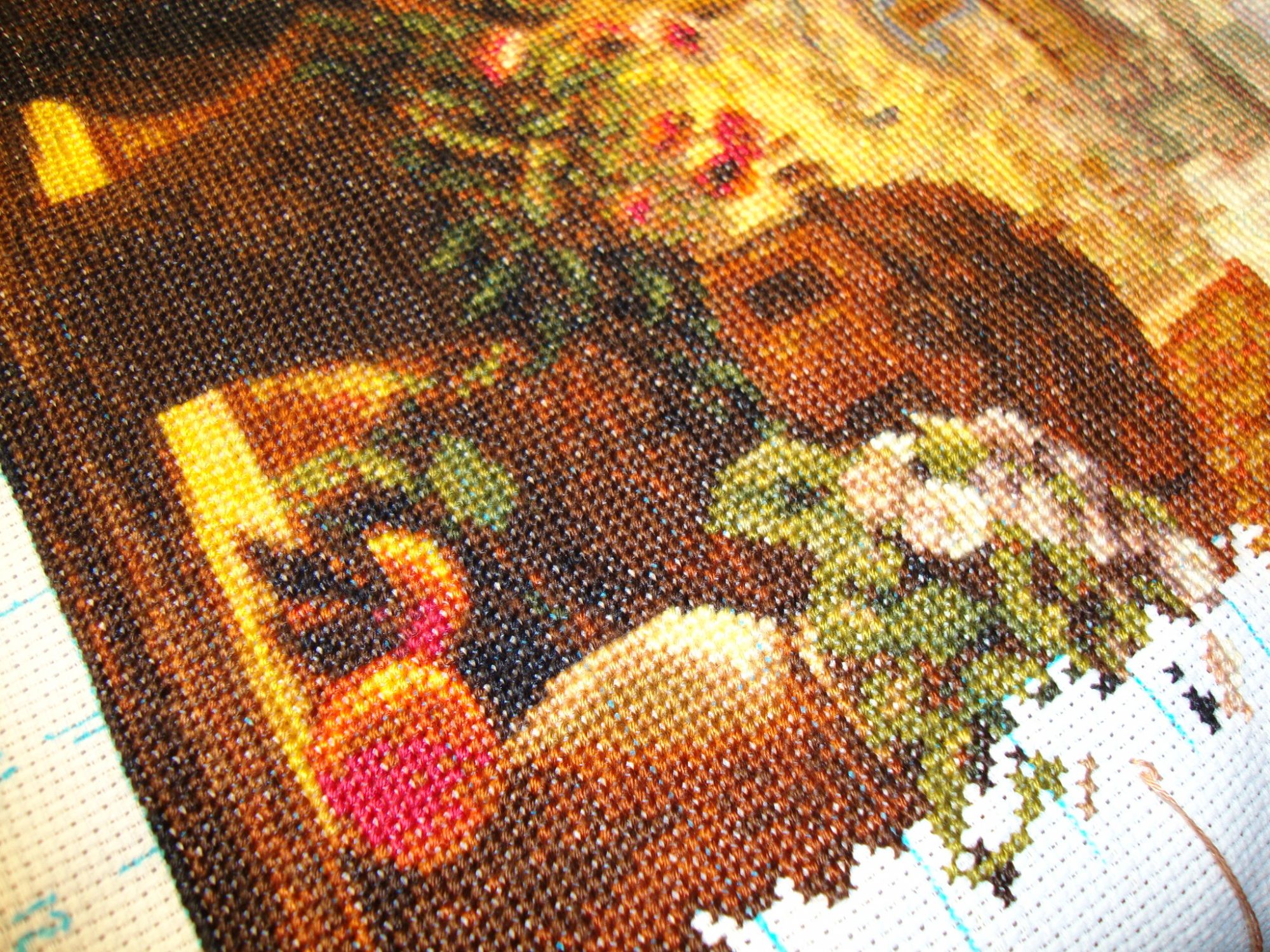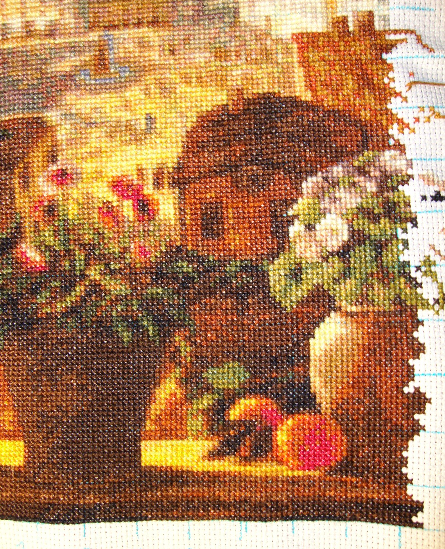 12 февраля 2018 Ещё кусочек И.... тадам ...финал Что сказать. Работа вышита очень быстро, на одном дыхании за 70 дней. Последний этап вышился быстро ещё и благодаря отстствию инета, собственно, поэтому и не показала предпоследний кусочек. В работе использовано 63 цвета, канва 16. Ниток осталось много. Правда, размер был заявлен 440*314 мм, по факту получился 415*300, но, я ещё когда постирала канву перед вышивкой видела, что она села. Вышивка доставила довольствие. И, хотя я начала с наиболее светлого угла, вся его солнечность проявилась только с появленем тёмного. В ближайшее время в багетку. Выбор багета, возможно, удивит, но я хочу белый, как можно менее заметный, т.к. вышивка будет висеть на белом фоне и в абсолютно не солнечном помещении - в ванной комнате. А вообще-то, поход в багетку вещь не предсказуемая. Когда-нибудь, когда интерьер будет готов, покажу у себя в теме, как оно выглядит. Спасибо соратницам за приятную компанию! Люда, у тебя впереди самое вкусное! Особенно те три цвета, которые используются в переходе от домов к небу - такие нежные и так к месту! Тропинка, solnishko-ym, kas_julia и 24 других сказали спасибо Поделиться сообщением Ссылка на сообщение