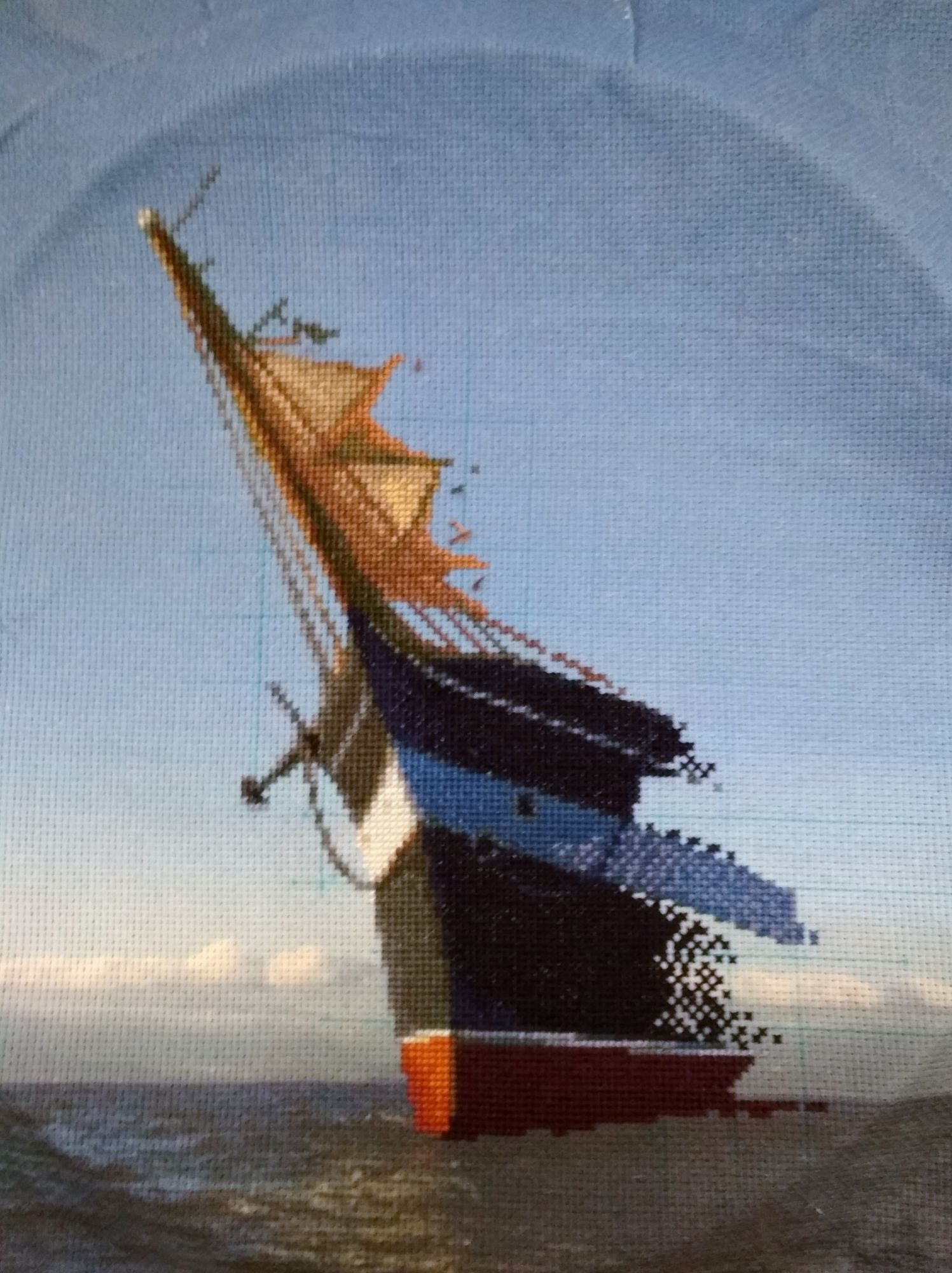 3 апреля 2018 Вот и отшила первый кусок. Начала снизу, но упорно рвалась вверх... и теперь появился простор для широких стежков и массы крестиков)))) (о, как завернула!!)))) И вот появился БРУШПРИТ, это я в интернете вычитала, как он называется правильно. Сама я всегда называла его буршпит. Век живи- век учись! ))) Нет, все таки от вышивки очень большая польза для эрудиции))) А что, знаете, сколько я прослушала аудиокниг пока вышивала! )))) Вот уже и пол корпуса парусника! махно, Пушистая, kreolka и 14 других сказали спасибо Поделиться сообщением Ссылка на сообщение