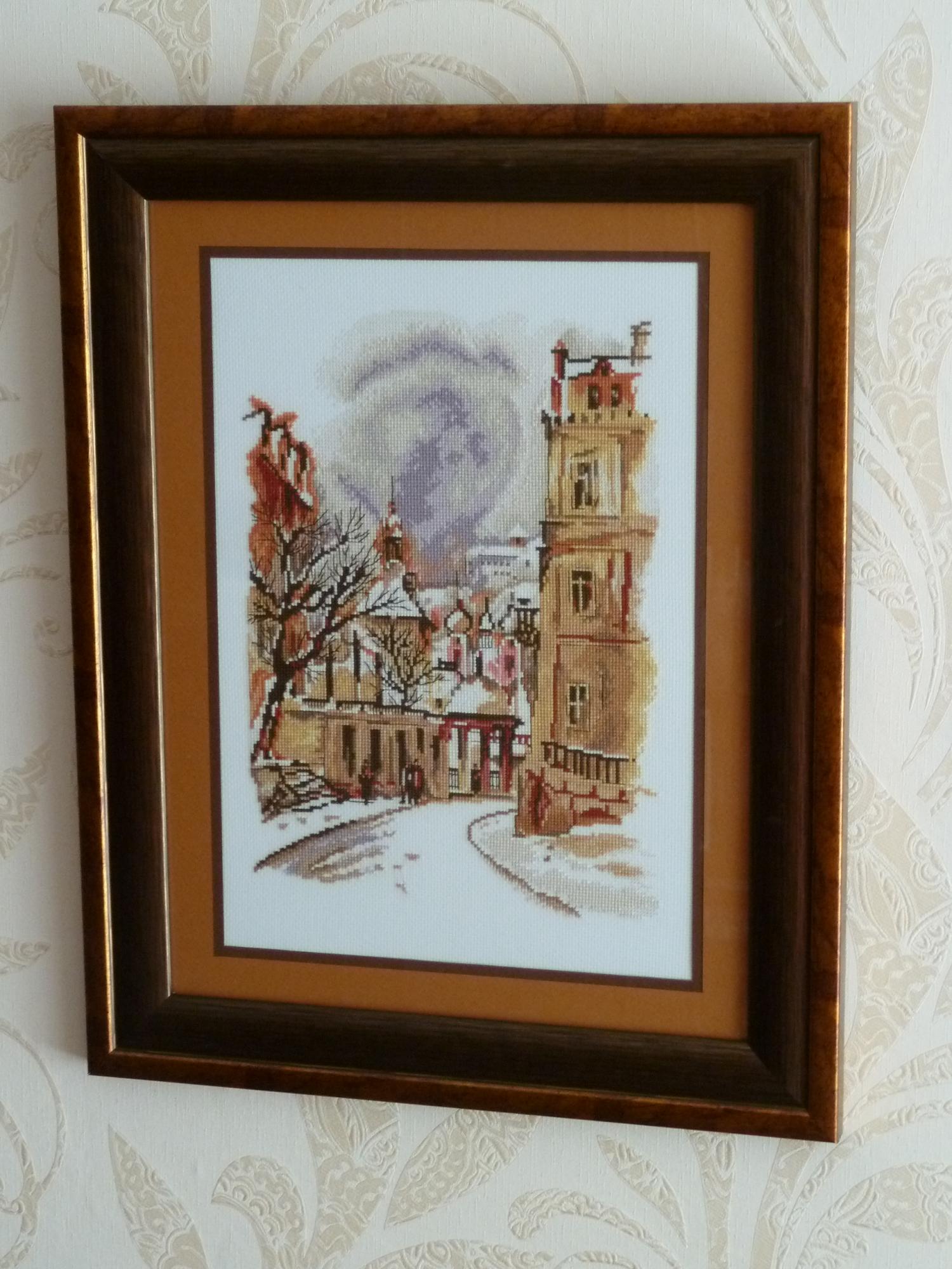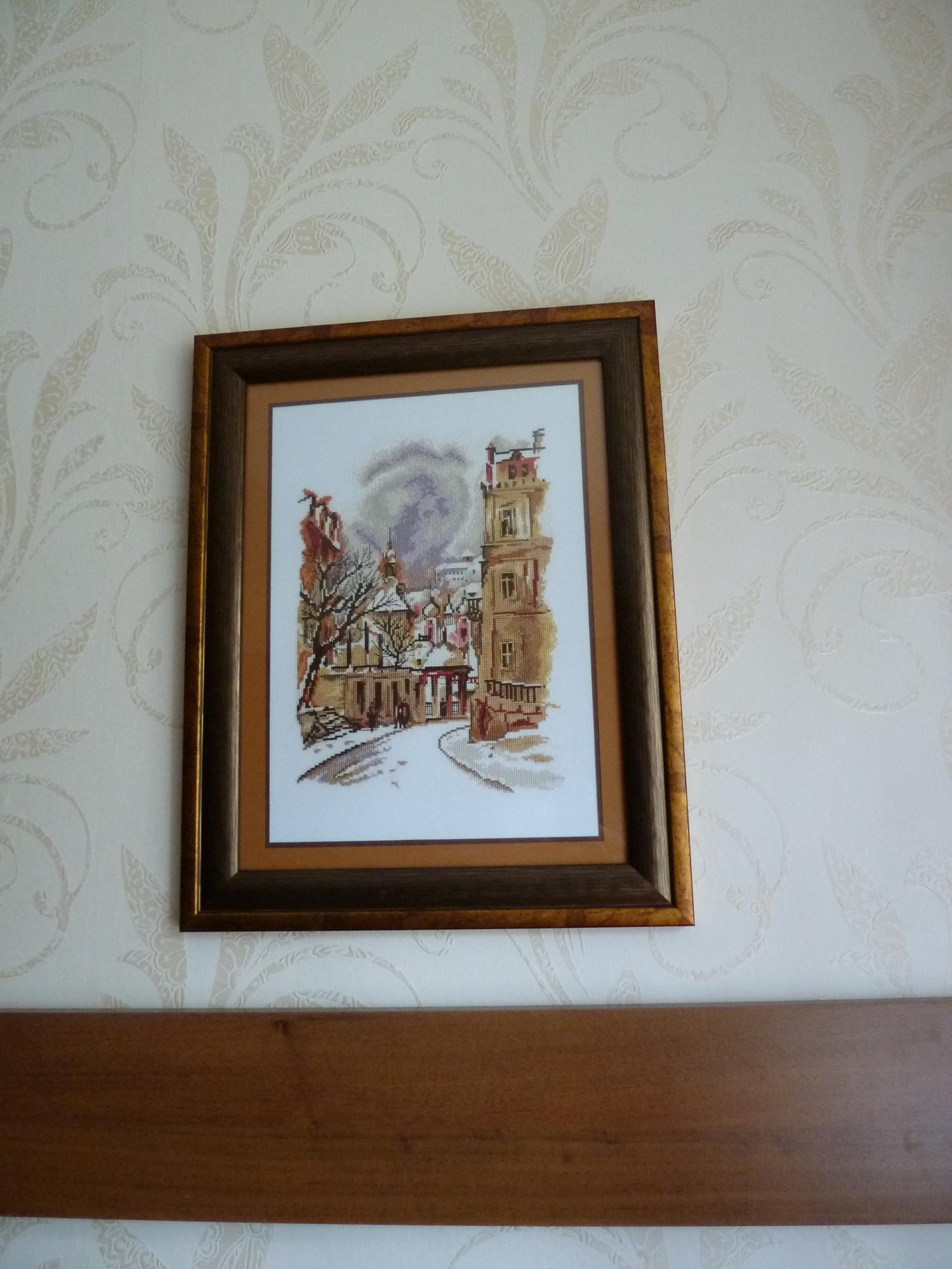 2 июля 2014 Ну, и как обещала, расскажу, как я делаю это))) в смысле оформляю))) 1. В Леруа Мерлен были куплены две рамки: красивая, но с плохим стеклом, и рамка-клипса с хорошим стеклом. 478+81=559 р. 2.Из картона и белой бумаги вырезала два прямоугольника по размеру 30х40 см. Наклеила белую бумагу на картон двухсторонним скотчем по уголкам, чтоб подложка под вышивку была белая. 3.С помощью МАСТЕР-КЛАССА по натяжке натянула вышивку на картон 4. Излишки канвы по краям загнула на изнанку и прикрепила на двусторонний скотч. Картон не жесткий, поэтому слегка коробится. На качество натяжки это не влияет. 5. Из листов для акварели (55+55=110 р.) вырезала два прямоугольника 30х40 см. Поле светлого паспарту 2 см. Отмеряю это расстояние по всем четырем сторонам и режу окошко канцелярским ножом ( на отдельной доске, чтоб не портить стол). 6 На темный лист паспарту в уголки наклеиваем маленькие кусочки двустороннего скотча и накладываем светлое паспарту сверху, приклеиваем. 7. Темное паспарту должно выглядывать на 0,5 см (это мне так захотелось, можно сколько угодно захотеть). Поэтому по внутреннему окошку от светлого паспарту отмечаем по всем четырем сторонам по 0,5 см и чертим. На темном плохо видно простой карандаш, поэтому начертила белым. 8. Режем темное паспарту. 9. А теперь все вставляем в рамку: стекло протираем от пыли, затем кладем паспарту темной стороной наверх, затем вышивка, затем задник, закрепляем зажимы и проклеиваем обычным скотчем шов между задником и рамкой. Этим всем пользовались А вот что получилось))) Я понимаю, что любой художник-оформитель-багетчик-дизайнер просто в обморок упадет от моих кустарных методов и умений)))) но вот висит картина у меня дома и радует мои глаза, а в багетку я с моими сегодняшними финансами вряд ли скоро попаду... Человек, kas_julia, ГАЛИНА_С и 31 других сказали спасибо Поделиться сообщением Ссылка на сообщение