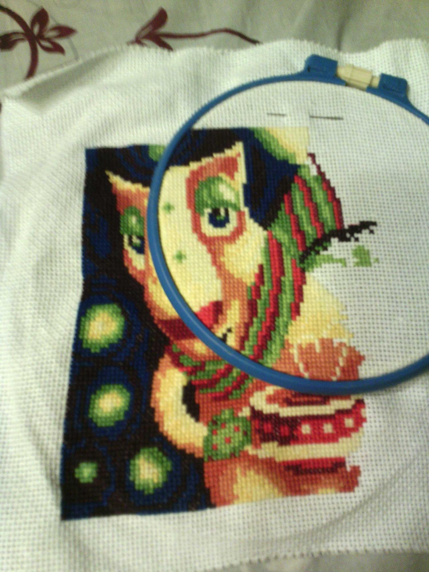 13 июля 2015 Оля, кузябрик подрастает. Симпатишный. А как ты умудряешься по дороге на работу вышивать? Особенно интересуют моменты когда надо отрезать нитку, заправить ее, заглянуть в схему. Свет, шью на маленьких или средних пяльцах. В дороге могу шить только на белой канве (равномерка не прокатывает, хотя один раз шила, но там каунт большой был). И стараюсь брать не сложные работы, чтобы одним цветом побольше вышивать. Пяльца, органайзер (бумажный), ножнички и схема лежит в плотном пакете. Достала, положила на коленки схему, пяльца в руки и вперед. Закрепляю с обратной стороны, отрезаю ножничками (у меня цапельки не самого маленького размера). Потом беру следующую нитку и вперед вышивать дальше. Но вышивать удается в автобусе или электричке. В метро или маршрутке этого не делаю. В кузябрике, кстати, потеряла где-то бардовые нитки.))) Заменила на мулине в 3 цвета. Там, в принципе, этот цвет на чашке чуток и в шарфике оставался. Не особо заметно. Да и на подушке разглядывать никто не будет.))) FEDORMaзиус сказал(а) спасибо Поделиться сообщением Ссылка на сообщение
