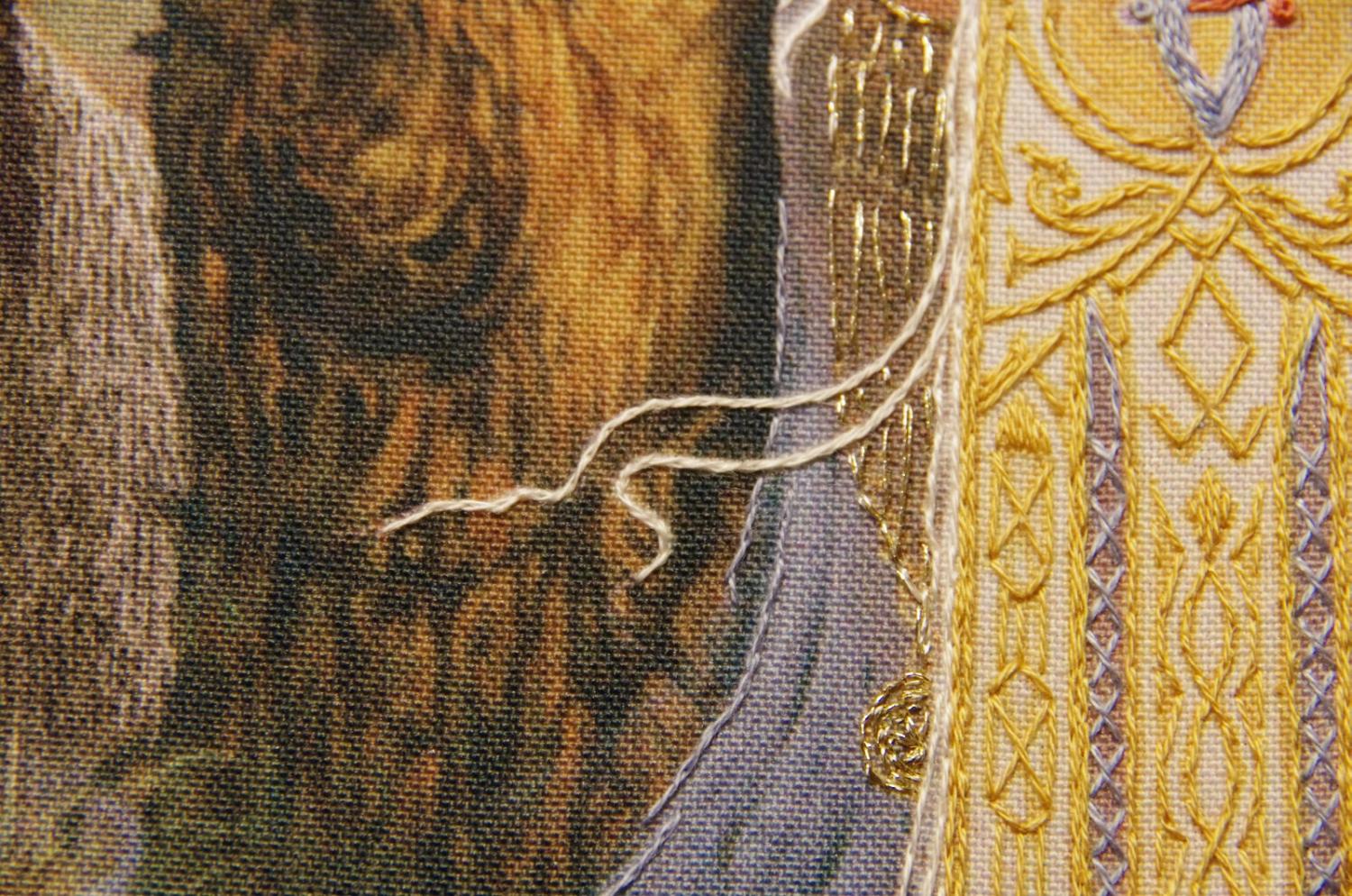 15 сентября 2015 Оля, привет! Веда - это красотища, ты кудесница, браво. Столько деталек, очень интересно наблюдать за процессом. Присоединяюсь, буду тоже с интересом наблюдать. Какая у тебя Веда!! я такого ещё не ведала, в смысле, не видела!! Гавроша сегодня не покажу, а вот продвижениями в Веде быстренько похвастаю и баиньки... Покрывало-рушник побеждено-побеждён)))) От обложки отошла. На обложке вышито довольно примитивно - контуры кое-где. Мне захотелось большей аккуратности, поэтому рисунок на рушнике старалась прорисовать насколько могла тщательнее. Символ вышит не просто швом враскол, а гладью. Впереди волосы и медведик. (последнее фото я так лежа и снимала))). Всем спокойной ночи! Lusha73, gracy_trefoil, Лена1973 и 17 других сказали спасибо Поделиться сообщением Ссылка на сообщение