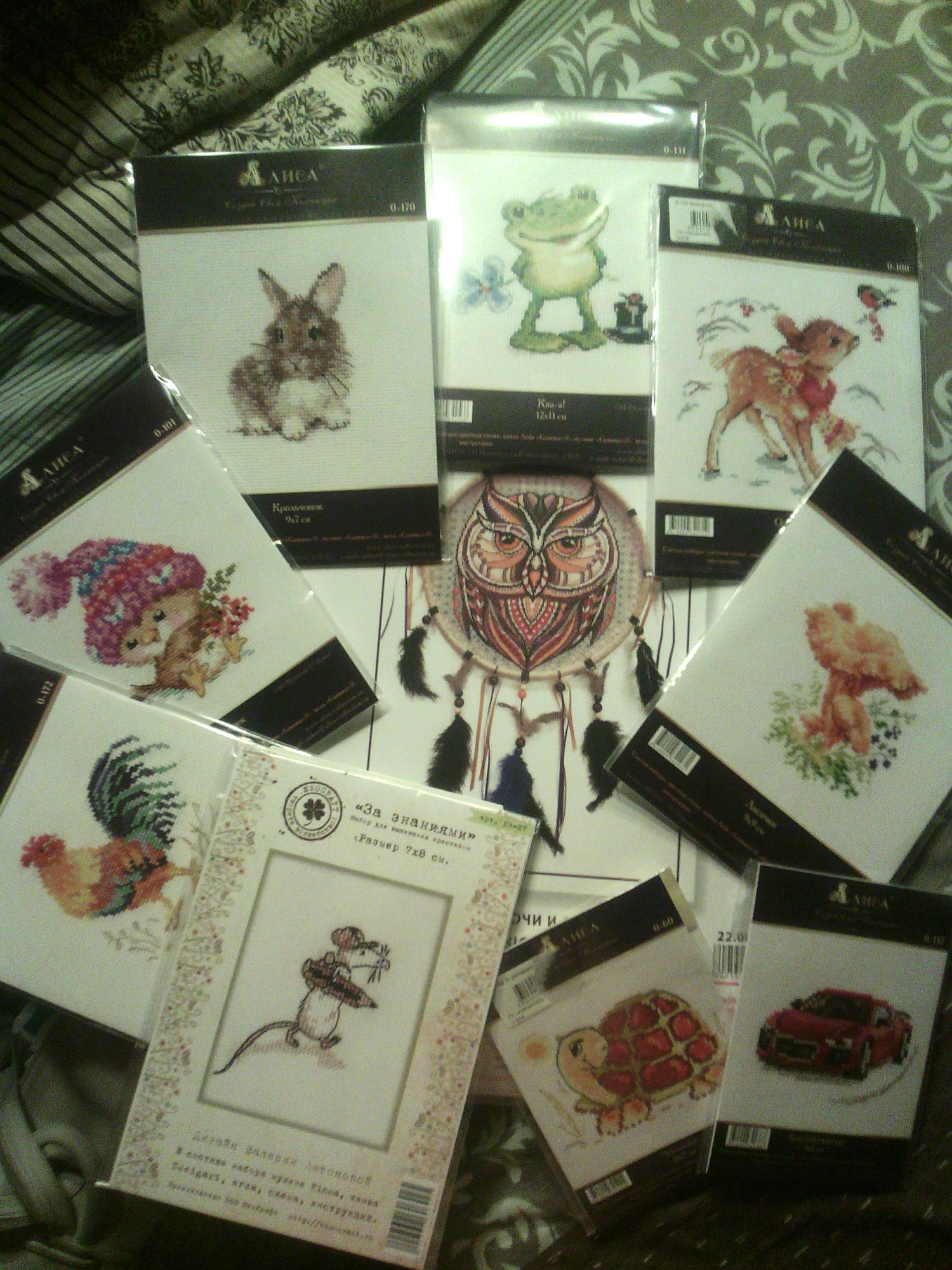 31 октября 2016 Я пришла показать итоги выходных. Сразу прошу прощения за качество фото... На улице совсем серо... Начала наволочку к одеялку. Девчонки предложили сделать удлиненную подушечку, которую первое время можно подкладывать под спинку, чтобы ребёнок на боку спал и не заваливался. Наверное она и получится. Из вариантов расположения были: и . Остановилась на втором. Эту наволочку прошу занести в ту же гаечку, что и одеялко, т.к. это будет комплект в итоге. Спасибо! ))) Первым вышился кораблик от Алиски: Потом красная машинка: Следующая будет желтая машинка, а потом самолетик. Начало желтой машинке попало на общее фото. А еще вышился вот такой вот Мыш! Просматривала наборчики в каком-то инет-магазине и увидела его! Посмеялась, что очень похож на сына. Девчонки поприкалывались, что раз похож, то надо его сыну вышить. Сын оказался совсем не против и Мыш поселился у него на толстовке. ))))) Процесс маааленький и очень приятный. Не очень удобно оказалось бэк не по клеточкам вышивать на водорастворимой канве. Хочу его повторить на равномерочке для себя (или для сына в его комнату)))). Для галереи потом перефоткаю, когда встречу одновременно сына и солнце.)))) Еще из вышивания. Съездили в гости к Ксюше из Бабушкиного ремесла. Заодно забрала у нее заказик свой - малявки от Алисы и Неокрафта и "моя прелесть" - Шуан ночи и сна от Марьи Искусницы. Это комплектация именно для "ловца снов" как на картинке - отрез канвы на всю картину, деревянный обруч, бечевка, тесемочки, клей и перышки!!! )))) Моя счастлив!))))) Держусь изо всех сил, чтобы не начать. А вообще - меня уже разрывает. Хочу вышивать подарки для племянников (получаю колоссальное удовольствие от этого), зверей у ёлки от Дима (меньше половины осталось, ведь) и начать Шуан (с чьей-то легкой руки именуемый теперь Шалун ночи и сна))))) и Мирабильку. )))) Но пока держусь и считаю, что я - однопроцессница!!! (сама себе не верю)))) Ну и немного серого снежного балашихинского утра из окна 24 этажа)))) Каори, svetles, Lusha73 и 31 других сказали спасибо Поделиться сообщением Ссылка на сообщение