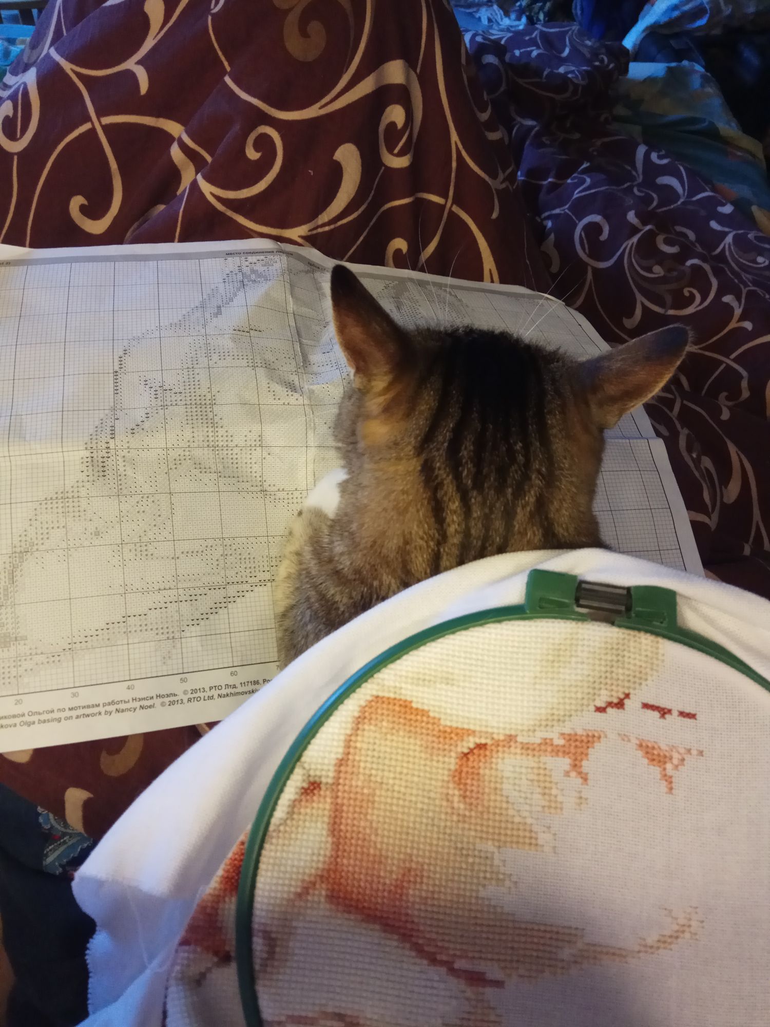 9 апреля 2017 Я с небольшим ночным отчетиком. Почему-то плед не шел, поэтому в руки прыгнули девочка с гусиком от РТО. Начала я ее оказывается в июне 2015. Непорядок!))) Пора дошивать, похоже. Шьется как песня. Бэка нет, но проработка шикарная. Каждый крестик на своем месте. Большие куски шьются одним цветом. Блэнда всего два. Мозги после загрузки на работе отдыхают. А еще отдыхать помогает главный помощник))) Пришел и сказал, что на схеме не хватает котика. Шить котика тут. И вытянул лапу))) А сегодня у меня вдруг проснулась отдохнувшая совесть)))) Я взяла в руки плед и почти дошила мишку. Осталось два цвета травы и маленький цветочек.))) За сим откланиваюсь, т.к. гулять не ходила, фоток природы не делала. Выходные провела как тюлень - лежала на кровати, ела и смотрела с мужем фильмы. Правда, сегодня с утра я даже сделала всем не только завтрак, но и попробовала сделать капучино в домашних условиях. Получилось вкусно. Буду практиковать.))) Catopuma, apanjul, Татуся и 31 других сказали спасибо Поделиться сообщением Ссылка на сообщение