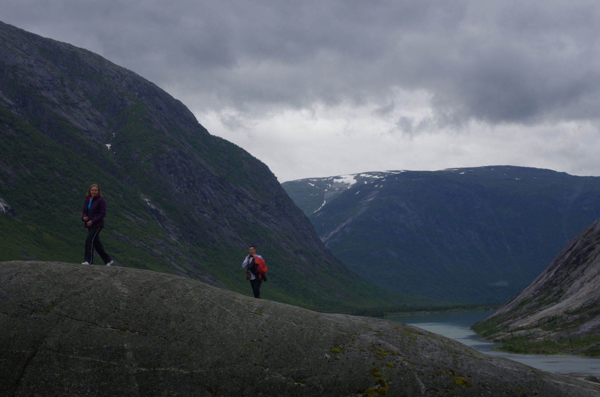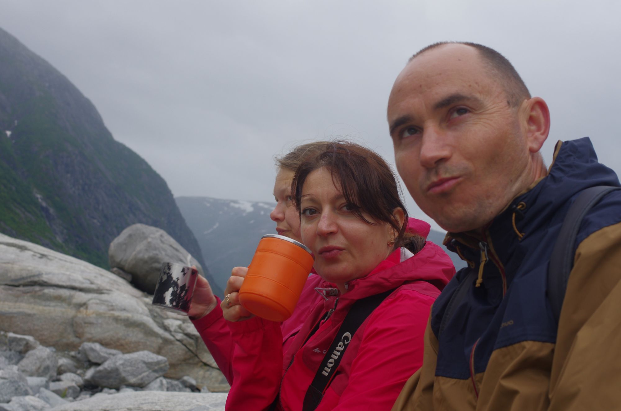 22 августа 2017 Итак, продолжаю.))) Следующий день оказался зимним по тематике - были ледник и Снежная дорога. Из кемпинга мы выехали сытые и довольные и поехали к леднику. Но отъехали не сильно далеко - до конца населенного пункта. А там дорога была перегорожена и молодой человек на каком-то языке плюс универсальном языке жестов объяснил, что дорога закрыта (как мы выяснили уже дома, из-за наводнения) Наши богатыри прикинули насчёт объезда. Оказалось, что нас ожидал крюк в 176 км и плюс один не запланированный паром (соответственно доп. расходы). Но к этому надо быть готовым, т.к. страна горная и дождливая, поэтому в любой момент почти с любой дорогой может что-то произойти и придется перекраивать свои планы. Паром через фьорд - это всегда великолепные виды! Удержаться от фотографирования не возможно! А потом был ледник! Да-да, не снежник, а ледник! Нигардсбрин. От стоянки до ледника идти 2 км. В принципе, можно полпути срезать на кораблике, но мы лёгких путей не ищем. Тропа красивая и очень интересная. И совсем не сложная. Идёт вдоль озера по камушкам разного размера. Про то, как красиво вокруг я даже говорить не буду. Пока шла, в голове вертелось много мыслей про ледниковый период... Ведь отдельные языки ледника (не этого, а вообще) доходили до Среднего Дона (я про это писала в Уголках, когда описывала поездку в экспедицию Средний Дон 2012). Ну и где Дон, а где Норвегия... И все растаяло... И даже этот ледник сильно растаял - можно найти фото 2003 и 2007 года - ледник там упирается хвостом в озеро. А теперь оцените масштабы этого ледника! На фото видно людишек сверху и рядом. На ледник водят экскурсии, но надо заранее записываться, тебе выдают снаряжение, одеваешь кошки на ноги, встаёшь в связку с остальной группой и вперёд за проводником. Но мы туда не ходили. Просто подошли и простояли рядом. Впечатляет! Погода там меняется моментально + ощущается холод от ледника. Одеваться надо так, чтобы можно было легко утеплиться или наоборот - раздеться при необходимости. А потом мы отошли чуток от ледника, сели за камешком и пили вкусный чай с ягодками и шоколадкой) Очень много идут туда с детьми (вернее - не только туда, а везде)))) Но вот эта семья с тремя карапузами мал мала меньше - наши кумиры. Дети везде шли сами - мама с папой только направляли. А эту фотку я поставила на телефон как заставку. Люблю ее нежно. Языков у ледника много - какие-то видны прямо с дороги на горах, к каким-то сделаны подходы. Посмотреть можно любой. И ещё - Нигардсбрин - это один не очень большой язык самого большого ледника Европы. В общем - рекомендую к посещению!))) irisheckin, Маняша, оленек и 34 других сказали спасибо Поделиться сообщением Ссылка на сообщение