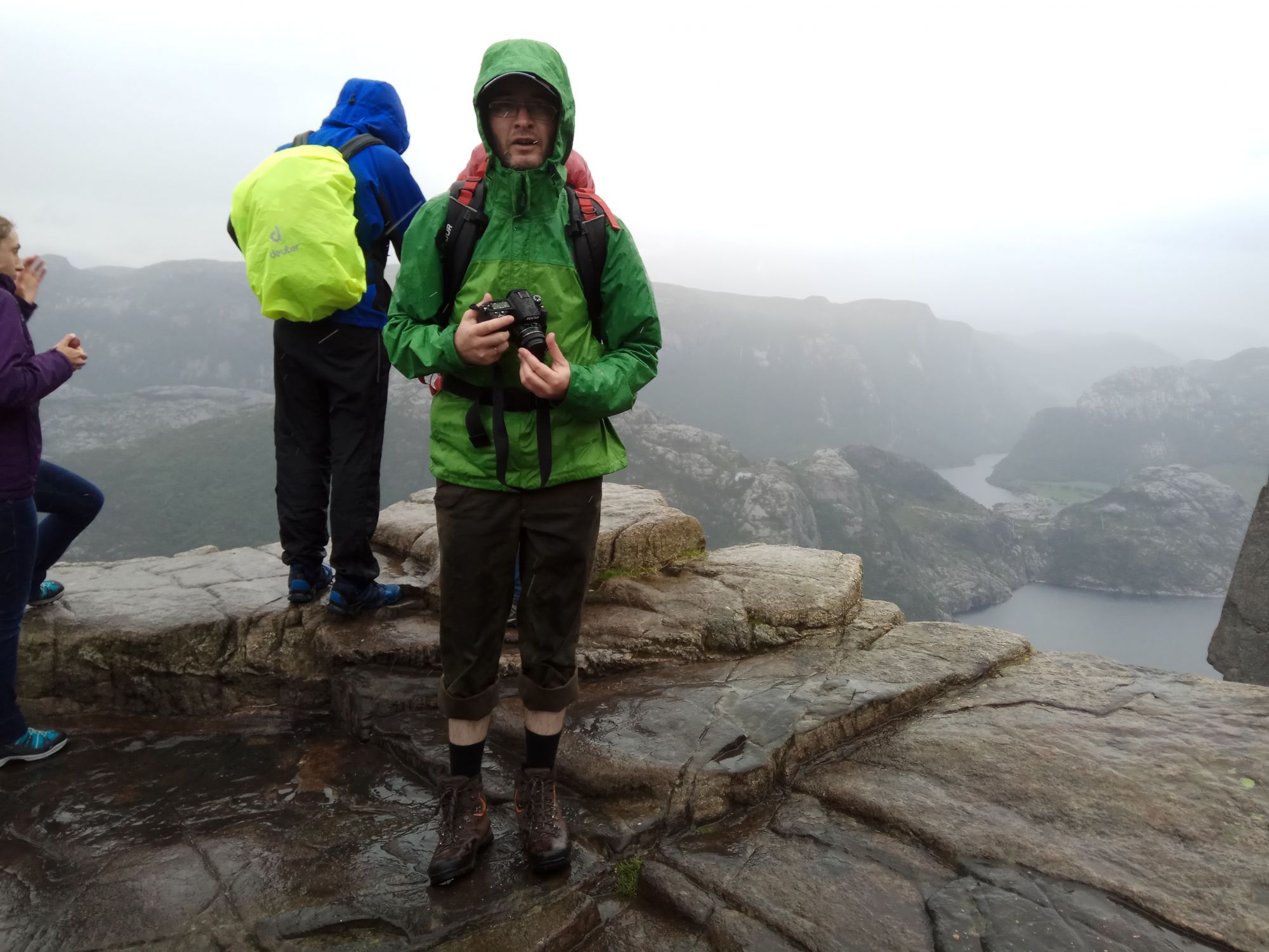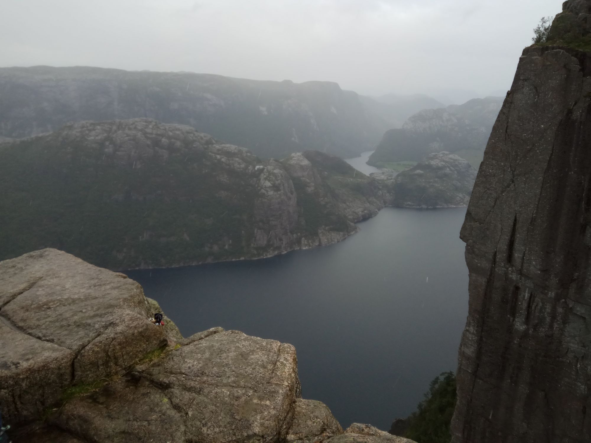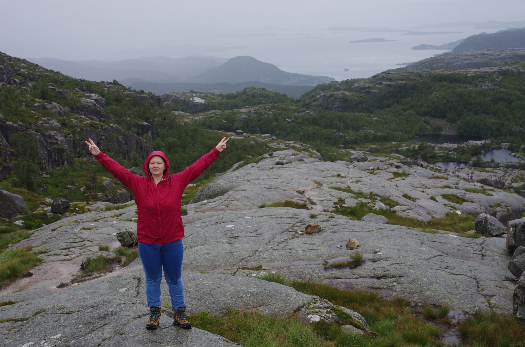 23 августа 2017 Ну и гвоздь программы на сегодня - одна из топовых достопримечательностей Норвегии - Прекестулен (или Кафедра проповедника или Пульпит Рок). Это плоский сверху кусок скалы, выступающий над Люси-фьордом и постепенно откалывающийся от своего основания (на фото будет видно трещину). Поток туристов туда просто нескончаемый. Ты постоянно идёшь в толпе народа. Мы шли под дождичком. Туда он накрапывал, а обратно уже хорошо и уверенно зарядил. И китайцы в мембранных куртках и с зонтиками - это капец, товарищи. Тычут ими тебе в глаза, зонты выворачивает ветром и ломает спицы, а они их потом тащут в таком виде. А ещё случился не приятный эпизод с немкой. Обычно на туристических тропах царит доброжелательность и взаимоуважение. Пропусти того, кто идёт быстрее, помоги, улыбнись, поздоровайся. А тут - она шла с палками и, когда ее кто-то догонял, расставляла их шире, чем надо. Тропа узкая, обогнать никак. Сначала я думала, что мне показалось, но потом это повторилось ещё несколько раз и не только со мной. Было дикое желание скинуть ее с тропы в озеро. Последний раз, обогнав ее, я даже выругалась. На самой площадке мы пофоткались и решили обратно идти другой дорогой. Там можно забраться на скалу повыше, посмотреть на Прекестулен сверху, а потом уйти дорожкой посложнее, которая вливается потом в ту, по которой мы пришли, примерно посередине пути. Вот там не было людей. Совсем. Свобода и офигевание от происходящего! Хотя, вру) Поднявшись чуть выше над Прекестуленом мы встретили немца, который пытался сделать сэлфи на большую зеркалку.) Я глазами спросила - Не нужна ли помощь, он очень обрадовался и Женька его запечатлел))) А тот долго улыбался, а потом спросил откуда мы и, узнав, что из России, вспоминал как поблагодарить на русском. Мы ему напомнили и он, улыбаясь почти без акцента сказал "спасибо"!))) Вот и показатель того, что люди везде есть разные - немка на тропе и немец наверху...) От высокой влажности у меня глюкнул телефон. Его пришлось потом перезагружать. Он там чего-то сам себе понастраивал, картинку новую на рабочий стол установил, скринов наделал. Поэтому рекомендую влагозащитные чехлы. В следующий раз хочу озаботиться этим вопросом. Хозяйка смешных зверей, apanjul, marvlase и 32 других сказали спасибо Поделиться сообщением Ссылка на сообщение