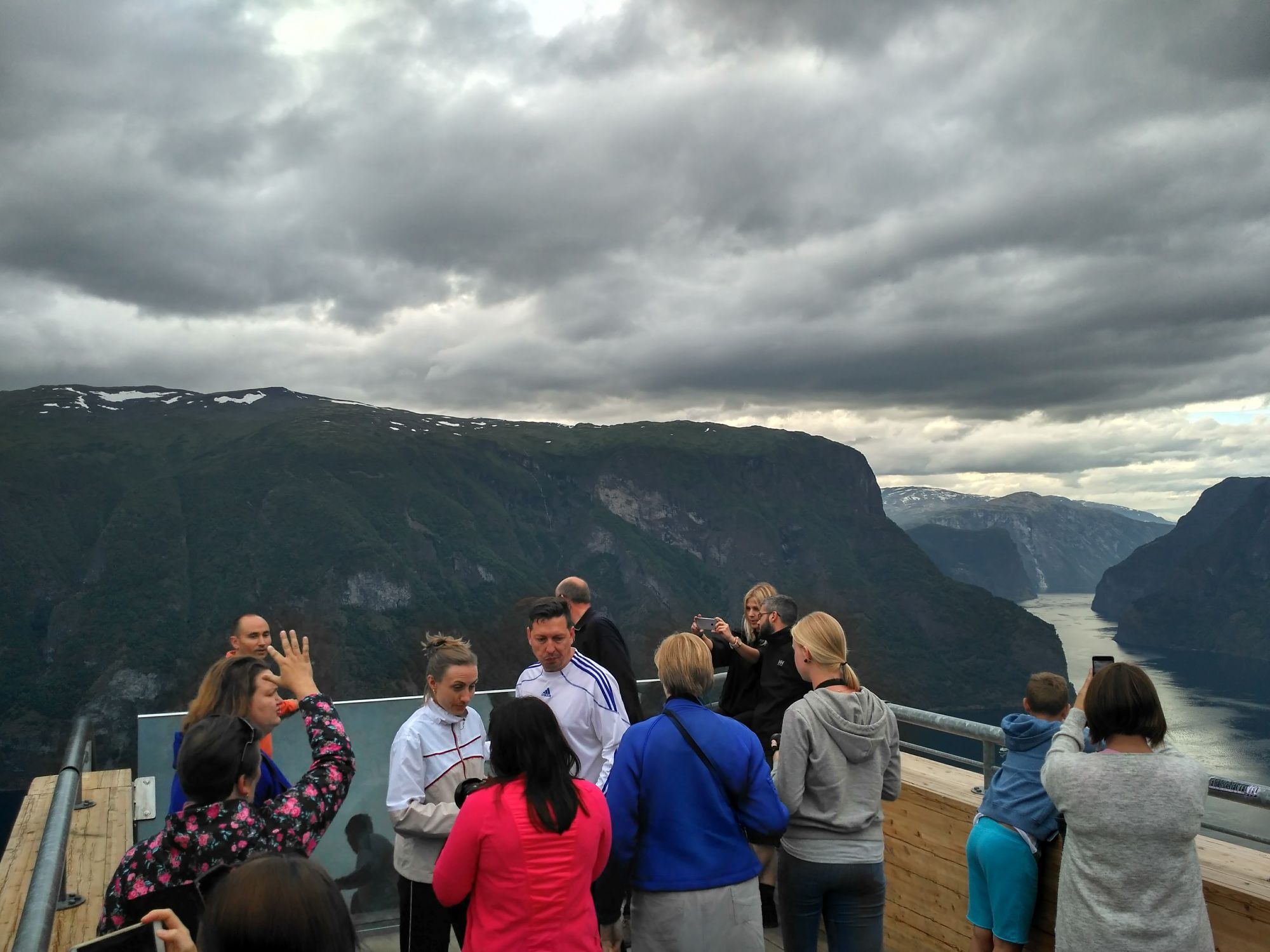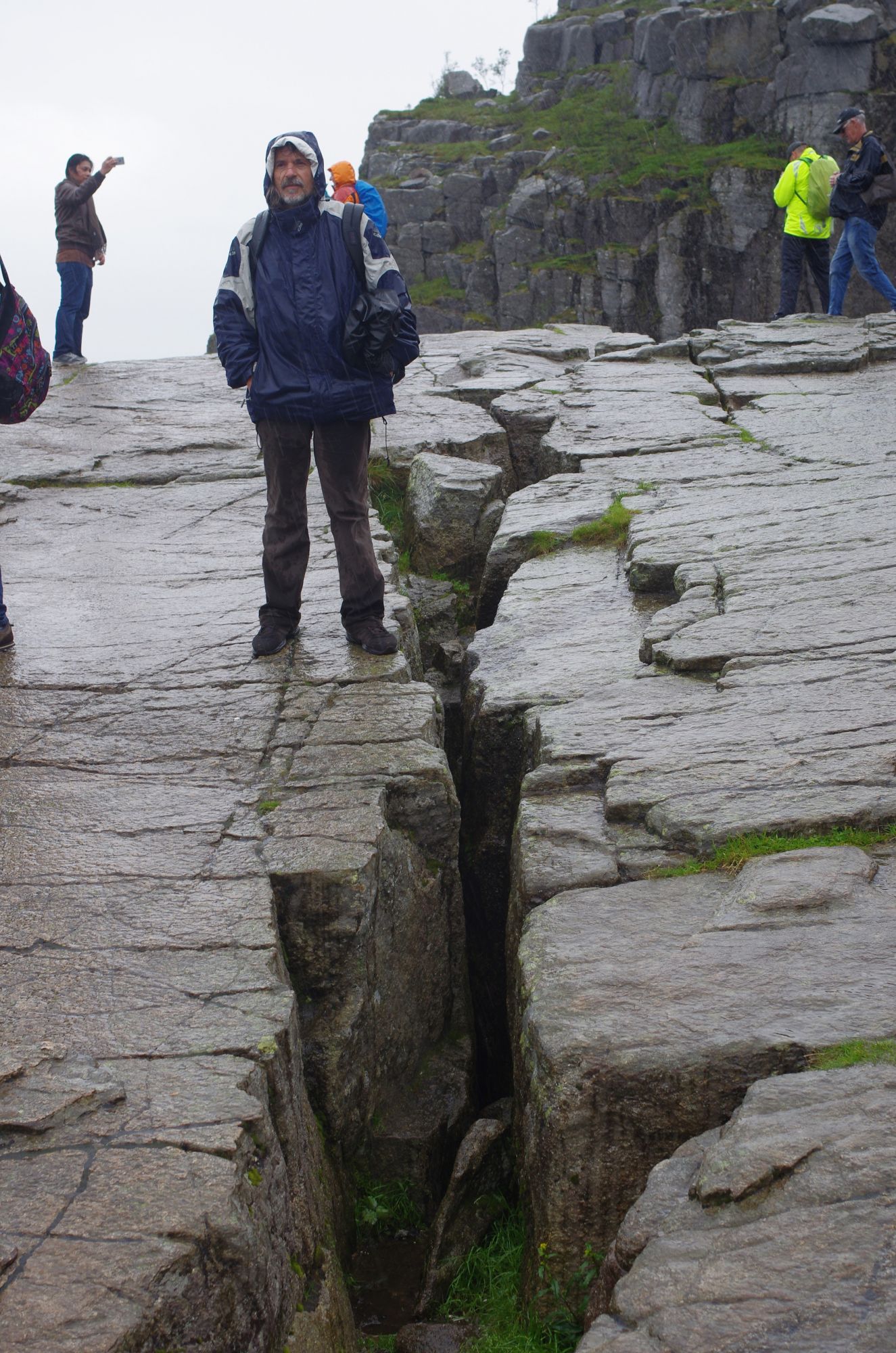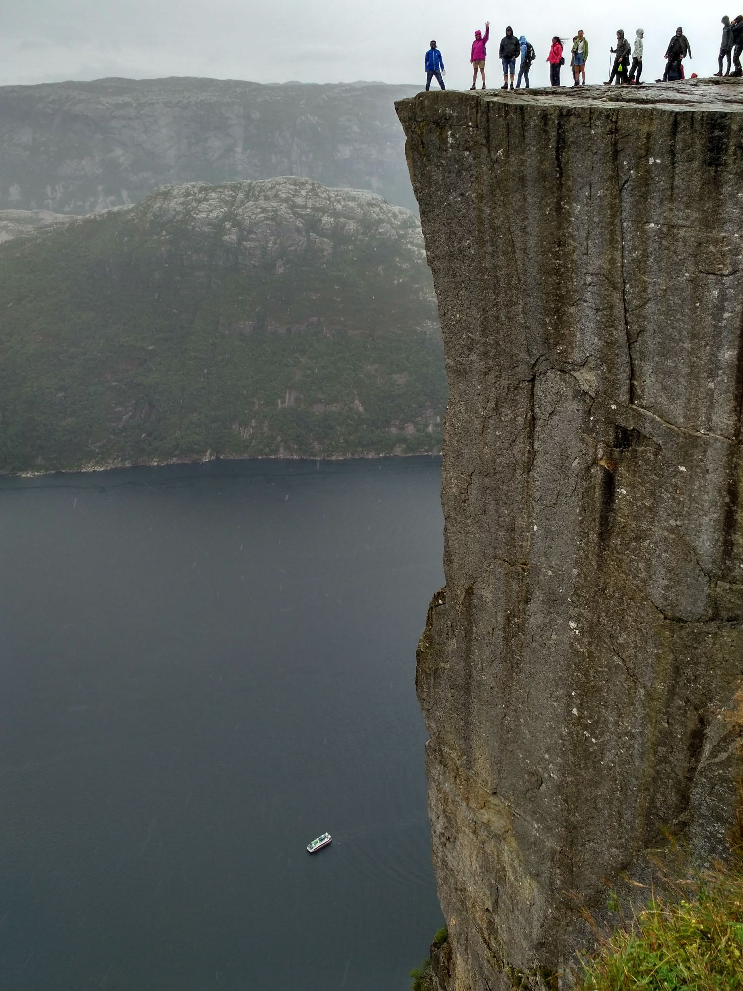 23 августа 2017 Ну и гвоздь программы на сегодня - одна из топовых достопримечательностей Норвегии - Прекестулен (или Кафедра проповедника или Пульпит Рок). Это плоский сверху кусок скалы, выступающий над Люси-фьордом и постепенно откалывающийся от своего основания (на фото будет видно трещину). Поток туристов туда просто нескончаемый. Ты постоянно идёшь в толпе народа. Мы шли под дождичком. Туда он накрапывал, а обратно уже хорошо и уверенно зарядил. И китайцы в мембранных куртках и с зонтиками - это капец, товарищи. Тычут ими тебе в глаза, зонты выворачивает ветром и ломает спицы, а они их потом тащут в таком виде. А ещё случился не приятный эпизод с немкой. Обычно на туристических тропах царит доброжелательность и взаимоуважение. Пропусти того, кто идёт быстрее, помоги, улыбнись, поздоровайся. А тут - она шла с палками и, когда ее кто-то догонял, расставляла их шире, чем надо. Тропа узкая, обогнать никак. Сначала я думала, что мне показалось, но потом это повторилось ещё несколько раз и не только со мной. Было дикое желание скинуть ее с тропы в озеро. Последний раз, обогнав ее, я даже выругалась. На самой площадке мы пофоткались и решили обратно идти другой дорогой. Там можно забраться на скалу повыше, посмотреть на Прекестулен сверху, а потом уйти дорожкой посложнее, которая вливается потом в ту, по которой мы пришли, примерно посередине пути. Вот там не было людей. Совсем. Свобода и офигевание от происходящего! Хотя, вру) Поднявшись чуть выше над Прекестуленом мы встретили немца, который пытался сделать сэлфи на большую зеркалку.) Я глазами спросила - Не нужна ли помощь, он очень обрадовался и Женька его запечатлел))) А тот долго улыбался, а потом спросил откуда мы и, узнав, что из России, вспоминал как поблагодарить на русском. Мы ему напомнили и он, улыбаясь почти без акцента сказал "спасибо"!))) Вот и показатель того, что люди везде есть разные - немка на тропе и немец наверху...) От высокой влажности у меня глюкнул телефон. Его пришлось потом перезагружать. Он там чего-то сам себе понастраивал, картинку новую на рабочий стол установил, скринов наделал. Поэтому рекомендую влагозащитные чехлы. В следующий раз хочу озаботиться этим вопросом. Хозяйка смешных зверей, apanjul, marvlase и 32 других сказали спасибо Поделиться сообщением Ссылка на сообщение