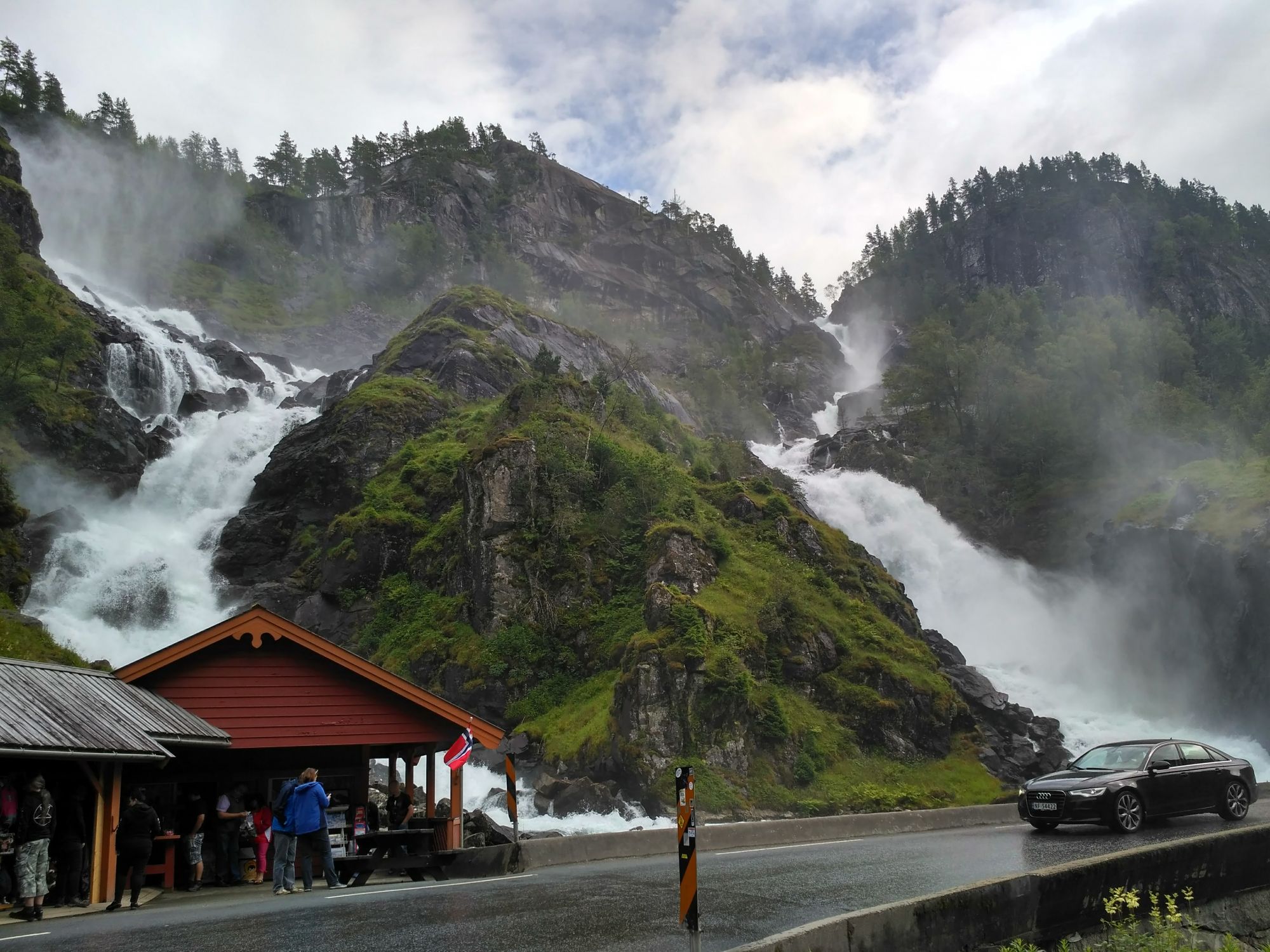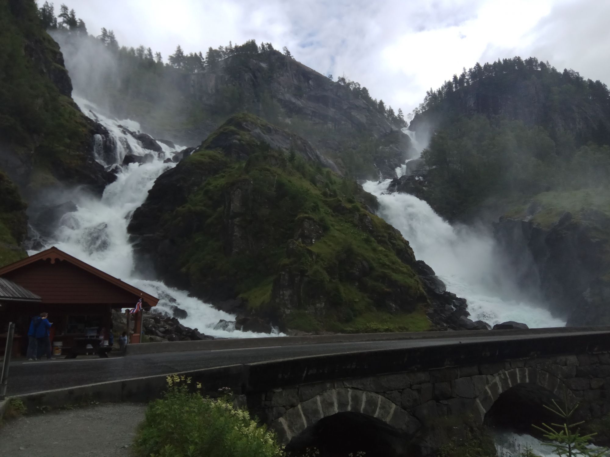 22 августа 2017 Водопад Латефоссен. На мой взгляд, он самый красивый и впечатляющий из тех, что я видела. Два огромных потока падают с высоты 165 метров и утекают под мост, превращаясь в бурную горную реку. А чуть дальше на противоположном берегу реки есть ещё один мощный водопад, который видно со смотровой. На смотровую полезли только мы с Женькой, остальные насладились видом снизу. оленек, VitaVivien, apanjul и 32 других сказали спасибо Поделиться сообщением Ссылка на сообщение