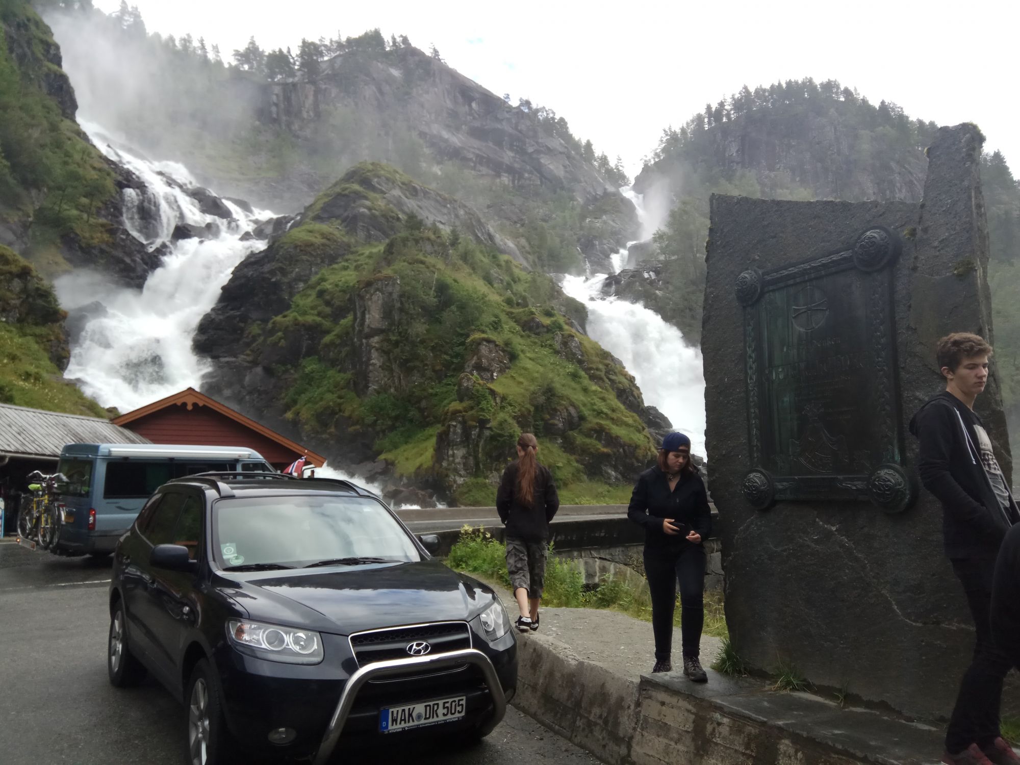 22 августа 2017 Вечером к нашим мужчинам подошёл знакомиться поляк. На очень хорошем русском языке рассказал, что учил его 50 лет назад в школе, что живёт в 5 км от Освенцима ("вы должны знать" сказал он), что приехал с другом из Германии, но тоже поляком. С утра поздоровался с нами. И прониклась я к нему, решила подарить магнитик из Балашихи (у нас с собой один был). Он так расчувствовался, когда я сказала, что это сувенир из России, и стал выяснять во сколько мы вечером приедем. Я сказала, что мы едем дальше и сюда уже не возвращаемся. Он расстроился, сказал, что хотел предложить нам "выпить водки с панями")))) Ушел расстроенный, но минут через 5 вернулся с бельгийской шоколадкой (вручил ее мне), бутылкой водки и стаканчиком. Пришлось мне составить ему компанию, т.к. остальные типа водители.))) Вот такое приятное знакомство))) А было бы интересно посидеть и пообщаться. Но надо покидать это чудесное место и ехать дальше Пока на заправке накачивали колеса, я сфоткала речку Кстати, про грязь. Не хотела про это писать, но раз про чистоту заговлрили... На фотке не видно, но вокруг было реально грязно. Я даже удивилась. Но не будем про это. Водопад Твиндефоссен. Поток распадается на кучу струй и сбегает фатой по горе. Когда мы были на этом водопаде, пошел грибной дождик, и, отъезжая от стоянки, я обернулась и увидела радугу в струях, но сфоткать не получилось, поэтому просто поверьте. А потом мы просто решили забить на долину водопадов, т.к. там и так был длинный трек, а сейчас стоянку ещё километра на полтора раньше сделали, и остановиться порыбачить. Заодно состряпался обед и мы чудесно отдохнули на берегу фьорда с вышивальные названием - Хардангер-фьорд))) Перед отъездом мы сходили на заправку "попудрить носик" и, возвращаясь, я увидела макет моста. Информацию по нему ещё не искала. А это просто съёмки из машины по пути до следующей точки. Обратите внимание на сады на склонах гор. Raduga777, Татуся, marvlase и 34 других сказали спасибо Поделиться сообщением Ссылка на сообщение