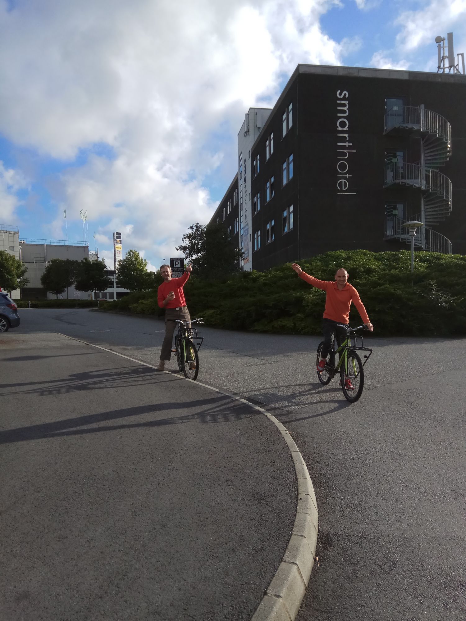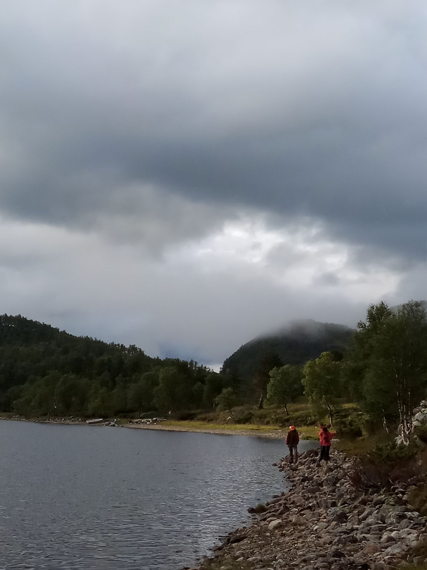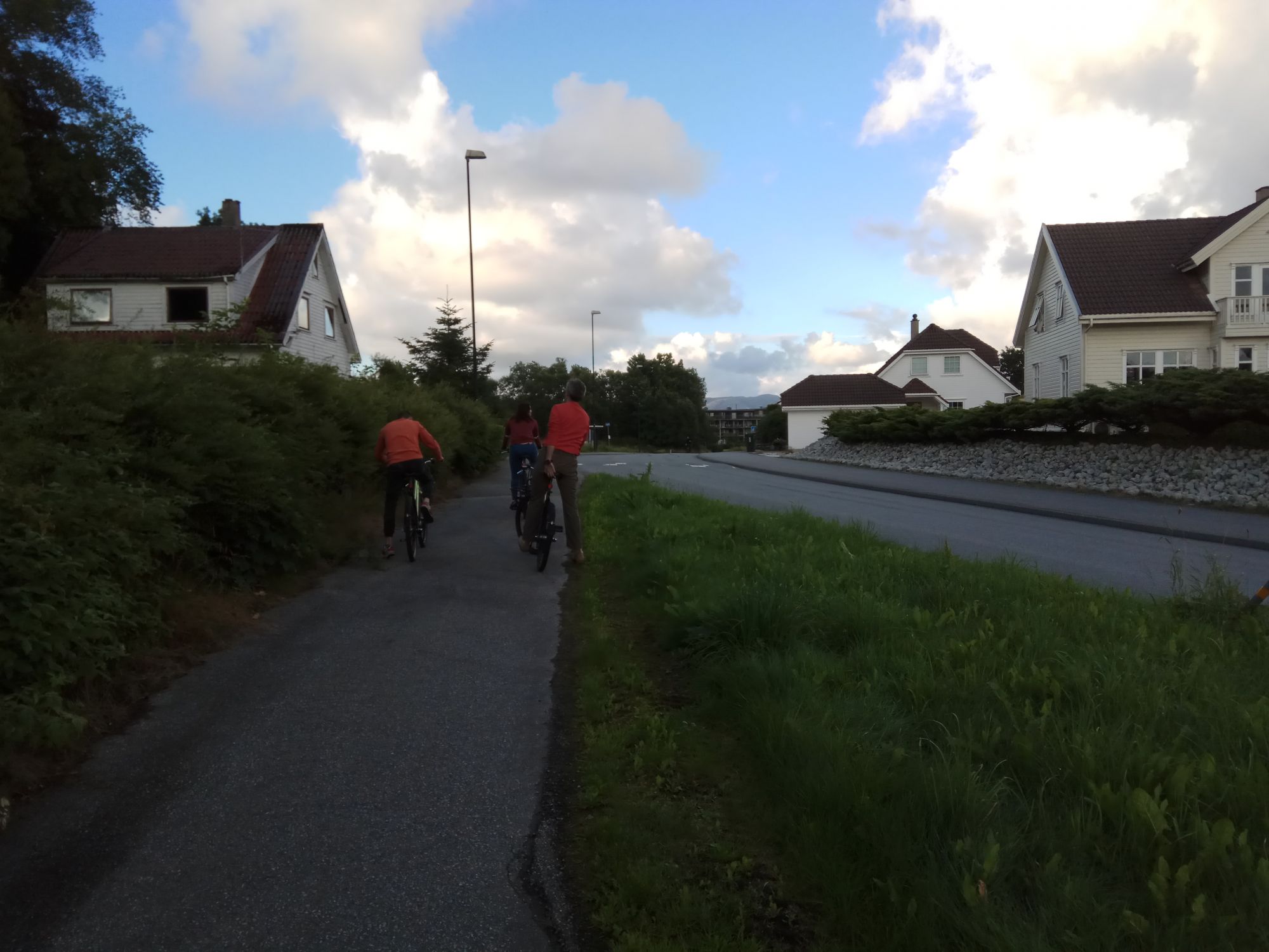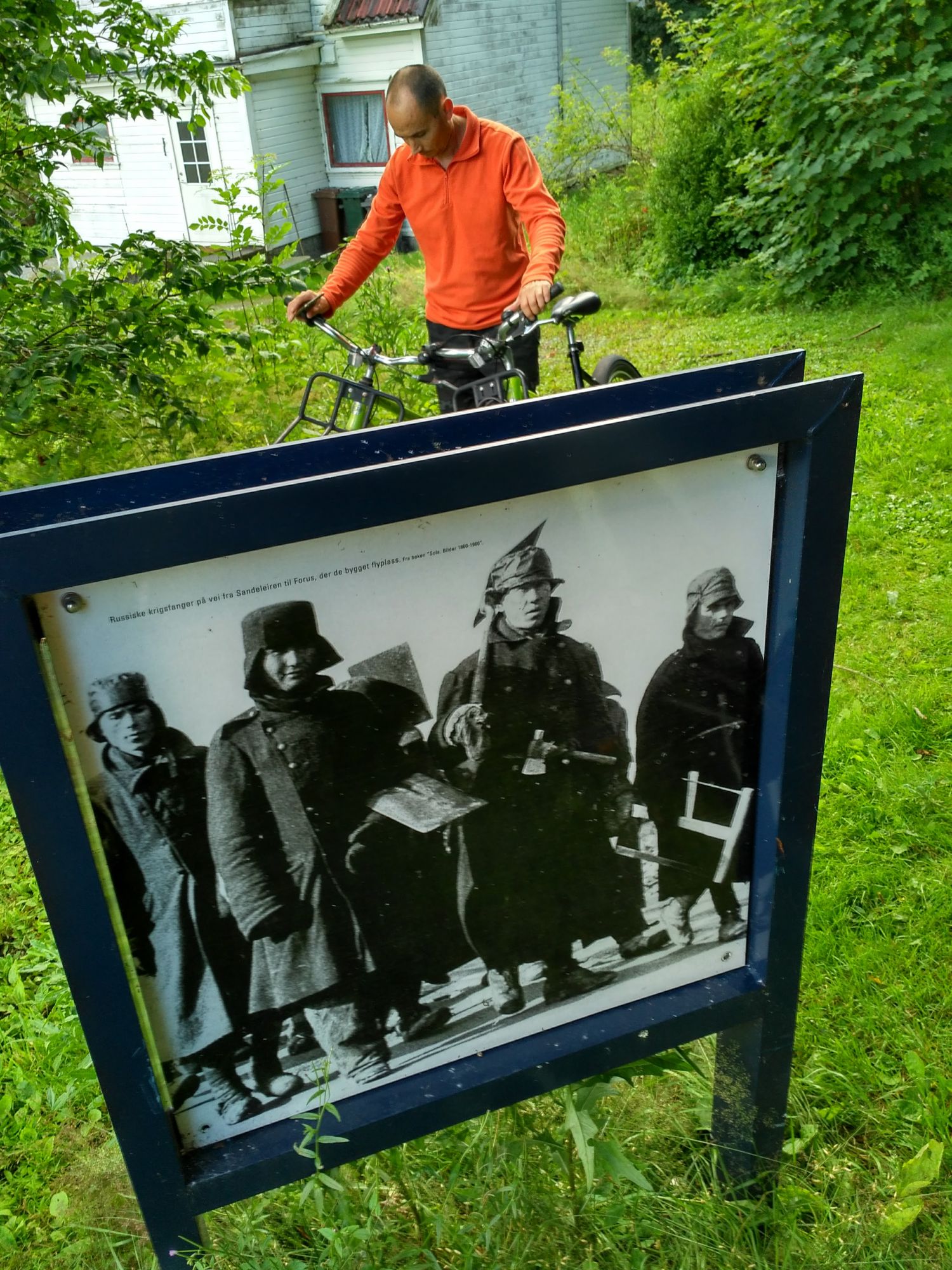 23 августа 2017 Тропа была интересной и в меру сложной - спуски чередовались с подъёмами, были и ровные поверхности и прыжки с камня на камень, чуток шли по равнине, если можно так сказать, чуток поднимались почти по отвесной скале по высоким каменным ступеням. Устали все группы мышц, даже те, про которые мы и не знали.))) И вымокли мы до нитки. Ночёвка в этот день предполагалась в приличном отеле в пригороде Ставангера. Там тебе и белоснежное постельное белье и душ с туалетом в номере и телевизор.))) Но телек нам был ни к чему, а вот веревку посреди номера мы натянули сразу и повесили сушить все, что у нас вымокло)))) А потом пошли искать еду. Мечталось о Макдональдсе. Мы даже вывеску его нашли. Но в торговом центре, где он расположен, уже все позакрывалось, кроме продуктового супермаркета. Лирическое отступление))) Трудоголизмом норвеги, как мы поняли, не страдают - везде строгие часы работы, закрывается всё рано, а в выходные - ещё раньше, а может и вообще не работать. Поэтому вопросы с продуктами надо решать своевременно. Общепит - кафе и рестораны - очень дорогие, поэтому еду желательно готовить самому и продуктов взять с собой по максимуму (обратив внимание на то, что ввозить можно, а что - нет. Мясо, например, нельзя ни в каком виде и картошку нельзя). Зато тут вкусная молочка (по приемлемым ценам), рыба стоит чуть дороже, чем у нас (но по мне - вкуснее), хлеб дорогой, но вкусный, можно найти что-то по акции (мы так на нектарины наткнулись по 10 крон - 75 рублей на наши деньги). К мясу не подступишься - цена от 2500 российских рублей. Перед поездкой можно посмотреть цены на сайтах их магазинов и прикинуть что взять с собой, а что - купить на месте. Конец лирического отступления. Макдональдс обнаружен не был, поэтому мы пошли в продуктовый магазин и решили купить чего-нибудь, что можно разогреть в микроволновке. Нашли большой лоток с куриными крыльями гриль рублей за 300 на наши. Были очень довольны!) Ещё взяли сыра и йогурт на утро. В гостинице оборудовано кафе, в котором ты можешь взять их завтрак или ужин, а можешь поесть свою еду. Чай, кофе, сок двух видов, молоко и печеньки можно было брать бесплатно и в неограниченных количествах. Крылья были разогреты в микроволновке и уничтожены вместе с дошираком и чашечкой кофе. А потом, наверное, нам стало скучно или мы поняли, что мы не устали. Никак иначе я не могу объяснить наш следующий поступок.)))) В отеле есть бесплатный прокат великов. А в 5 км от отеля есть мемориал памяти советских военнопленных, которые строили тут укрепления во время ВОВ. Мы взяли 4 велика и поехали.))) ...После Прекестулена (там 9,5 км пешочком и было, если что))))... Для велосипедистов там, конечно, лафа - дорожки, мосты аля автострады над проезжей частью. Но ножки начали понимать, что что-то с ними делают не то, хотя было уже поздняк метаться. Пришлось не ныть и ехать. Мемориал оказался табличкой. Вокруг подстриженый газон. Причем у нас создалось впечатление, что он стоит на частной территории. А потом мы посмотрели карту и поняли, что, проехав чуть дальше, можно посмотреть сами укрепления. Что мы и сделали. Расположена эта батарея была на высокой части местности, откуда всё отлично просматривается. Место у них пикниковое, т.к. много мангалов и кострищ. На обратном пути встретили чудо техники - газонокосилку-автомат. Она сама как пылесос ползала по газону, разворач