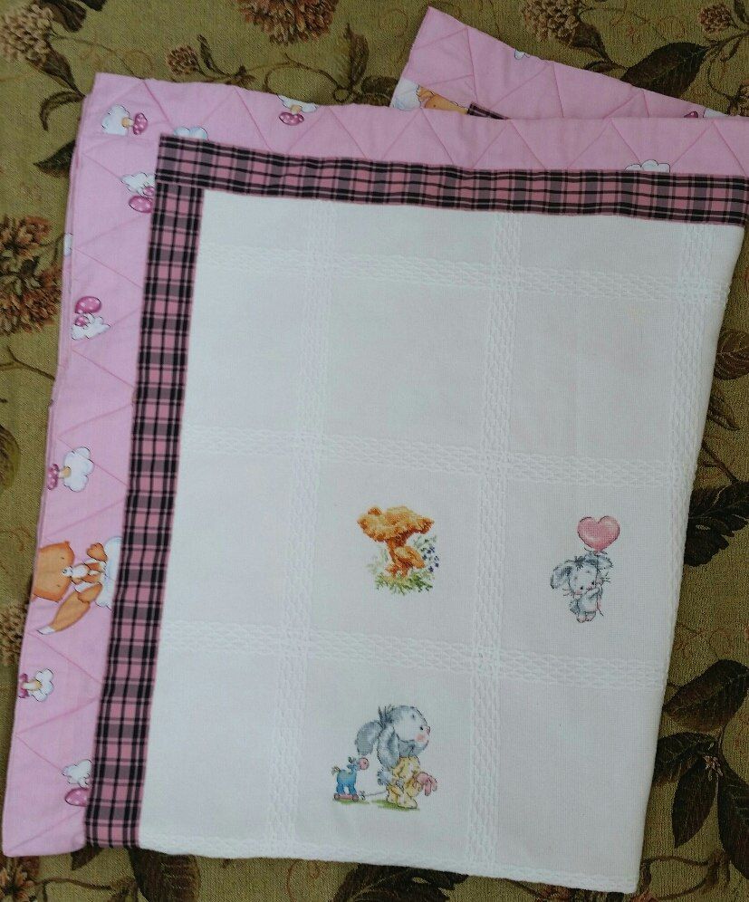 13 сентября 2017 22 часа назад, Путешественница сказал: У меня плед в итоге сшить по принципу пододеяльника чтоли... только с зашитым краем и простеганной рамкой, т.е. сзади там тоже ткань, как и на рамке спереди. Не знаю, понятно ли объяснила... Не, я не про вышитые квадратики, а уже про вышитую ткань...как она(вышивка или полотно с вышитыми сюжетиками) нашивалась на основную ткань? Как я поняла, она внутри у тебя полая, и на вышитое полотно по краю пришивались небольшие полоски материала, а потом все пришивалось к большому полотну? Так? Поделиться сообщением Ссылка на сообщение