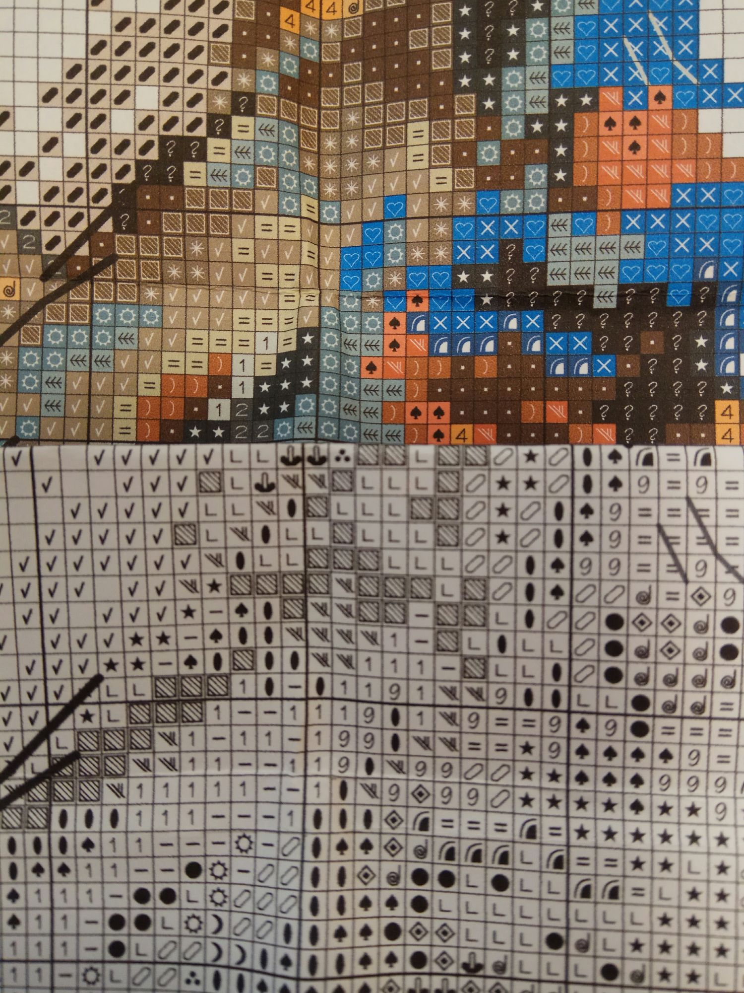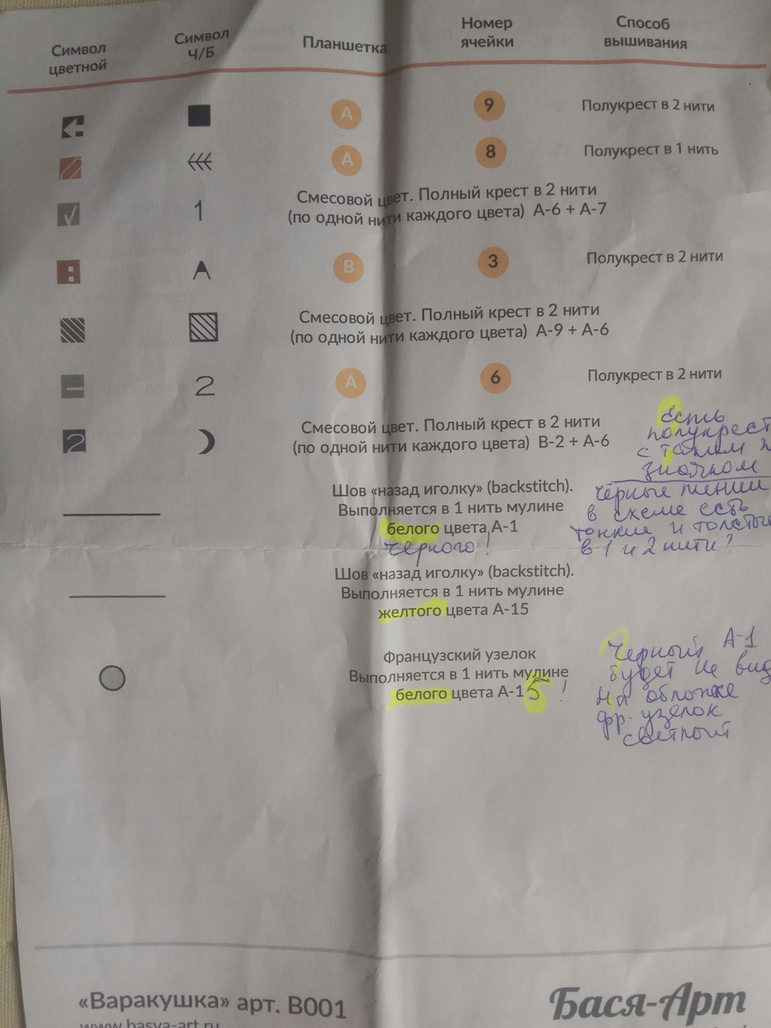 7 октября 2018 Благодаря выходным, которые проходят в тюленем режиме, я довышивала Варакушку. Скажу сразу, что мне безумно нравится то, что получилось. И процесс вышивки тоже понравился. Канва, нитки и схема без одиночек, не смотря на довольно большое количество цветов - это плюс. Но! У меня ощущение, что схемы делал человек, который только начал свою карьеру дизайнера, а никак не Сотникова... Про часть минусов я писала раньше, теперь про остальные косяки. В схеме есть 2 четверть-крестика. Не оправданы вообще ничем. Ощущение, что недочистили. Бэк перекрывает значки. Плюс - схема и цветная и чб, но значки для цветов используются разные - привязаться к схеме мне было проблемно. Да и черный бэк на цветной схеме по черным значкам - то ещё удовольствие - видно его только при дневном свете. Вообще, в ключе указано 2 цвета бэка, но на схеме разных линий явно 3. Один цвет светлее - он вышивается А-15 (это не жёлтый цвет, а бежево-голубоватый какой-то)))), а два других цвета - черные тонкие и толстые линии. Судя по обложке, это черный бэк в 1 и 2 нити. В схеме номер на плашке написан правильно, но написано, что это белый цвет. Фрузелок на всю схему один. Но по ключу он типа черным цветом вышивается, а по обложке и по логике - А-15. И ещё - по обложке птичка шьётся крестом, а фон - полукрестом. В ключе два цвета для полукреста (чёрное сердечко и три вертикальные линии) указаны как полный крест. И один символ использован и для креста и для полукреста (черный полумесяц). Буду писать производителю и пойду открою отдельную тему в Производителях. Вдруг кому пригодится эта информация. ПыСы Синичку на веточке всё равно куплю!))) Она классная! OlkaY, I_Konst, Пикусёнок и 37 других сказали спасибо Поделиться сообщением Ссылка на сообщение