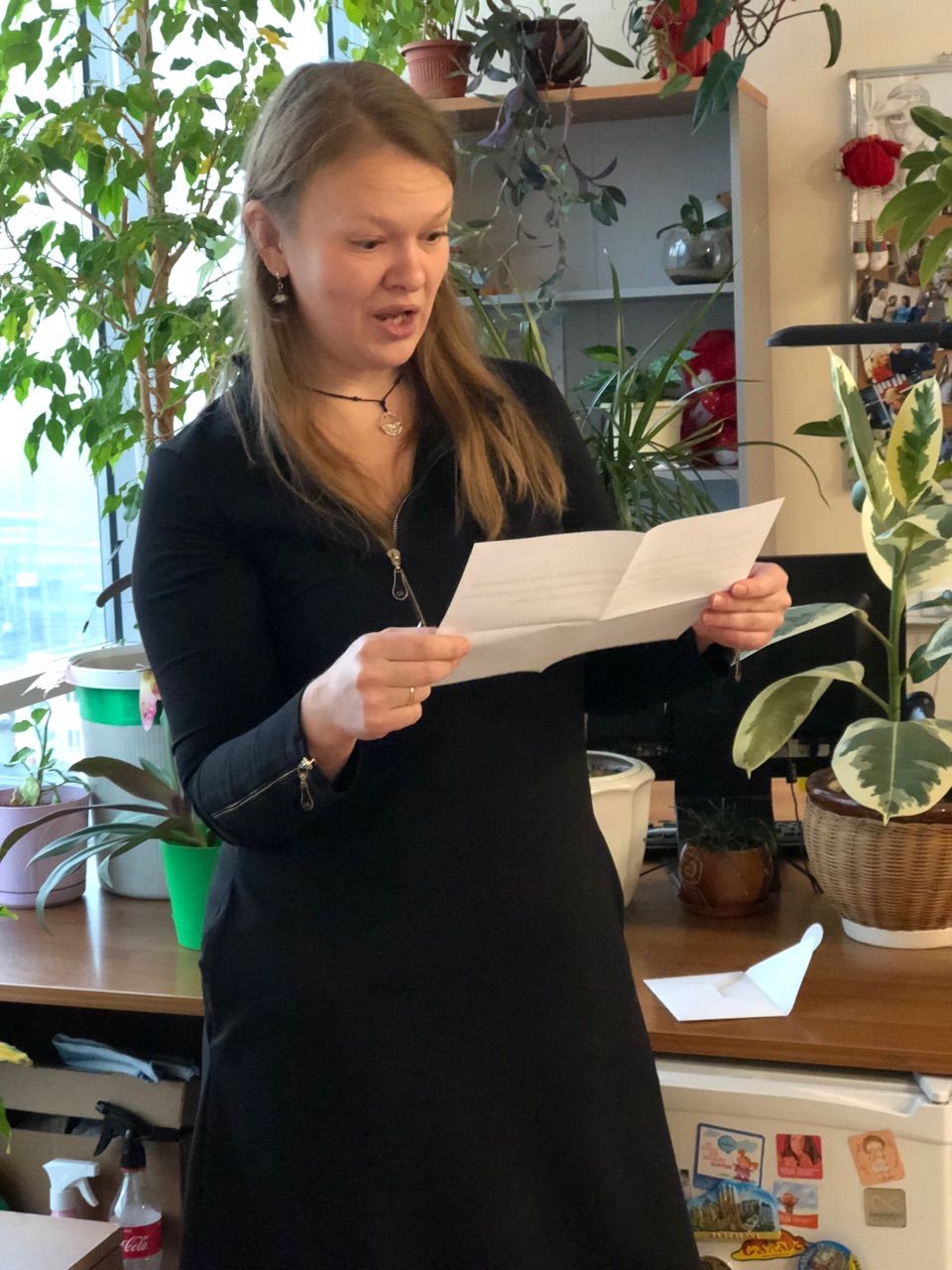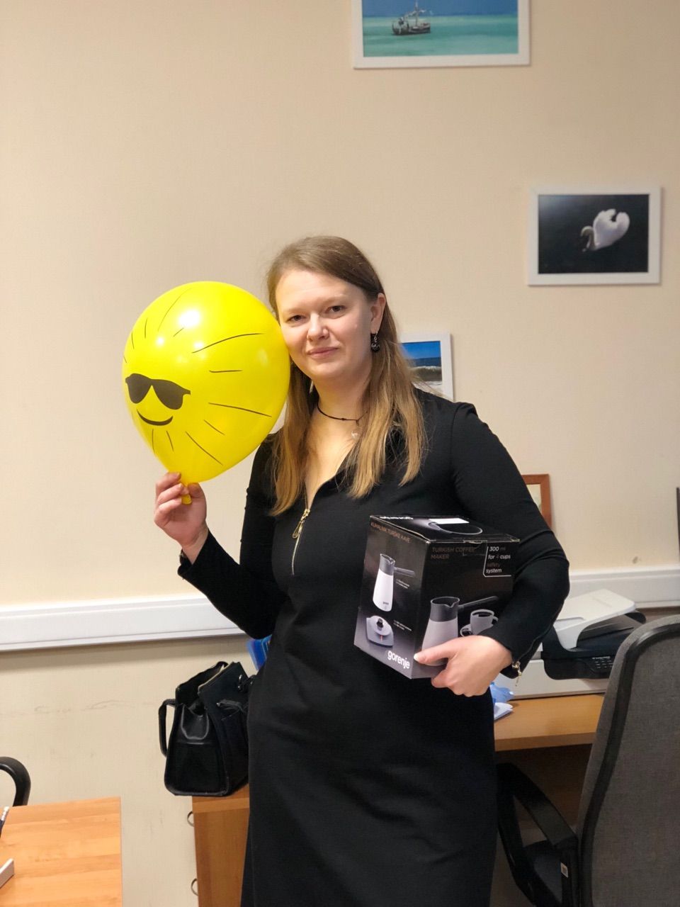 10 ноября 2018 Девочки, спасибо огромное всем за поздравления! За все те теплые слова и открытки, что вы мне прислали. Всех перечислять не буду, потому что вчера поздравления сыпались на меня отовсюду весь день - телефон, форум, соцсети и т.д. :)Я очень рада, что вокруг такое огромное количество хороших людей, со многими из которых я имею честь быть лично знакома!) А это вам вчерашняя Москва из окна машины и я) Хочу похвастать поздравлениями коллег (я в ВК вчера показала, но не все там есть))). Это украшение моего рабочего места))) Я давно смотрела на шарики-смайлики с разными эмоциями, а коллеги воплотили это в жизнь) а этим шариком я уже всем похвастала. Мой любимый) Ну а дальше был квест))) На экране компа висел плакат с тортиком, который призывал выглянуть в окошко.))) Дыхнув свежего воздуха, я отклеила от окошка конвертик с заданием и с первой частью паззла. Долго пыталась понять где на карте России, которая висит на стене рядом с окошком и на которой я отмечаю ниточками наши путешествия, найти дома и мосты Питерские, но заботливые коллеги развернули меня к нужной стене с открытками из разных мест, которые я вешаю на магнитную доску. Там под открыткой с видом крылатых питерских львов я нашла следующий шаг + паззл. Но вот километры с берегом поставили меня в тупик)))) Оказалось, что км - это номер соседнего кабинета )))) Там за фото с берегом моря я нашла строки песни, которые послали меня... на Пальма-де-Майорка)))) Тут в хорошо озелененном кабинете было необходимо найти нужную пальму.))) И вот ещё один заветный конверт и паззл у меня!) Следующий шаг предлагалось отобрать у кенгуру!!! Их оказалось два, но я не струсила!))) Долго искали границу Турции и Египта, о которых сообщения милые зверюшки, но и эту таинственную щель я нашла!!!)))) Сегодня возможно всё, поэтому у Турции с Египтом есть граница!) И в ней лежал последний кусочек паззла!!! А на собранной картинке оказалась электрическая турка! Которую мне торжественно и вручили))) Я такую очень хотела ибо кофе лублу)))) Теперь буду себе варить))) По пути подцепила брутального мужчину в черных очках и с модной небритостью)))) Сказали, что он - солнышко)))) Была куча подарков и цветов А вечером на общем поздравлении мне зачитали "Сказ", который написан специально для меня. И это очень трогает за душу. Писал коллега - парень 23 лет. Раньше он занимался сплавами и тоже много где был, поэтому и тем для разговора у нас всегда много.) Вот такой праздник на работе получился. А коллеги вышивальщицы тоже радуют. От @Наталья2013 мне прилетел наборчик с Кусково. Спасибо огромное ещё раз, Наташ! Все уже знают про магию форума, и вот ещё одно тому подтверждение. Я смотрела на Триптих Кусково на стенде Риолиса в этом году на фр. Смотрела и думала - триптих мне повесить некуда. Большая картинка рискует превратиться в долгострой. А вот между Голландским домиком и Беседкой и однозначно за Беседку. Но вот время... отсутствие лишних рук и присутствие долгостроем и закромов заставило уйти от стенда. Но космос куда-то отправил запрос. В этот раз сигнал поймала Наташа.))) В посылке лежала ещё открытка со словами, которые расстрогали почти до слез и две шоколадки, но они до фотосессии не дожили, т.к. были отданы нашей студентке в Питере, которую мы навещали в те длинные выходные, поэтому на фото их нет. А ещё группа товарищей по предварительному сговору, осчастл