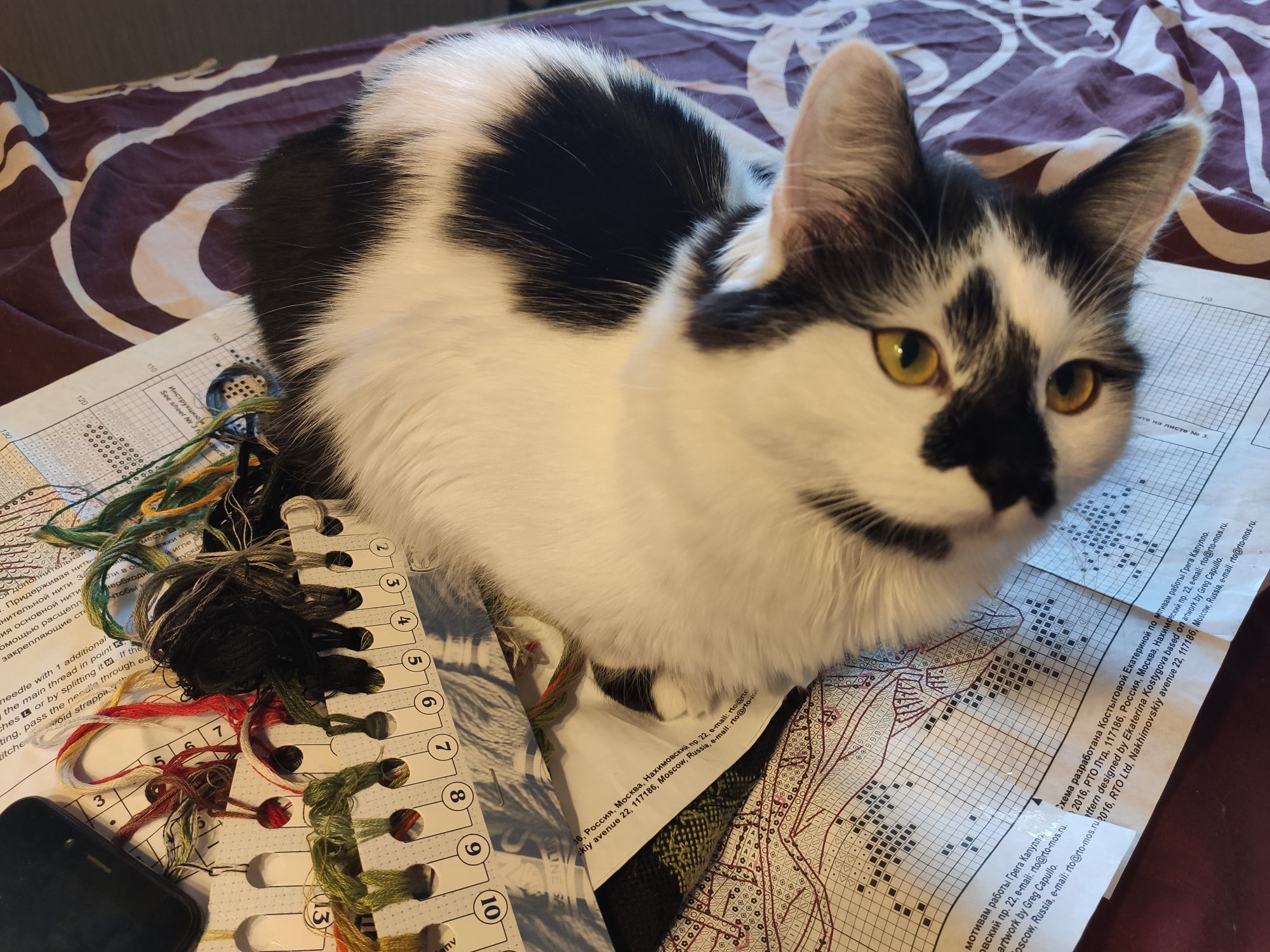 21 февраля 2020 Ну и вышивального реально чуток. Закончила подсолнухи и думаю - чего бы пошить? Чего бы пошить? И прягули мне в руки ботинки. Я их отбэкала на той части, что в пяльцах, и дошила фон снизу. А потом... ну знаете, как бывает - полезешь в ящик комода, где наборы лежат, чтоб убрать туда чего-то, а взгляд такой - "Хоп, а что это у нас тут??? Блииин хочу вышивать именно ЭТО!" И ножкой ещё топнет! В общем, достала я набор, который подарила мне @Лена1973 в далёком 2012 году (Лен, спасибище тебе за него огромное!), когда мы заезжали в Воронеж перед экспедицией Средний Дон. Вот мое сообщение об этом - https://forum.stitch.su/topic/1237/?do=findComment&comment=277765 И набор этот - Панна Белая сова (Ж-359). Я много раз его брала, открывала, трогала ниточки, но что-то меня от него отвлекало и я его откладывала. А сейчас меня прям прёт! Я беру и шью с упоением! Получается очень красиво и реалистично, хотя цветов ниток всего 7 и 5 блэндов. Бэка нет. Впереди меня ждёт мноооого стволов черным по черному. Над головой маленький кусочек уже вышит. Ну и Сеня. Он, в отличии от Фаечки, любит или под схему бумажную залезть или даже в нее, если она сложена. И кайфует - фиг выгонишь) Ну и похвастаюсь обновками, которыми обзавелась благодаря Оле @OlkaY. Она и дописала меня ткани заказать и купила мне на ФР два наборчика от Волшебной страны на попробовать. А вот в таком изумительном пакете была бонусная схема от Тётушки Совы. Не совсем моё. Если кто хочет, то могу поделиться. Она в виде буклета напечатана. На этом на сегодня всё. Пошла совой насладЮсь))) ЛАДОМИРА, apanjul, PrimaN и 38 других сказали спасибо Поделиться сообщением Ссылка на сообщение