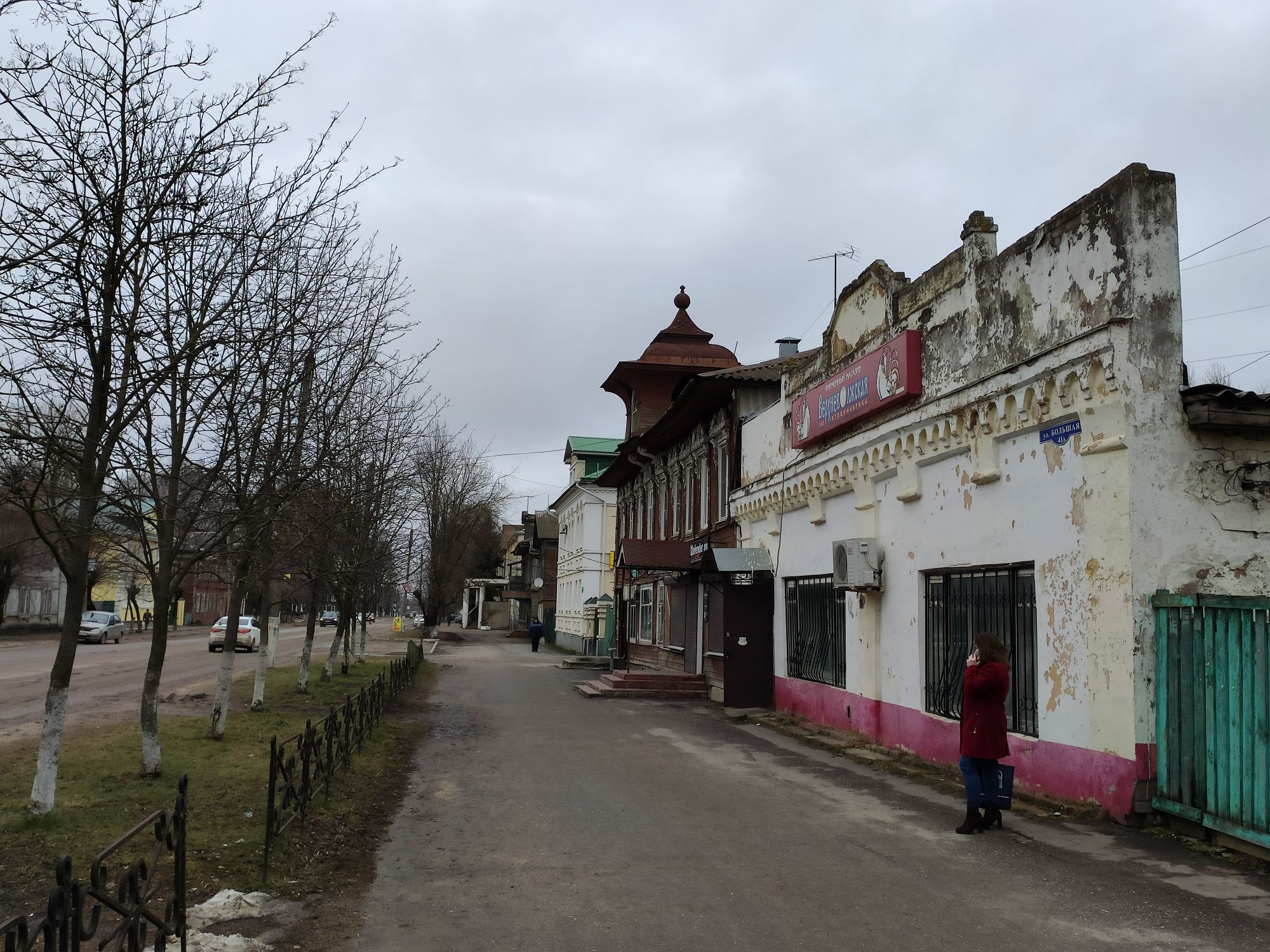 10 марта 2020 Итак, последний день нашего путешествия. Город Бежецк. Хотела написать про него сразу, как приехали. Долго перебирала фото, рассматривала их, и поняла, что очень тяжело показать моими фотографиями офигенский город. Но он по впечатлениям остался внутри именно таким. Да, домики старые и облупившиеся, но как много их сохранилось. Да, музеи почти все закрыты "на реставрацию", но мы отлично прогулялись просто так. Не знаю почему, но город произвел впечатление очень живого. Ладно, каждый составит свое мнение, а я поделюсь ощущениями и фото. Т.к. ночевали мы в хостеле, то с утра встал вопрос завтрака. Женька сказал, что почти за углом есть кафе. Ну ок, пошли. Кафе закрыто. Напротив него арт-кафе "ГумиЛев". А надо сказать, что тут места, где часто бывали Ахматова, Николай Гумилев и их сын Лев Гумилев, поэтому название кафе не выглядит странным. Арт-кафе обещает открыться в 10:00. Вместо того, чтоб 10 минут стоять под дверью, решаем пройтись и посмотреть церковь и старинное кладбище при ней. По пути встречаем кучу красивых домиков (фото больше, я долго выбирала что именно показать)))) - обратите внимание на деревянный Руст под кирпич. Это было модно, т.к. каменные/кирпичные дома были очень дороги, а выпендриться хотелось и делали "под камень". К церкви сначала пытались пройти другой дорогой. А там пром зона и всякие стройрынки. Можно было флюгер купить))) Но наконец дошли) Рядом с церковью действительно оказались две старые часовни и много старинных памятниках на могилах. Мы далеко не ходили, только вокруг церкви обошли. А потом пошли в сторону кафе другой дорогой. Решили сократить. За забором монастырь. Рядом сквер и современные частные дома. Часть дороги тротуара отсыпана гравием и огорожена, чтоб никто не ходил. И всем приходится идти через сквер. А там почти как перед Парижем из прошлого сообщения)))) А самое смешное было, когда я прошла сквер и увидела адрес простенького домика, который стоит фасадом на сквер. Не хухры-мухры, а Красная площадь! Во как!) Кафе ГумиЛев поражало клиентоориентированностью. Работает там молодежь. Официанты - молодые люди лет по 19-21. Вот мои зарисовки оттуда (скопирую из вк из чатика с друзьями))) Ольга Алпатова, вчера в 11:07 Кафе ГумиЛев. Вчера тут была гулянка. Кафе на вид цивильное. Витрина с едой. Там только очень сытное второе - шашлык, плов и т.д. И молодой человек в бабочке! Спрашиваем - а завтраки есть? Он удивлённо - комплексные? Я - ну можно нет - каша например... Он - к сожалению - нет. Я - а где можно позавтракать у вас в городе. И тут я прям была восхищена клиентоориентированностью!!! Он - Я сейчас уточню кое-что, подождите. Отходит на полминуты, возвращается. - А яичница вас устроит? Мы - Да, конечно. И дальше - А вам из скольки яиц? А может быть вы хотите с колбасой или ветчиной? Ок, из 3-х яиц с ветчиной. Женька - А кофе есть? Не растворимый? - Конечно! У нас зерновой. - говорит другой молодой человек. Дальше нам предложили меню, чтоб мы выбрали салаты и тортики))))) Ольга Алпатова, вчера в 11:10 В общем, я в восторге. И кофе прям божественный! После яичницы закажу ещё чашечку. )))) В общем, ребята - Молодцы! И вообще, у них и магазине сувениров мальчик очень позитивный работает. А вот тётенька у них суровы и закостенелы - отель и Париж тому пример. После еды мы стали совсем добрыми. И пошли дальше гулять. - много вот таких красивых крылечек. - памятник Шишко