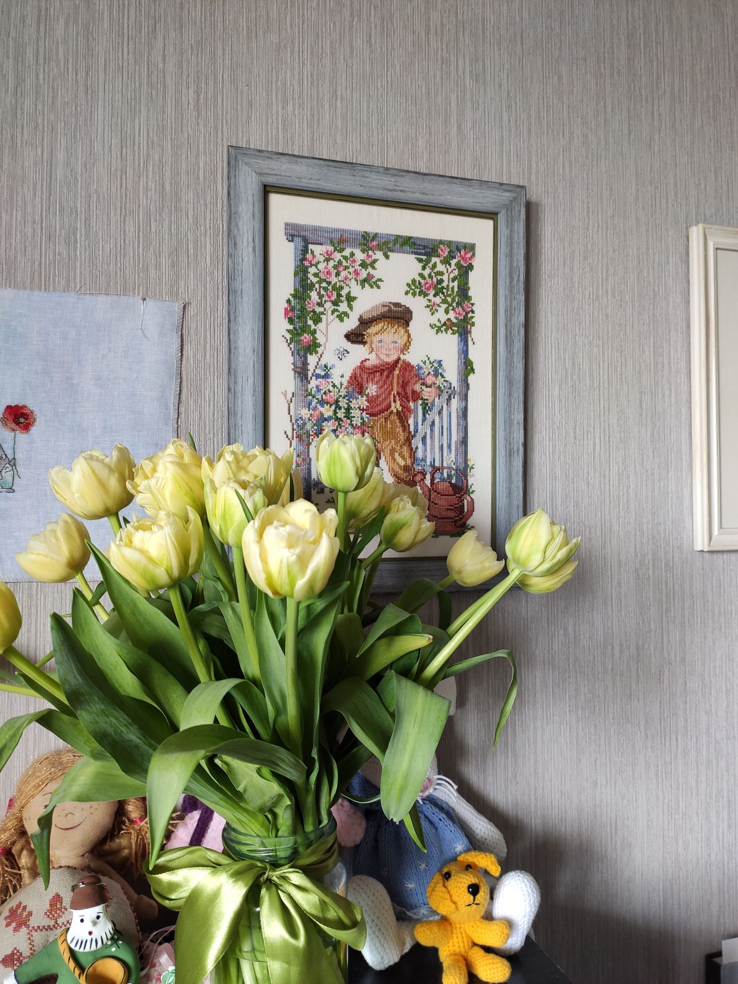 3 мая 2020 Я пришла, немного вышивки и много весны принесла. В руки настойчиво просился Шуан. Прям шепчет - дошей меня... Дошить не дошила, но отшит приличный кусок. И я кайфую от феерии цвета. Фрузелки вот только в этот раз кривоваты. Странно. Но переделывать точно не буду. Этот процесс вообще воплощением моего пофигизма оказался. Когда я его начинала, я верхний стежок у крестика вышивала /, а сейчас взяла и на автомате пошла шпарить \. Заметила, отшив большой кусок. Махнула рукой и шью дальше как удобно. Ну и покажу ещё один процесс. NewLeafCraft "Пушистые сны". На него меня подбила @Каори . Вернее как подбила... Пришла и спросила - тебе же этот заяц нравился? И вот я с зайцем. И с совместником)))) Ася его уже показала, теперь моя очередь. Шью медленно, хотя он маленький совсем. С вышивкой пока всё. Дальше всё не в гайки. Поняли с мужем, что дома сидеть невыносимо. Продолжаем ходить в лес гулять. И там весна! Бродим вокруг нашего Мазуринского озера. Народу много, но больших компаний нет. Чаще гуляют семьями. Много велосипедистов - у нас там миллион тропинок. - кислицы на фото много. Она весь лес устилает густым зелено-белым ковром. - кто внимательно следит за Асиными вышивками, узнает лишайник с одной из них. Летом у него на краешках красные полоски. - а в этот день рядом с Луной была видна яркая Венера. - на клумбах вовсю цветут тюльпаны, нарциссы, примула и много других цветов. - вишня тоже цветет. А какой рядом с деревом запах!!! Невероятно. Я минут 5 рядом стояла. - вот-вот зацветёт черёмуха. - вот вроде просто крапива, но, когда сквозь нее светит солнце, то просто замираешь от восторга! - мои любимые лесные фиалки, но всего два кустика нашли рядышком. - какой фиолетовый у него на брюшке!!! Ну и совершенно неожиданная встреча - лось! От дома метров 800-900. Стоял и пил из лужи. А потом на своих тонких ногах убежал в лес. - ещё одна неожиданная встреча - уж. Потом мы ещё одного видели. Они так здорово плавают! - на этой фотке другой, но было темновато и качество не очень. - начали вылезать острые пики ландышей. А сегодня была гроза. Настоящая майская. И небо после грозы было великолепно! Всю дорогу им любовались. И отдельно хочу показать не природу, а граффити. В лесу на остатках всяких строений кто-то рисует. И очень талантливо, на мой взгляд. И каллиграфическая надпись повеселила. Вот в той будке, на которой первое граффити нарисовано, висит листик. Ну и ещё из новостей - 29 апреля у Димки был день варенья. Он мне заказал доставку тюльпанов. Они были закрытые и зелененькие. А потом открылись и стали желтыми и махровыми! И букет прекрасен. Любуюсь. Простите за многофото. Всем здоровья и весны! Гало4ка, Океан, Кисуля и 51 других сказали спасибо Поделиться сообщением Ссылка на сообщение