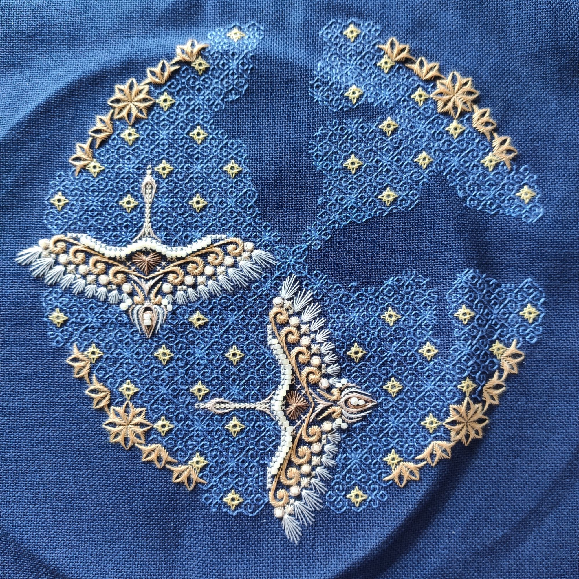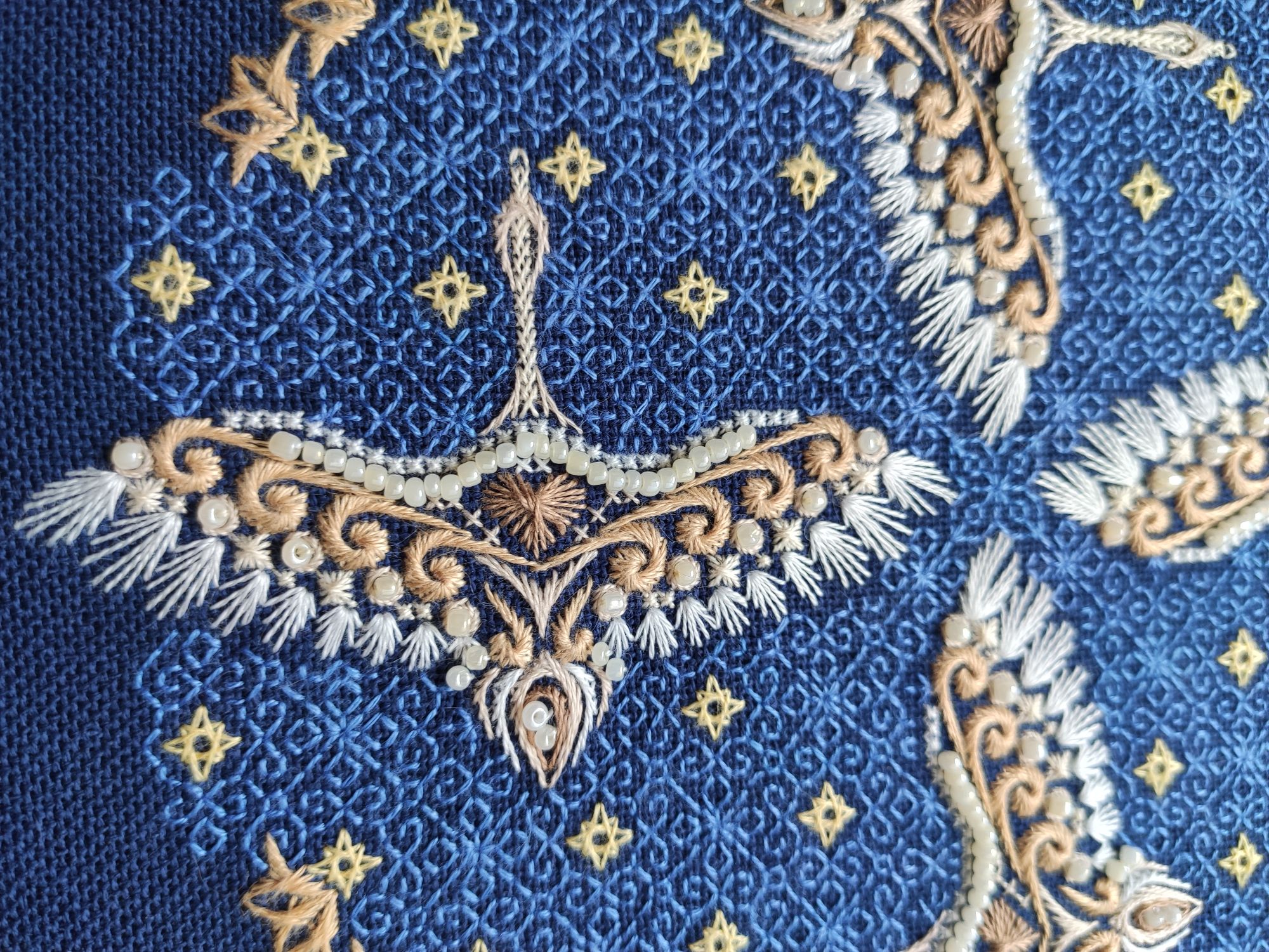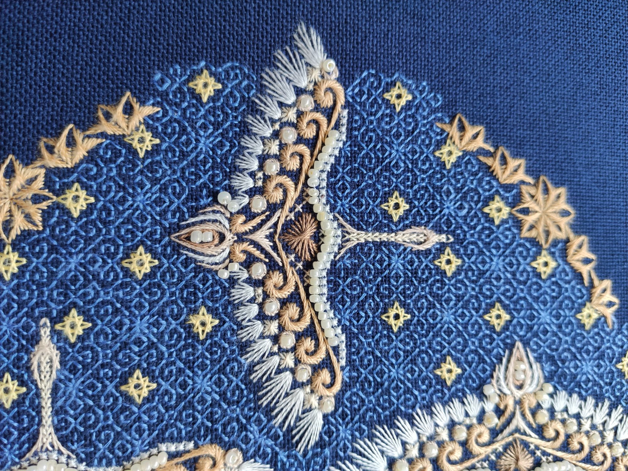 24 мая 2020 4 минуты назад, Хельга сказал(а): Оля, журавли прекрасны! Тоже посматривала на эту схему, но нет... Особенно после того как разглядела, сколько там всего между журавлями вышивать... Ты не убилась с этим фоном? Оль, я ж бэкоманьяк. И блэкворк тоже обожаю. На самом деле - берешь ниточку и просто рисуешь этот геометрический повторяющийся узор. В схему я смотрела только когда "дырки" под журавлей вышивала. Звёздочки, кружочки и другие закорючки надо понять - там просто счёт ниточек. Звёздочки я с третьей уже без схемы делала. PrimaN, apanjul, ОльгаТольна и 7 других сказали спасибо Поделиться сообщением Ссылка на сообщение