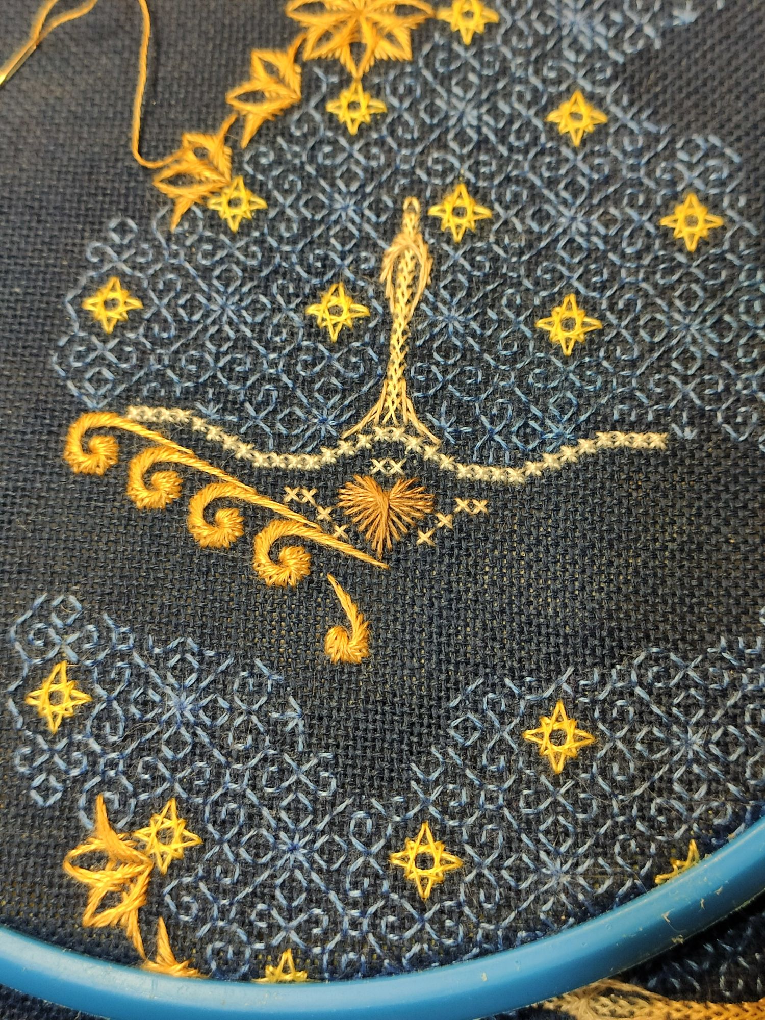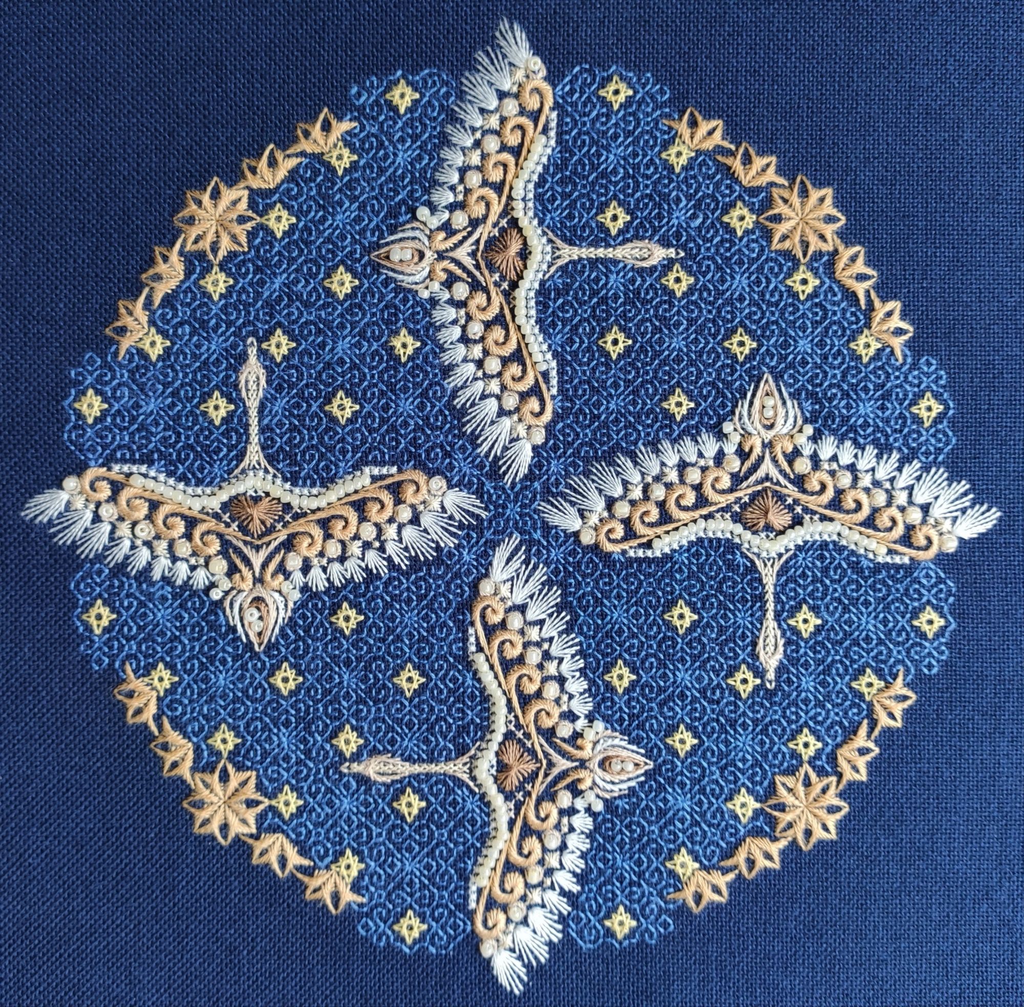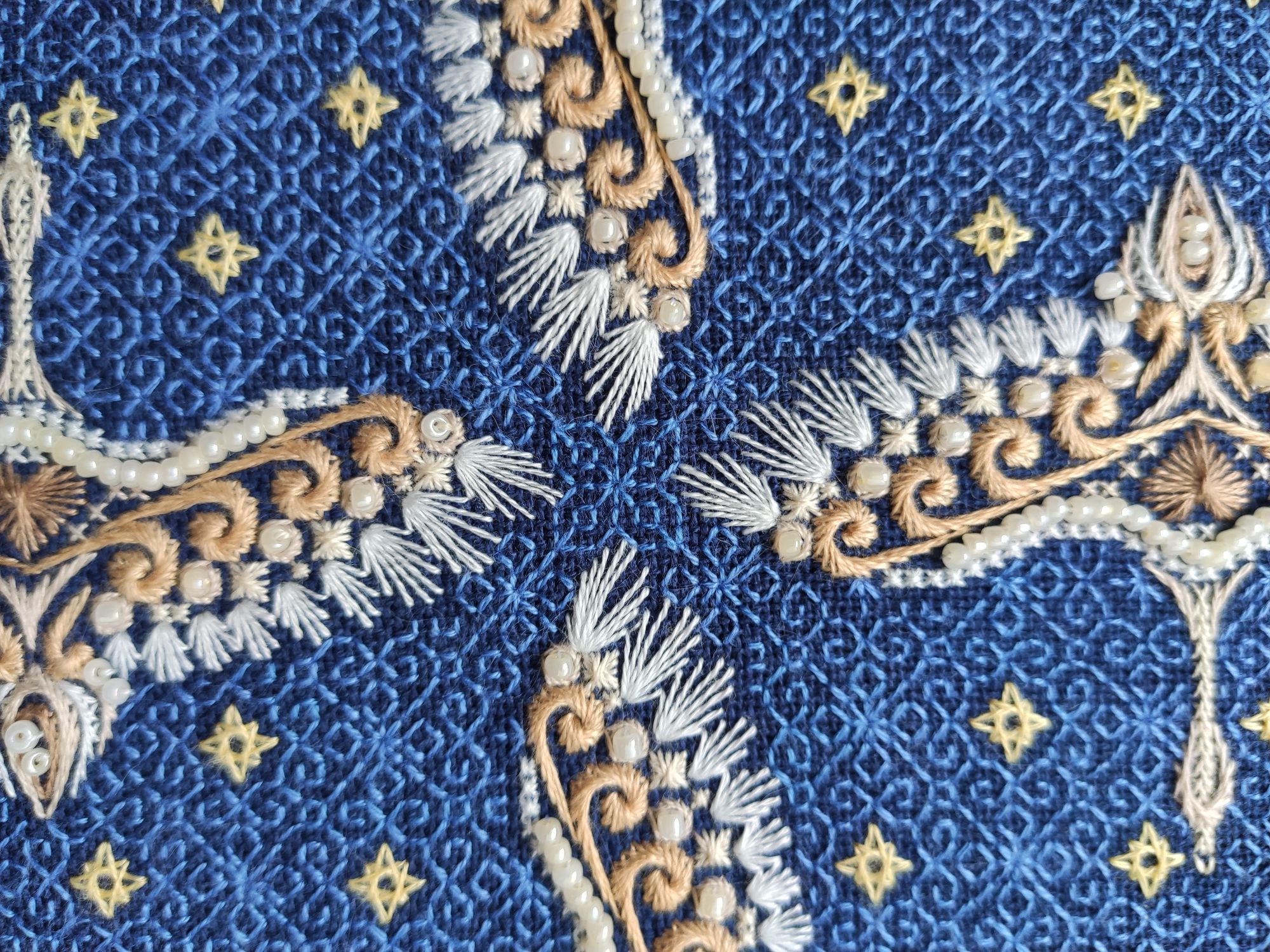 24 мая 2020 4 минуты назад, Хельга сказал(а): Оля, журавли прекрасны! Тоже посматривала на эту схему, но нет... Особенно после того как разглядела, сколько там всего между журавлями вышивать... Ты не убилась с этим фоном? Оль, я ж бэкоманьяк. И блэкворк тоже обожаю. На самом деле - берешь ниточку и просто рисуешь этот геометрический повторяющийся узор. В схему я смотрела только когда "дырки" под журавлей вышивала. Звёздочки, кружочки и другие закорючки надо понять - там просто счёт ниточек. Звёздочки я с третьей уже без схемы делала. PrimaN, apanjul, ОльгаТольна и 7 других сказали спасибо Поделиться сообщением Ссылка на сообщение