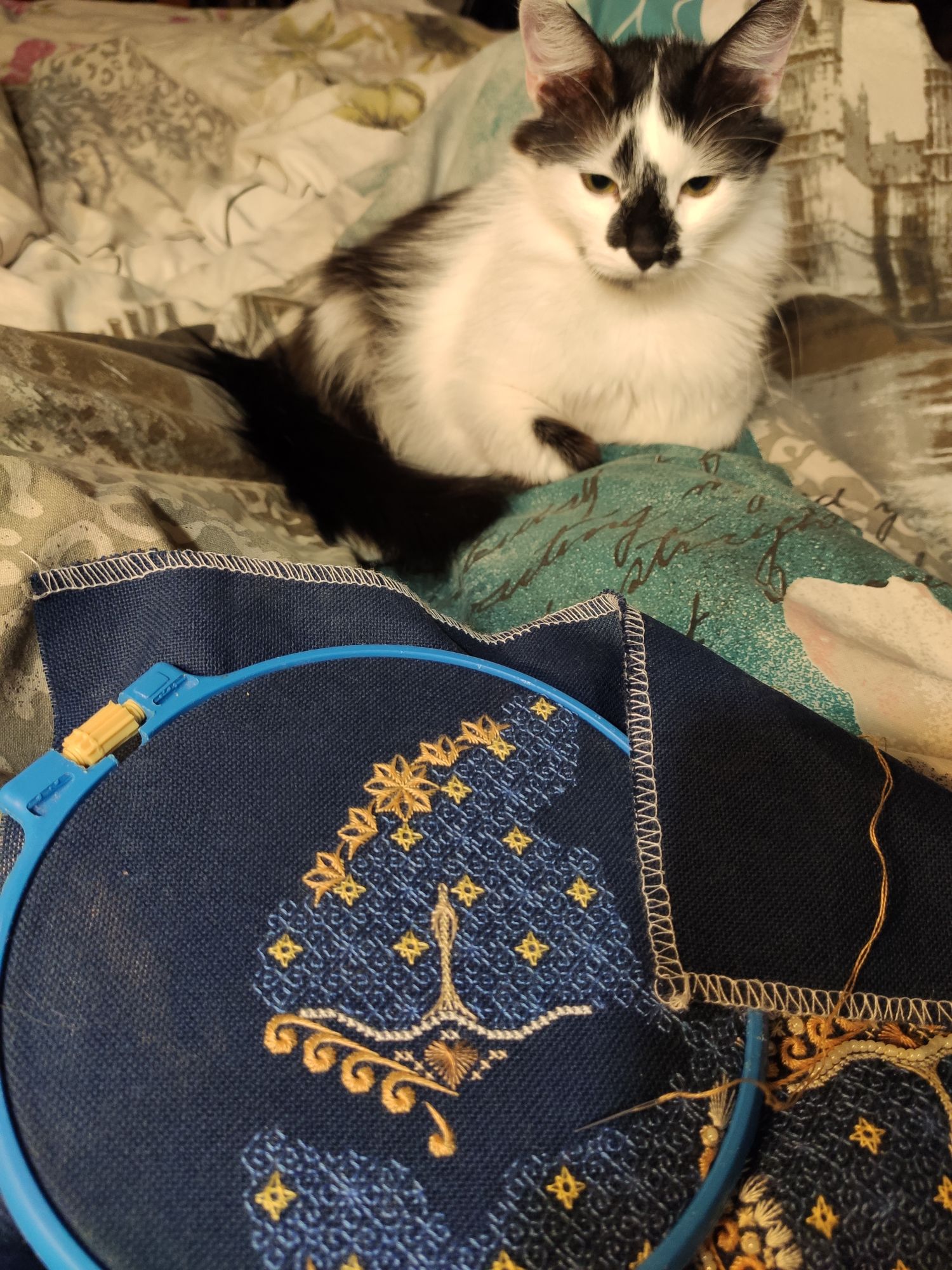 5 июня 2020 Я пришла. И принесла отчёт. Работы много, времени для вышивки мало. Поэтому и нашла тоже чуток всего. Первым покажу процесс - символ карантина. Модель "Весна 2020. Самоизоляция" Группа Пчелиный улей, дизайнер Евгения Десятскова. "Oiseau avec une fleur" (Птица с цветком) Дизайн разработан по иллюстрации @sofya_nikulina Размер дизайна в крестиках 89х93 На 32 каунте 14,1 на 14,8 см Техника: Крест, 3/4 (совсем немножко), бэкстич счетный, с элементами дробного, фрузелки Палитра DMC 27 цветов и 11 блендов Его ножки сводят меня с ума)))) Если что, то последние фото - это не дубли. Это без бэка на брюшке и с бэком. Бэка бешеное количество цветов. Но, как мне кажется, на брюшке можно его не вышивать. Но я его пороть точно не буду))) Сейчас уже потихоньку вышиваю цветок. Очень хочется дошить и повесить на стенку. Но... Буду считать, что растягиваю удовольствие)))) Ещё один процесс. Группа StitchHome - студия особенных крестиков. Дизайнер Ольга Петренко. "Чемодан путешественника" 19 цветов + 1 блэнд из них. Фетр для ручки и картон для каркаса. Подарок от анонимной подруги))))) Почему-то решили, что надо его шить, чтобы куда-то ехать. В пару к ботам, так сказать)))) Уж не знаю - чемодан виноват или так сложилось, но поступило классное предложение. Надеюсь, что всё сложится) Дальше НЕ ВЫШИВАЛЬНОЕ. Не могу без этого. Фото прогулок. Мы чутка увеличили радиус. Теперь не только в Горенский лесопарк к Мазуринскому озеру гуляем, но и в Лосиный остров к Алекеевскому пруду. 24 мая 25 мая 4 утра 26 мая. Вид с балкона. Проснулась и наблюдала за просыпающийся природой. )))) 27 мая 28 мая. Гуляли по району. Обнаружили в соседнем дворе указатели, которые к 9 мая, наверное, жители соорудили. И встретили двух пестрых дятлов) 29 мая. Не хотела доставать телефон, но, увидев этот Сайлент Хилл, не выдержала)))) 31 мая. Дождь, дождь, дождь... 1 июня. Урвали у погоды прогулку до Лосиного острова))) Потом нас тихо и не очень поливало.))) И вот вчера 4 июня опять урвали. Всё равно чуток нас намочило, конечно, но не страшно) Я за такое небо и за такую сирень, которую возле пруда высадили, готова даже вымокнуть))) Сегодня не фоткала, хотя и ходили размяться. Опять нас дождик домой прогнал. Всем здоровья и котиков! Любушка1985, Лена1973, sette venerdi и 44 других сказали спасибо Поделиться сообщением Ссылка на сообщение