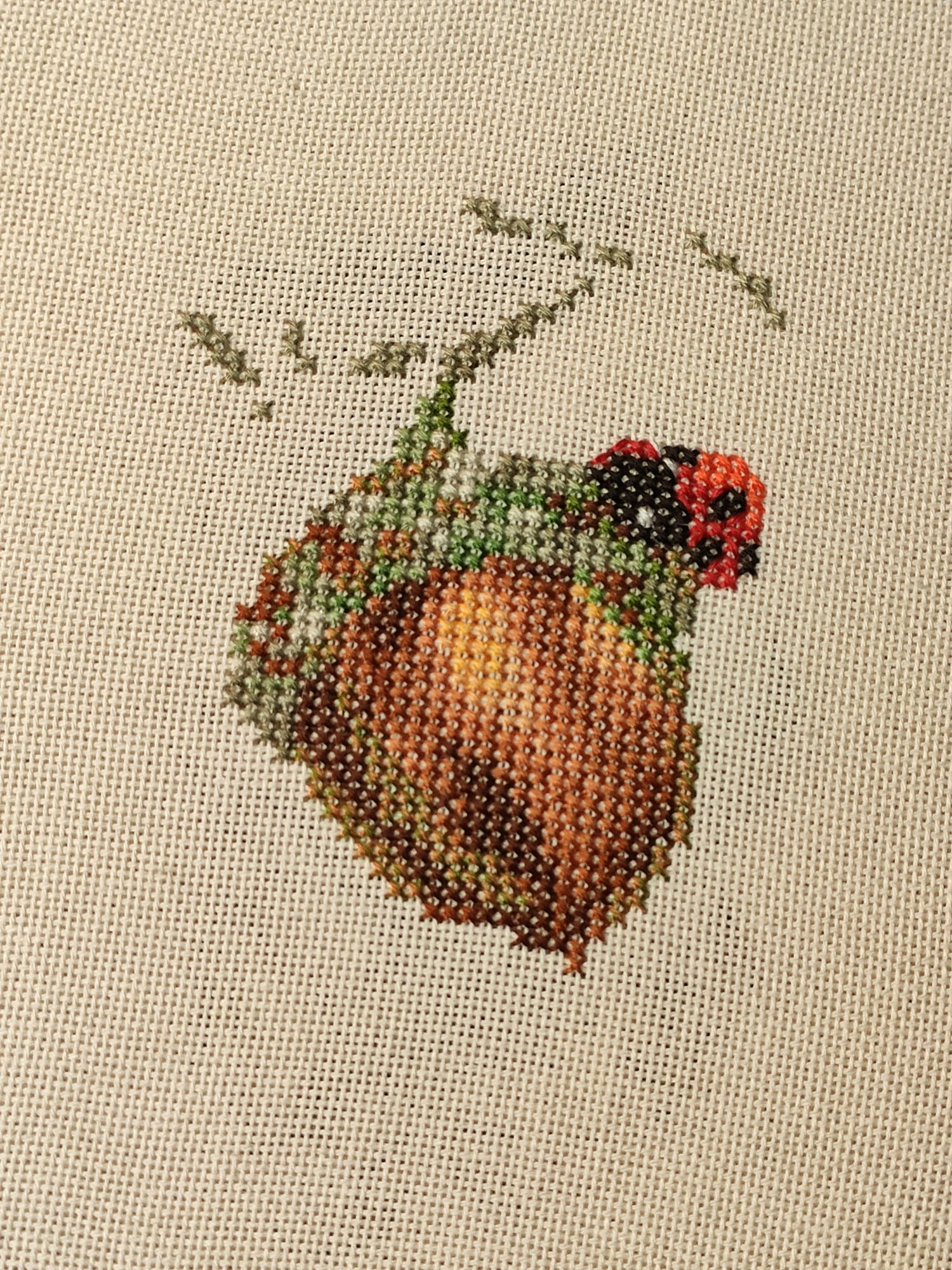 29 мая 2020 24.05.2020 в 14:21, Путешественница сказал(а): И ещё одна моя любофф! Внезапная, как и многое в последнее время. Пара к божьей коровке с овсом. Ольга Князева. "Жёлудь" Размер 57*58 крестиков. Мулине DMC - 17 цветов + 3 бленда из них. Стежки: Крест, 3\4 креста, бэкстич Фоткать забывала - так меня процесс захватил! Смотрите сами. Ну и обе работы рядышком. Жаль, что кусочка этой равномерки хватило только на две работы. Ещё безумно нравится шиповник. Буду думать. ))) Оля, очень интересная работа!!! С завершением!!! Букашечка прекрасна!!! Дуэтом работы смотрятся потрясно!!! Шиповник обязательно потом вышей!! Вся серия будет очень стильно смотреться!!! apanjul, Путешественница, Marusya1978 и 2 других сказали спасибо Поделиться сообщением Ссылка на сообщение