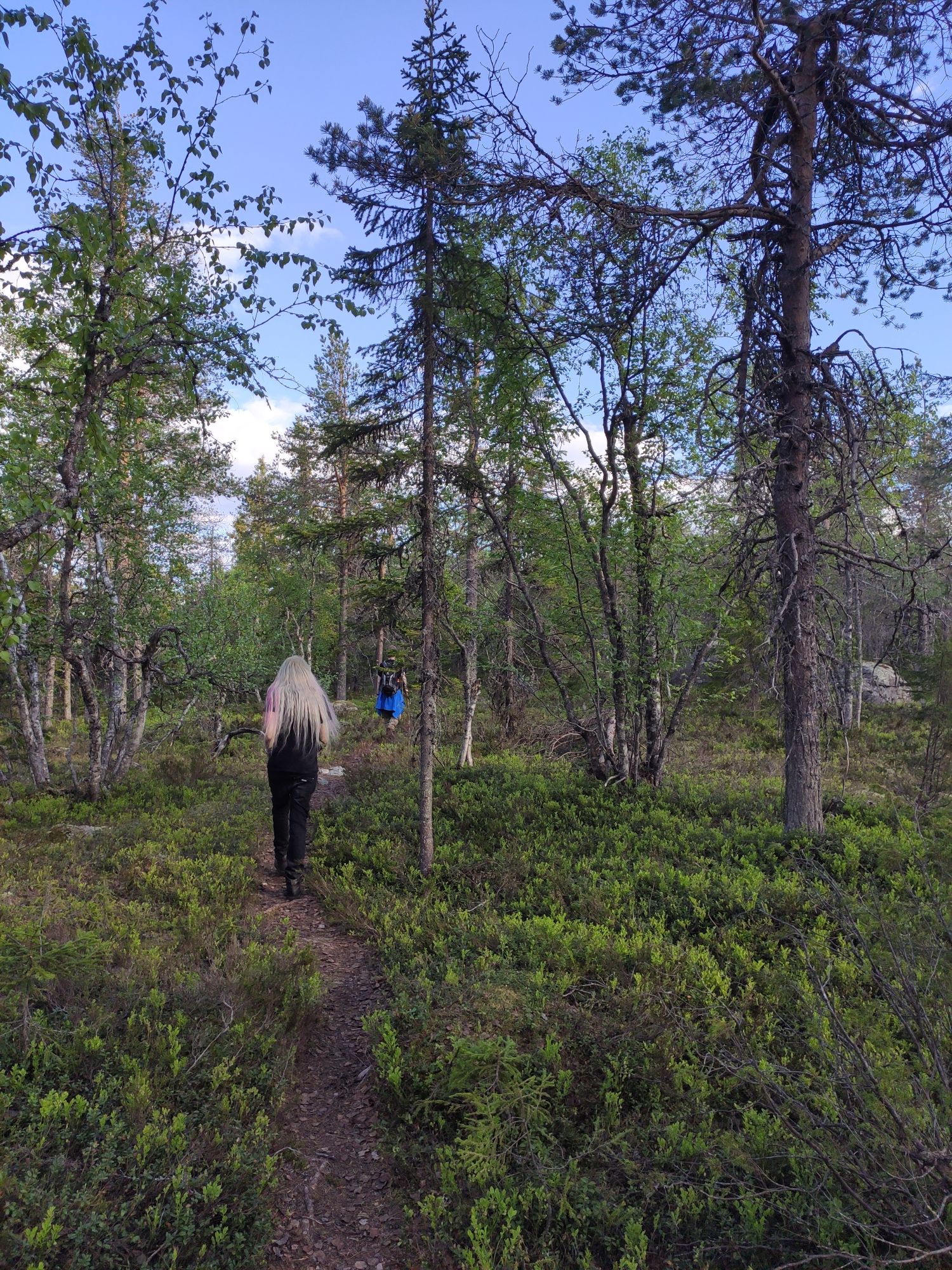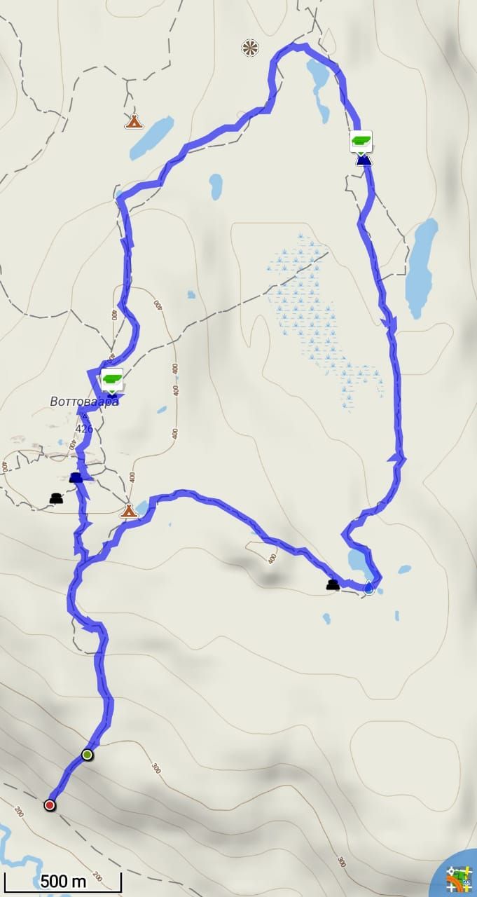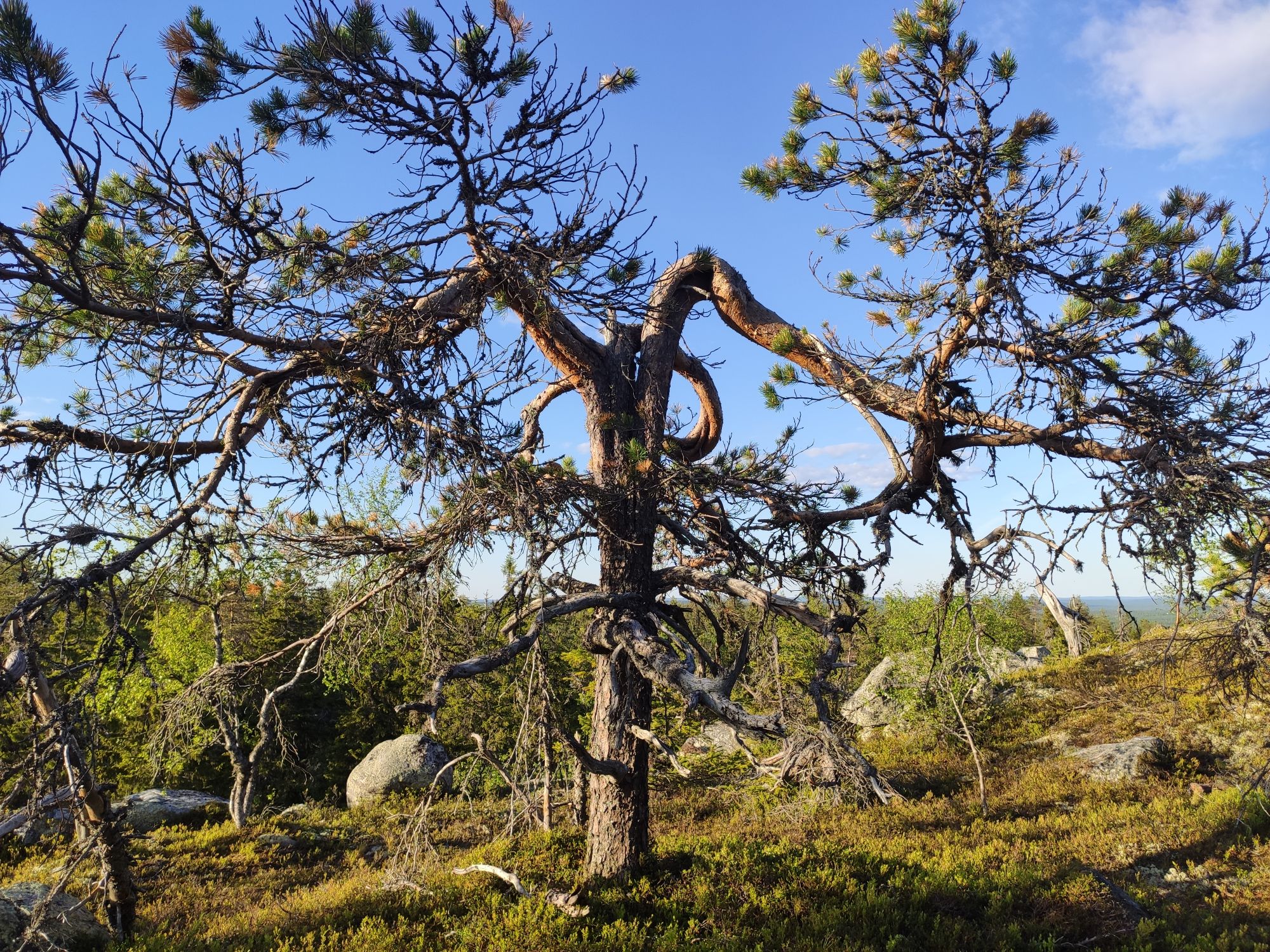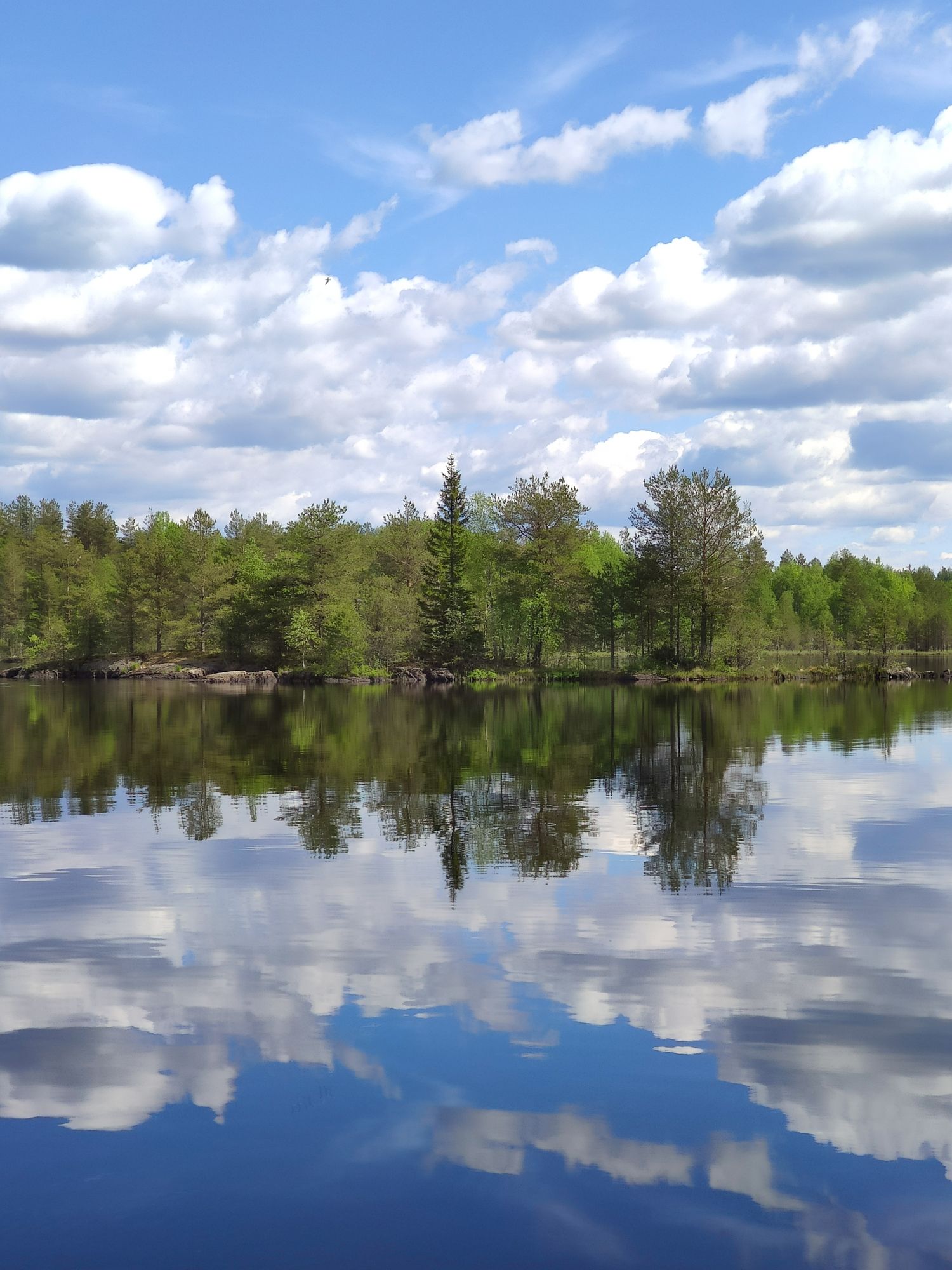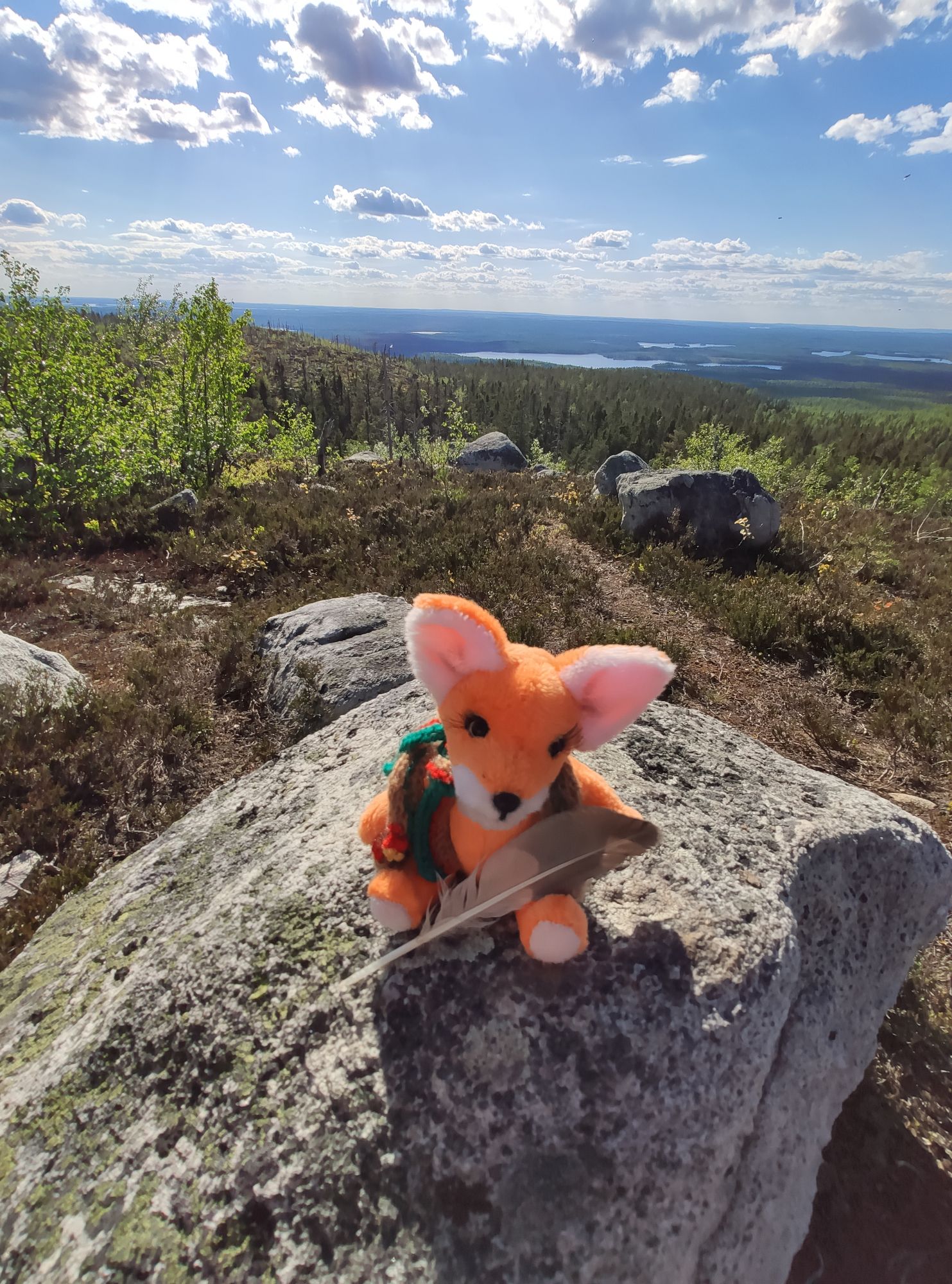 17 июня 2020 На следующий день мы поехали на саму гору Воттаваара. От Петрозаводска до нее 300 км. Поэтому ехали с несколькими остановками. Выбирали отвороточку "к воде" и немного гуляли. Погода была отличная, а небо волшебным. Заодно выгуляли лисёнка из Шуи (по пути оказалось, что и в Карелии есть своя Шуя, только это поселок)))) - на последнем фото цветущий багульник. До населенного пункта Гимолы можно доехать, в принципе, на любом транспорте. А вот дальше уже сложнее. Последние 17 км - только на внедорожнике. Немного дороги))) - оказалось, что это растение называется пушица вагинальная, растет на болоте. А ещё на болоте цветут разные ягоды - морошка клюква Перед второй большой лужей встретили "Крузак". Его водитель рассказал и показал нам место, где в луже лежит большой камень. Один он бы ехать побоялся. Но мы дорожку проторили, а он за нами))) Машину оставили у начала тропы на гору. Взяли с собой маленькую бутылочку воды и пачку орехово-сухофруктной смеси и пошли. Подъем дался тяжело. Карантин, малоподвижность.... Но мы пыхтели и ползли, ползли и пыхтели)))) Природа завораживает. На верху тропы я нашла два сморчка. Трогать их не стала, только сфоткала. А потом пошли огромные валуны и скрученные деревья. Говорят, что пляшущий лес на Куршской косе отдыхает. Мы сами там не были, а вот попутчики наши были. А мы потихоньку уходили все выше. Лес становился все более низким и скрюченным. Вообще, Воттоваара считается раем для эзотериков всяких и экстрасенсов. Многие пишут, что тут прям страшно, их корячит. Не знаю. Мне там было очень комфортно. И тут мы поднялись на первую вершину из трёх. И офигели от видов. Мы садились на камушки и смотрели вдаль. И то вчетвером обсуждали виды, то распадались на пары что-то обсуждая, а то и по одинокие смотрели в даль. - если не ошибаюсь, то вот там внизу Амфитеатр - заболоченная долина между двух вершин. Слезть в нее оказалось отдельным приключением. Зато, сидя внизу на камушке мы с мужем одновременно увидели воооон в том большом валуне лицо великана. Мы решили, что тут тоже есть Дух горы и это как раз он. А дальше опять в гору - на вторую вершину. Там почти не было деревьев. По ощущениям она самая высокая. И видно с нее очень далеко. Ну а дальше сказ про четырех идиотов людей, любящих приключения))))) Если посмотреть на карту, то мы прошли от нижней точки по прямой до зелёной отметки возле названия горы. Дальше можно было повернуть назад и вернуться той же дорогой. Но... нормальные герои всегда идут в обход. Женька, глядя с умным видом в карту, изрёк - тут есть ещё одна достопримечательность - Лестница в небо. До нее 2 км. Но получится крюк. В итоге нам около 8 км пройти надо. А потом осуждающим взглядом посмотрел на нас и спросил - Мы же хотим посмотреть лестницу в небо? Ну, в общем, да, сказали мы и устремились. )))) Третья вершина совсем другая. Много корявых деревьев, болот и черники. И озёр! С чистейшей водой! Но сначала мы шли по азимуту, т.к. тропа закончилась и мы шли по мхам и корягам. Было как-то морально тяжело в тот момент. - это и есть та лестница. Огромный валун в виде лестницы. Но нас там гнали комары и мошка, коих ооочень много на третьей вершине (на первой и второй они тоже были, но их ветер сдувал на открытых пространствах). После лестницы началась тропа. Не такая утоптанная, как на первых двух вершинах, но она была!!! Это придавало сил! Ну и ещё орешк