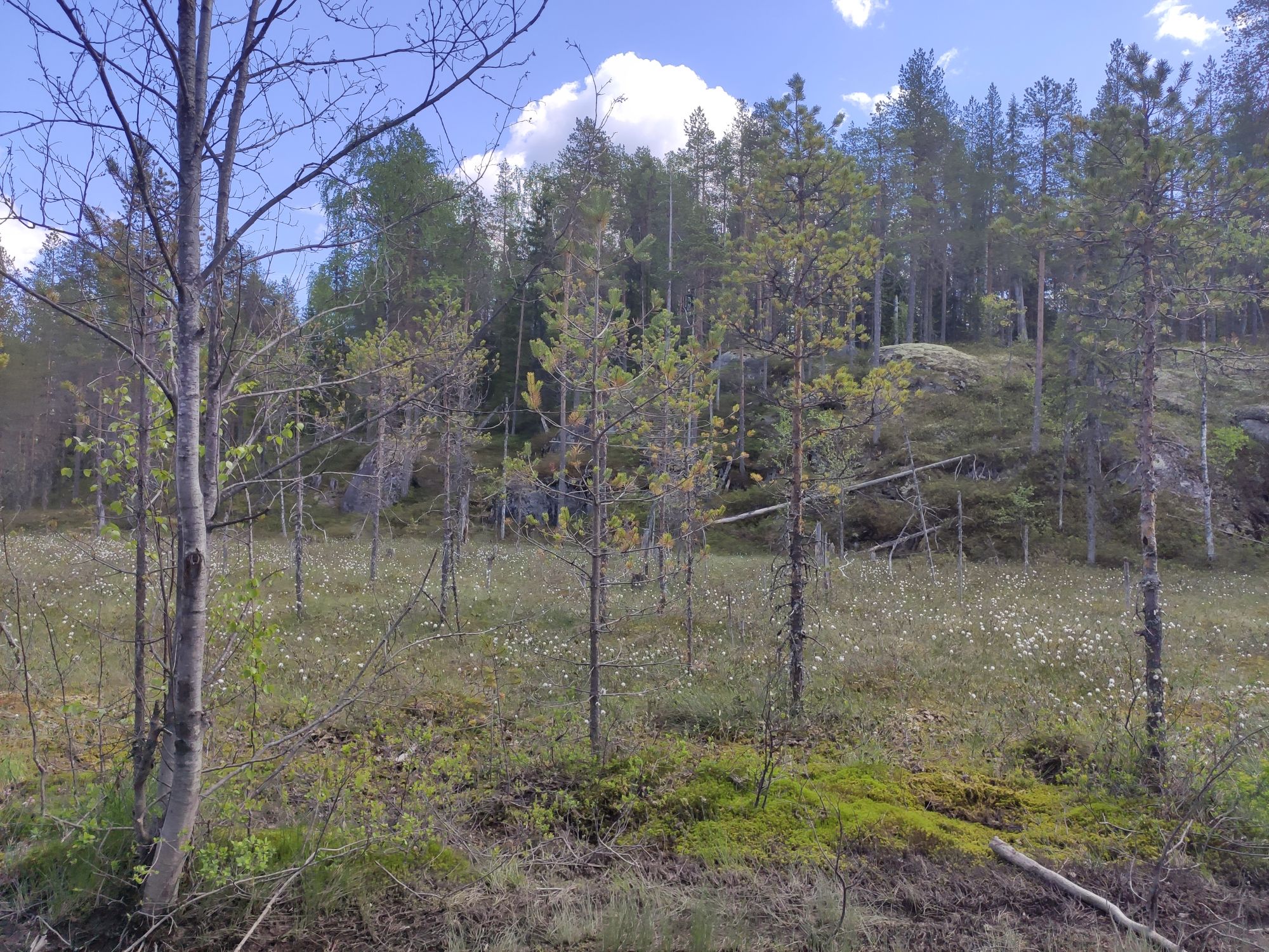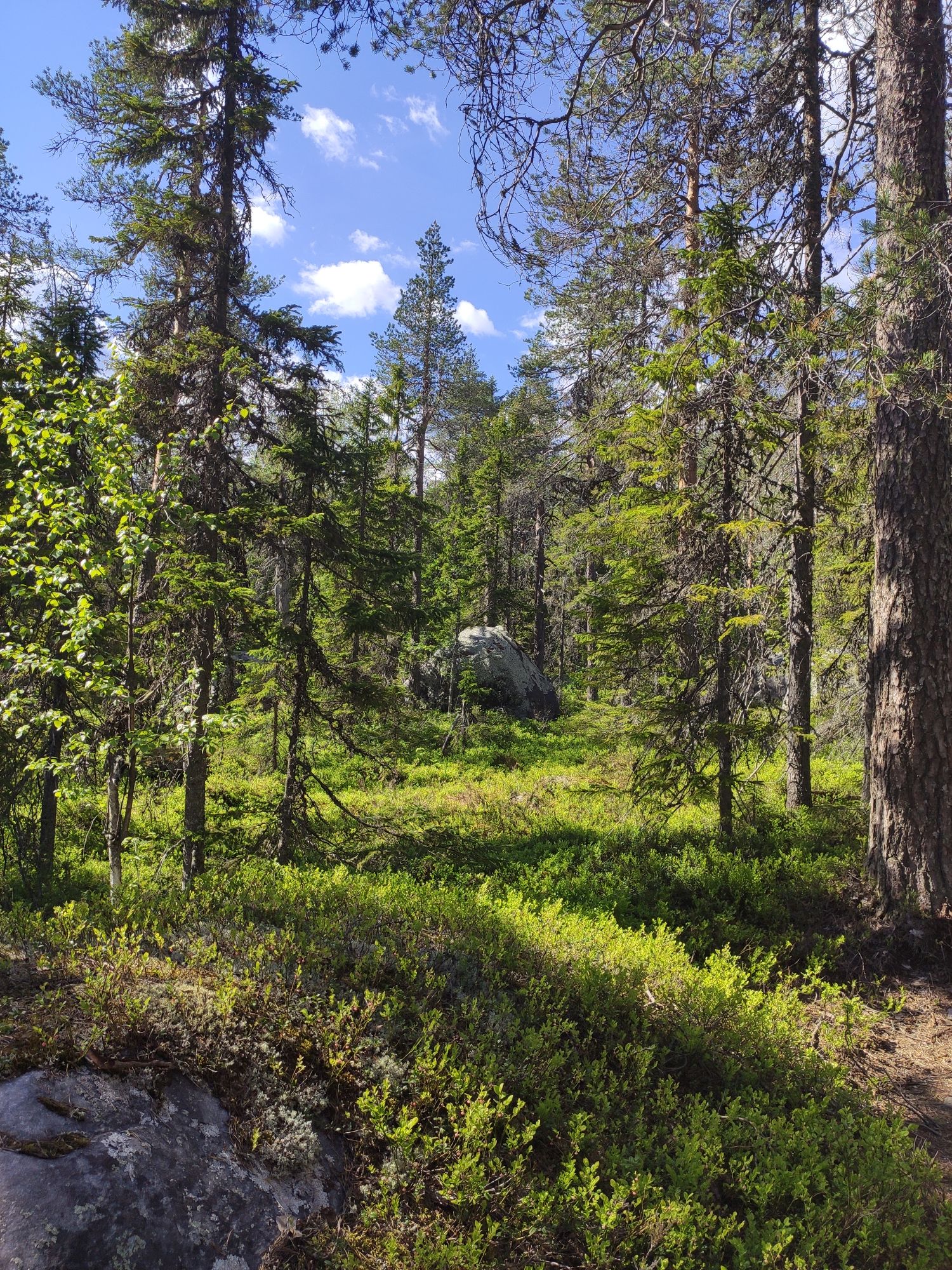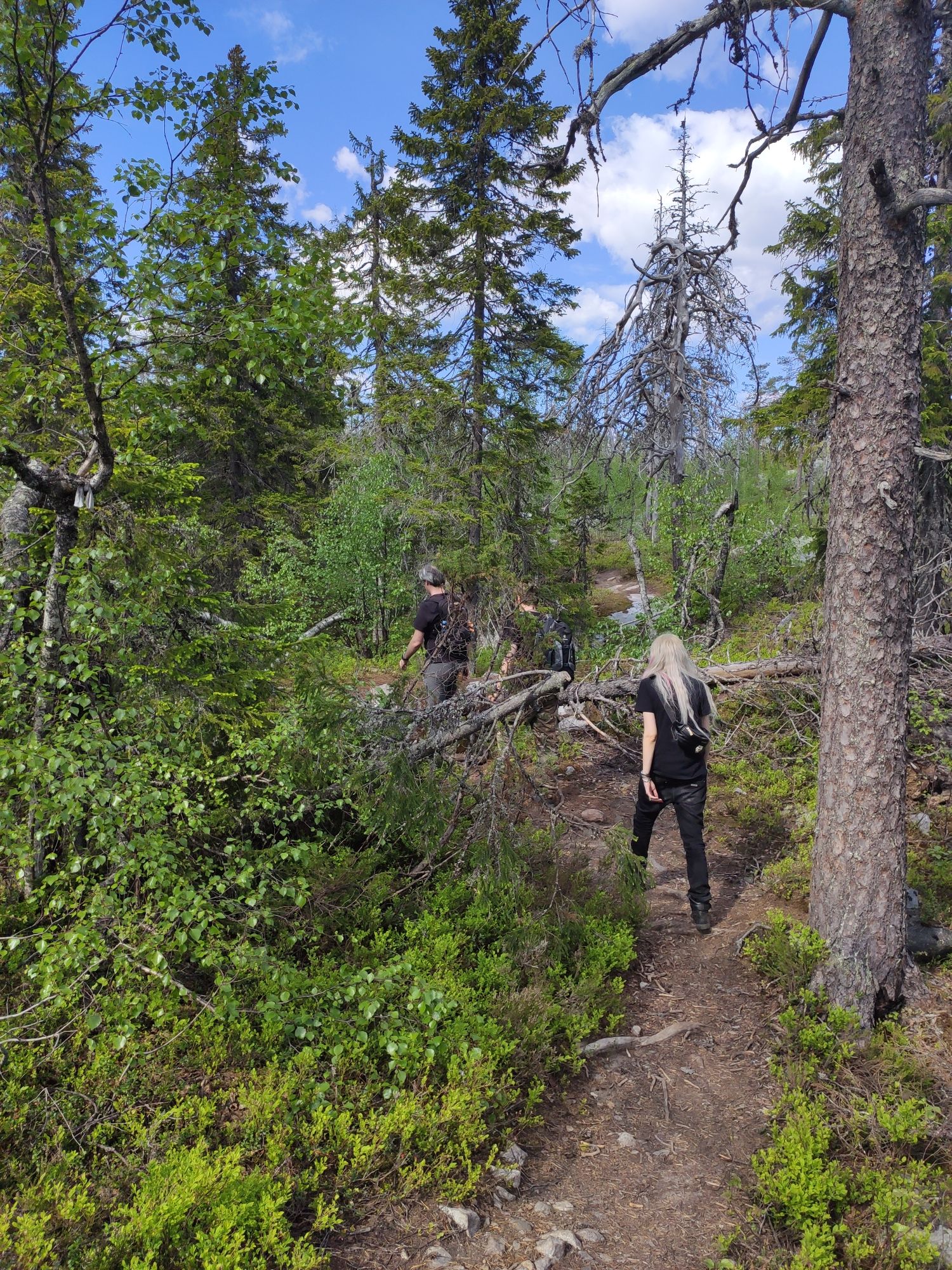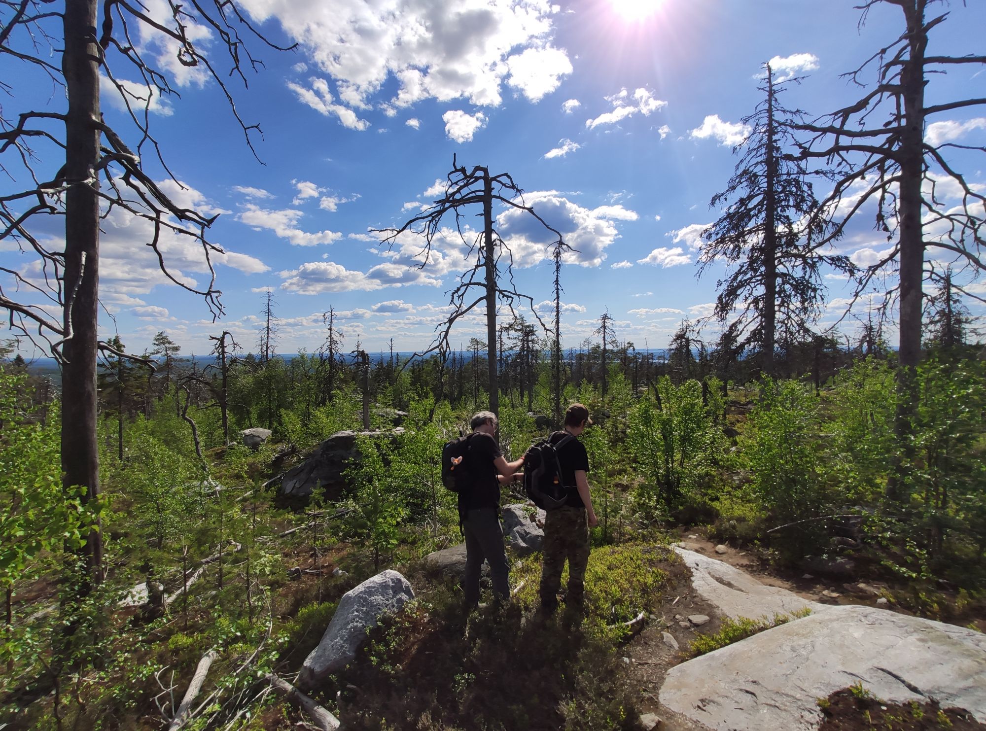 17 июня 2020 На следующий день мы поехали на саму гору Воттаваара. От Петрозаводска до нее 300 км. Поэтому ехали с несколькими остановками. Выбирали отвороточку "к воде" и немного гуляли. Погода была отличная, а небо волшебным. Заодно выгуляли лисёнка из Шуи (по пути оказалось, что и в Карелии есть своя Шуя, только это поселок)))) - на последнем фото цветущий багульник. До населенного пункта Гимолы можно доехать, в принципе, на любом транспорте. А вот дальше уже сложнее. Последние 17 км - только на внедорожнике. Немного дороги))) - оказалось, что это растение называется пушица вагинальная, растет на болоте. А ещё на болоте цветут разные ягоды - морошка клюква Перед второй большой лужей встретили "Крузак". Его водитель рассказал и показал нам место, где в луже лежит большой камень. Один он бы ехать побоялся. Но мы дорожку проторили, а он за нами))) Машину оставили у начала тропы на гору. Взяли с собой маленькую бутылочку воды и пачку орехово-сухофруктной смеси и пошли. Подъем дался тяжело. Карантин, малоподвижность.... Но мы пыхтели и ползли, ползли и пыхтели)))) Природа завораживает. На верху тропы я нашла два сморчка. Трогать их не стала, только сфоткала. А потом пошли огромные валуны и скрученные деревья. Говорят, что пляшущий лес на Куршской косе отдыхает. Мы сами там не были, а вот попутчики наши были. А мы потихоньку уходили все выше. Лес становился все более низким и скрюченным. Вообще, Воттоваара считается раем для эзотериков всяких и экстрасенсов. Многие пишут, что тут прям страшно, их корячит. Не знаю. Мне там было очень комфортно. И тут мы поднялись на первую вершину из трёх. И офигели от видов. Мы садились на камушки и смотрели вдаль. И то вчетвером обсуждали виды, то распадались на пары что-то обсуждая, а то и по одинокие смотрели в даль. - если не ошибаюсь, то вот там внизу Амфитеатр - заболоченная долина между двух вершин. Слезть в нее оказалось отдельным приключением. Зато, сидя внизу на камушке мы с мужем одновременно увидели воооон в том большом валуне лицо великана. Мы решили, что тут тоже есть Дух горы и это как раз он. А дальше опять в гору - на вторую вершину. Там почти не было деревьев. По ощущениям она самая высокая. И видно с нее очень далеко. Ну а дальше сказ про четырех идиотов людей, любящих приключения))))) Если посмотреть на карту, то мы прошли от нижней точки по прямой до зелёной отметки возле названия горы. Дальше можно было повернуть назад и вернуться той же дорогой. Но... нормальные герои всегда идут в обход. Женька, глядя с умным видом в карту, изрёк - тут есть ещё одна достопримечательность - Лестница в небо. До нее 2 км. Но получится крюк. В итоге нам около 8 км пройти надо. А потом осуждающим взглядом посмотрел на нас и спросил - Мы же хотим посмотреть лестницу в небо? Ну, в общем, да, сказали мы и устремились. )))) Третья вершина совсем другая. Много корявых деревьев, болот и черники. И озёр! С чистейшей водой! Но сначала мы шли по азимуту, т.к. тропа закончилась и мы шли по мхам и корягам. Было как-то морально тяжело в тот момент. - это и есть та лестница. Огромный валун в виде лестницы. Но нас там гнали комары и мошка, коих ооочень много на третьей вершине (на первой и второй они тоже были, но их ветер сдувал на открытых пространствах). После лестницы началась тропа. Не такая утоптанная, как на первых двух вершинах, но она была!!! Это придавало сил! Ну и ещё орешк