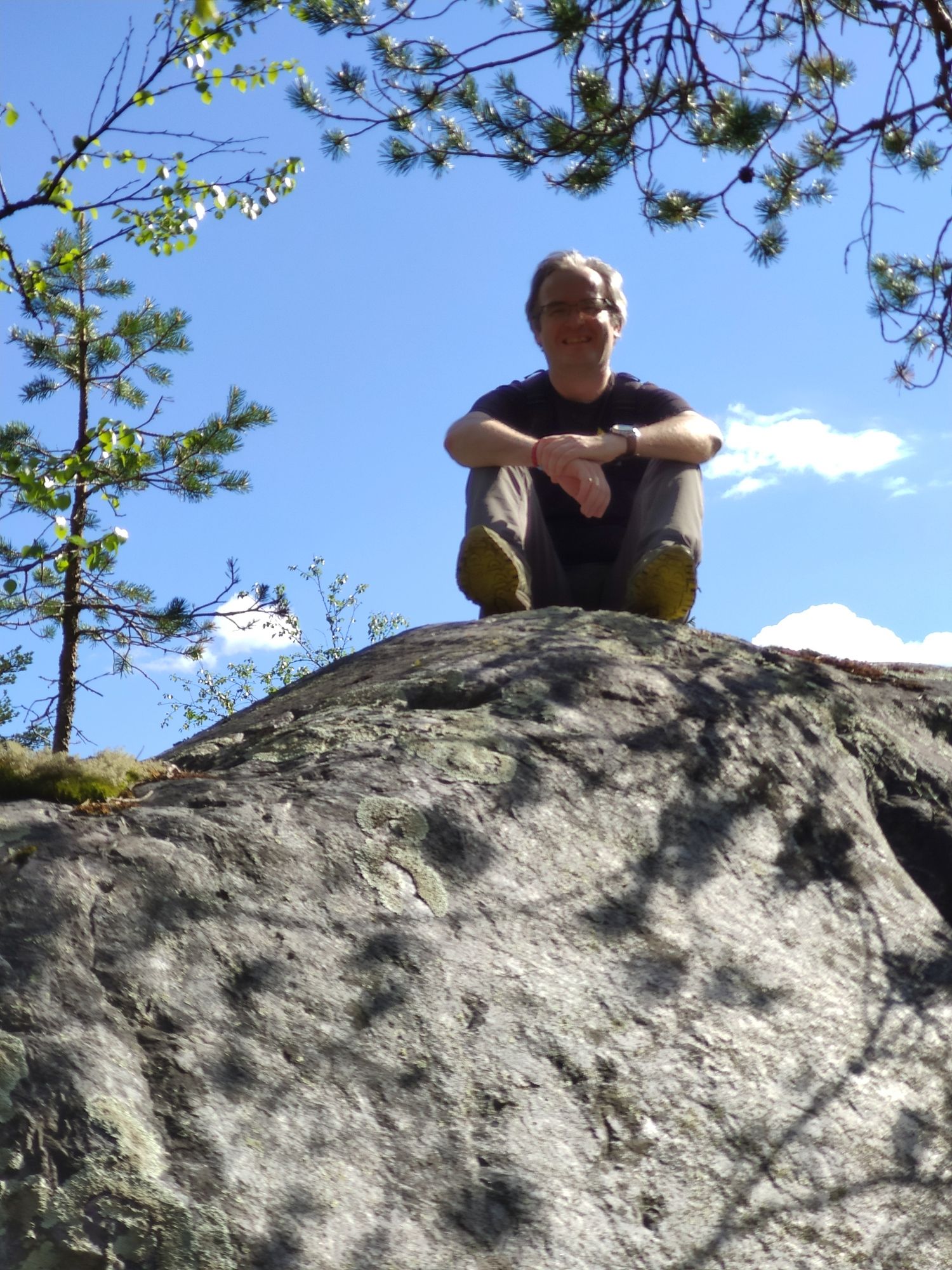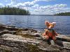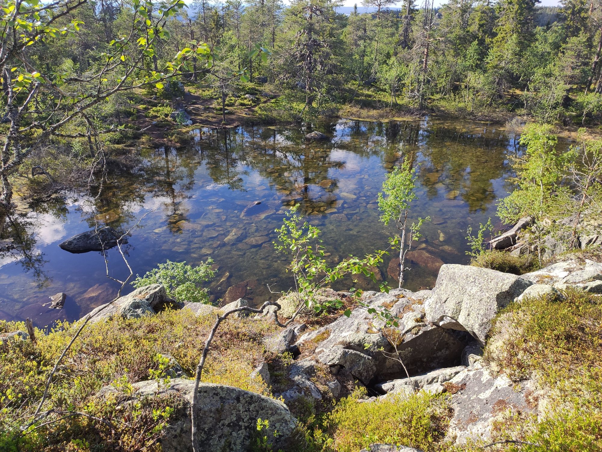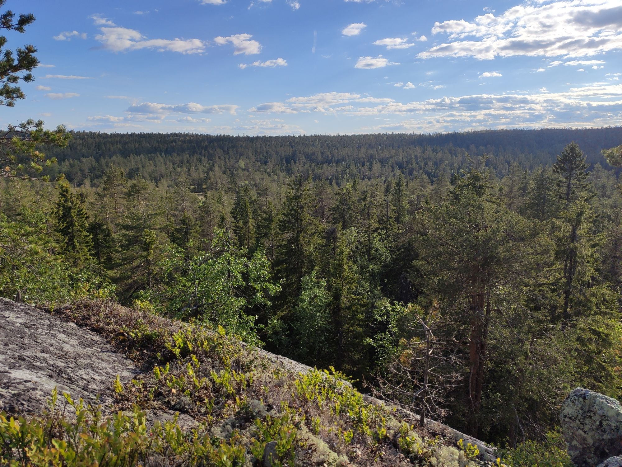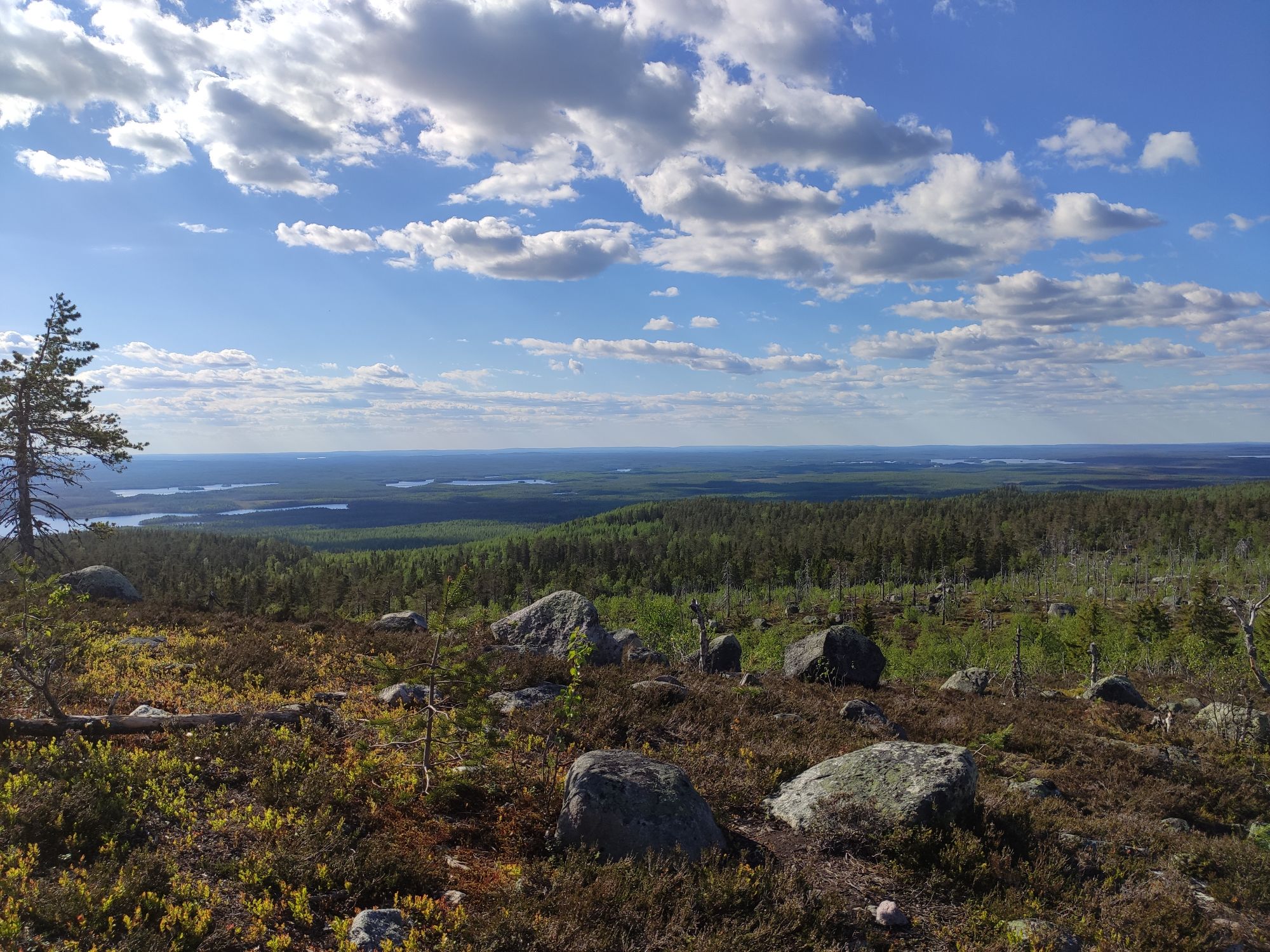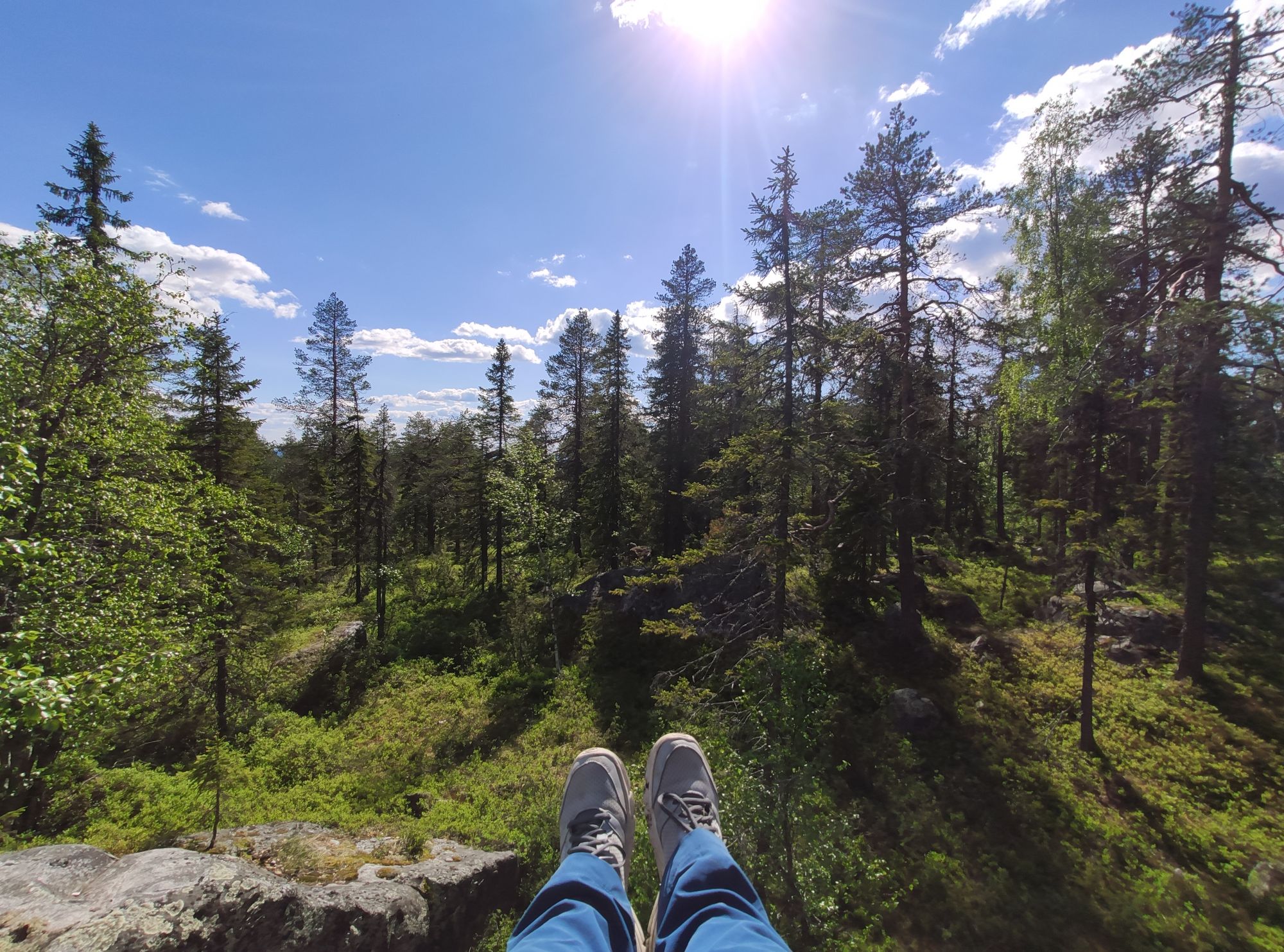 17 июня 2020 На следующий день мы поехали на саму гору Воттаваара. От Петрозаводска до нее 300 км. Поэтому ехали с несколькими остановками. Выбирали отвороточку "к воде" и немного гуляли. Погода была отличная, а небо волшебным. Заодно выгуляли лисёнка из Шуи (по пути оказалось, что и в Карелии есть своя Шуя, только это поселок)))) - на последнем фото цветущий багульник. До населенного пункта Гимолы можно доехать, в принципе, на любом транспорте. А вот дальше уже сложнее. Последние 17 км - только на внедорожнике. Немного дороги))) - оказалось, что это растение называется пушица вагинальная, растет на болоте. А ещё на болоте цветут разные ягоды - морошка клюква Перед второй большой лужей встретили "Крузак". Его водитель рассказал и показал нам место, где в луже лежит большой камень. Один он бы ехать побоялся. Но мы дорожку проторили, а он за нами))) Машину оставили у начала тропы на гору. Взяли с собой маленькую бутылочку воды и пачку орехово-сухофруктной смеси и пошли. Подъем дался тяжело. Карантин, малоподвижность.... Но мы пыхтели и ползли, ползли и пыхтели)))) Природа завораживает. На верху тропы я нашла два сморчка. Трогать их не стала, только сфоткала. А потом пошли огромные валуны и скрученные деревья. Говорят, что пляшущий лес на Куршской косе отдыхает. Мы сами там не были, а вот попутчики наши были. А мы потихоньку уходили все выше. Лес становился все более низким и скрюченным. Вообще, Воттоваара считается раем для эзотериков всяких и экстрасенсов. Многие пишут, что тут прям страшно, их корячит. Не знаю. Мне там было очень комфортно. И тут мы поднялись на первую вершину из трёх. И офигели от видов. Мы садились на камушки и смотрели вдаль. И то вчетвером обсуждали виды, то распадались на пары что-то обсуждая, а то и по одинокие смотрели в даль. - если не ошибаюсь, то вот там внизу Амфитеатр - заболоченная долина между двух вершин. Слезть в нее оказалось отдельным приключением. Зато, сидя внизу на камушке мы с мужем одновременно увидели воооон в том большом валуне лицо великана. Мы решили, что тут тоже есть Дух горы и это как раз он. А дальше опять в гору - на вторую вершину. Там почти не было деревьев. По ощущениям она самая высокая. И видно с нее очень далеко. Ну а дальше сказ про четырех идиотов людей, любящих приключения))))) Если посмотреть на карту, то мы прошли от нижней точки по прямой до зелёной отметки возле названия горы. Дальше можно было повернуть назад и вернуться той же дорогой. Но... нормальные герои всегда идут в обход. Женька, глядя с умным видом в карту, изрёк - тут есть ещё одна достопримечательность - Лестница в небо. До нее 2 км. Но получится крюк. В итоге нам около 8 км пройти надо. А потом осуждающим взглядом посмотрел на нас и спросил - Мы же хотим посмотреть лестницу в небо? Ну, в общем, да, сказали мы и устремились. )))) Третья вершина совсем другая. Много корявых деревьев, болот и черники. И озёр! С чистейшей водой! Но сначала мы шли по азимуту, т.к. тропа закончилась и мы шли по мхам и корягам. Было как-то морально тяжело в тот момент. - это и есть та лестница. Огромный валун в виде лестницы. Но нас там гнали комары и мошка, коих ооочень много на третьей вершине (на первой и второй они тоже были, но их ветер сдувал на открытых пространствах). После лестницы началась тропа. Не такая утоптанная, как на первых двух вершинах, но она была!!! Это придавало сил! Ну и ещё орешк