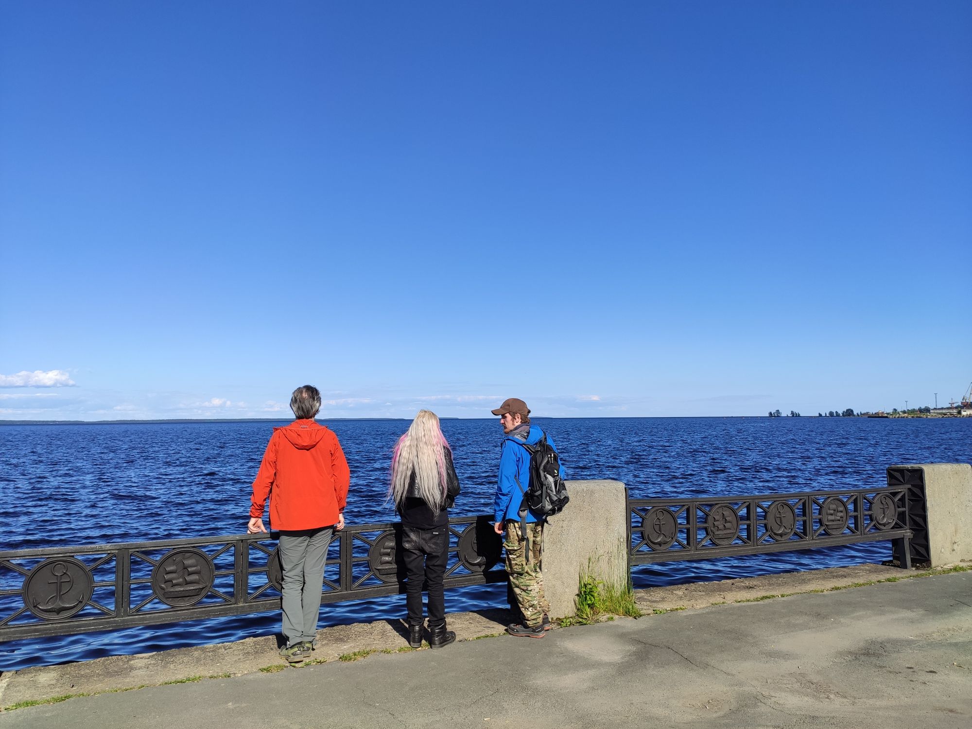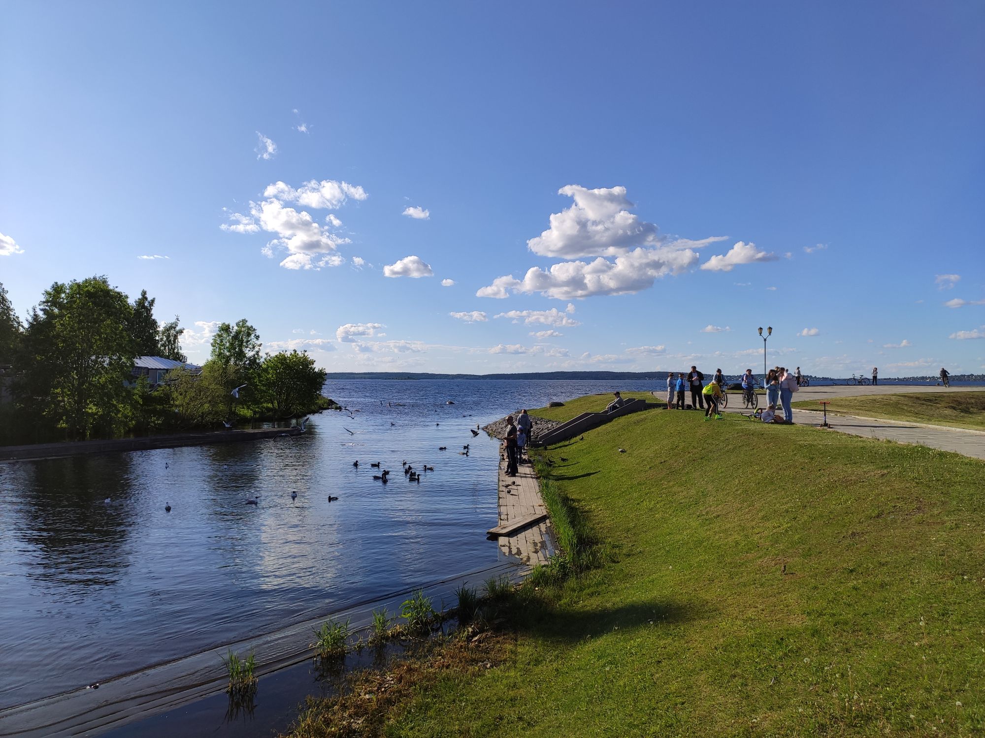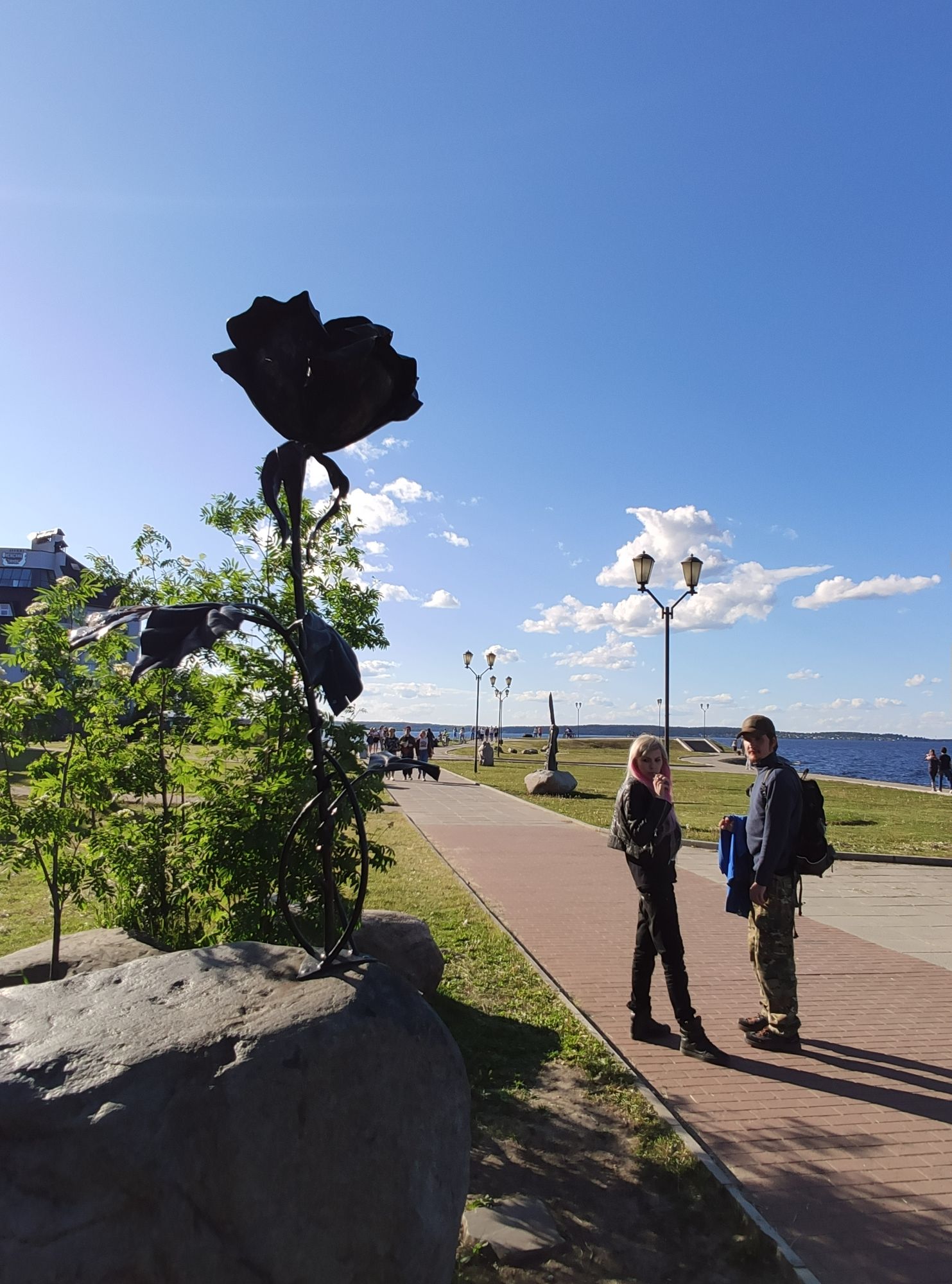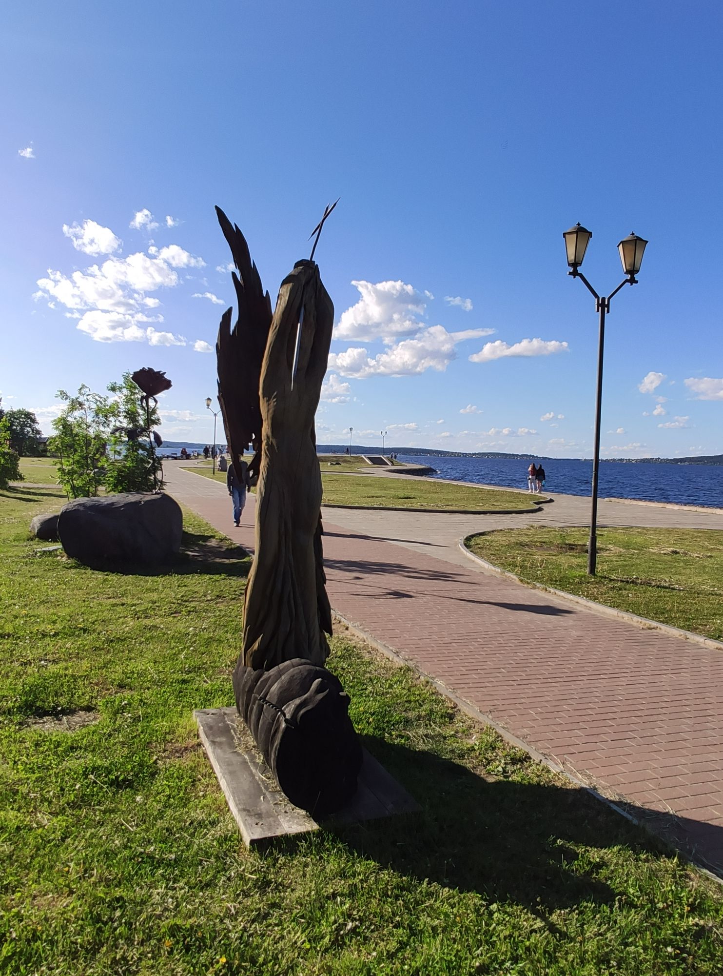 16 июня 2020 Решила я больше не тянуть и написать про поездку сегодня. Чемодан сработал на отлично!)))) Иногда думаешь про хитросплетения судьбы - как же всё-таки интересно всё. Иногда ты близок с человеком годами, а потом ррраз и всё - и разбежались, а иногда случайно знакомишься, а потом куча приключений. Я уже писала, что во время зимней поездки в Мурманск пару лет назад мы на трассе познакомились с ребятами на Патриоте. Потом мы покатались с ними в Териберку и Ловозеро и посмотрели северное сияние. Потом они уговорили нас смотаться в Турку. А потом звали ещё то туда, то сюда, но не складывалось. А тут вдруг сообщение от них 26 мая: Мы честно писали, что это авантюра. Что далеко (1300 км до горы), что тяжело (три дня в машине и по горе после самоизоляции)... Но нас уговорили. Ехать решили на их машине. Водителя два - Никита и Женька. Ведут по принципу - устал, поменялся, поспал. Выехали 11 поздно ночью. Туда ехали в основном по бесплатной трассе. В Тверской области нас накрыл ливень. И лил он почти всю ночь. Распогодилось уже с утра в Ленинградской области. По пути мы договорились делать разминочные остановки, т.к. путь в 1000 км и 15 часов сложно преодолеть, всё время сидя в машине. Это, например, озеро Вехкозеро со стоянкой Причал Надежды. Вышли из машины и душа развернулась. Счастьем накрыло в тот момент. А ещё - видели там стайку чижей. Сфоткать нормально не удалось. Они очень мелкие, очень быстрые и очень пугливые. Близко не пустили, вырезала из крупного фото. В Петрозаводск приехали около трёх часов дня. Город встретил чудесной рекламой. Мы ржали как кони))) Заселились в изумительный домик. Послонялись по дому, повалялись на кровати и поняли, что спать сейчас нельзя, иначе мы потом ночью спать не сможем, а надо!))) И решили пойти потоптать улицы и набережную Петрозаводска. Город всю дорогу напоминал мне южный приморский город. Почему - не знаю. Но именно такое впечатление осталось. А ещё он очень уютный и зелёный. Мы поели в кафе Петрозаводск. Солянка не впечатлила от слова совсем. А вот неказистая на вид тушёная капуста с куриной голенью оказались очень вкусные. После еды пошли гулять в парк и на набережную. Далее пара фоток с островка современного искусства))) Там ещё был огромный стул, как бы надетый на дерево и ещё какие-то инсталляции, но к ним мы не пошли - очень много народа было вокруг. - пушка то ли отлитая на заводе когда-то, то ли копия той. - Онежское озеро. - на бетонной полусфере остатки петроглифов))))) - черная утка с желтыми глазами. Нагуглили, что это чернеть. При нас она эффектно нырнула и, передвигаясь под водой, пускала пузырики))) - один из символов города - скульптура Рыбаки. Лица у них пугают и похожи на белых ходоков)) Ну и мы дошли до стрелки - домик, возле которого была куча всяких скульптур. Если честно, не знаю - мастерская это или просто домик, на карте обозначена как кузня, а рядом парк деревянных скульптур - впадение речки Неглинки в Онежское озеро. После решили идти в магазин и домой. Но идти обратно той же дорогой - это скучно))) Никита сказал - пошли деревянные домики посмотрим. И мы пошли. Вообще, я думала, что весь комплекс домиков - это больница. Но, если верить гугл-картам, то там выставочный зал музея-заповедника Кижи и ещё пара организаций. Было ощущение, что ты на век-полтора обратно вернулся. По пути в магазин мы нашли пивной магазин, в котором продаю